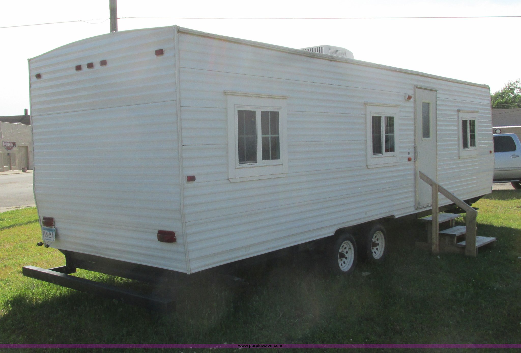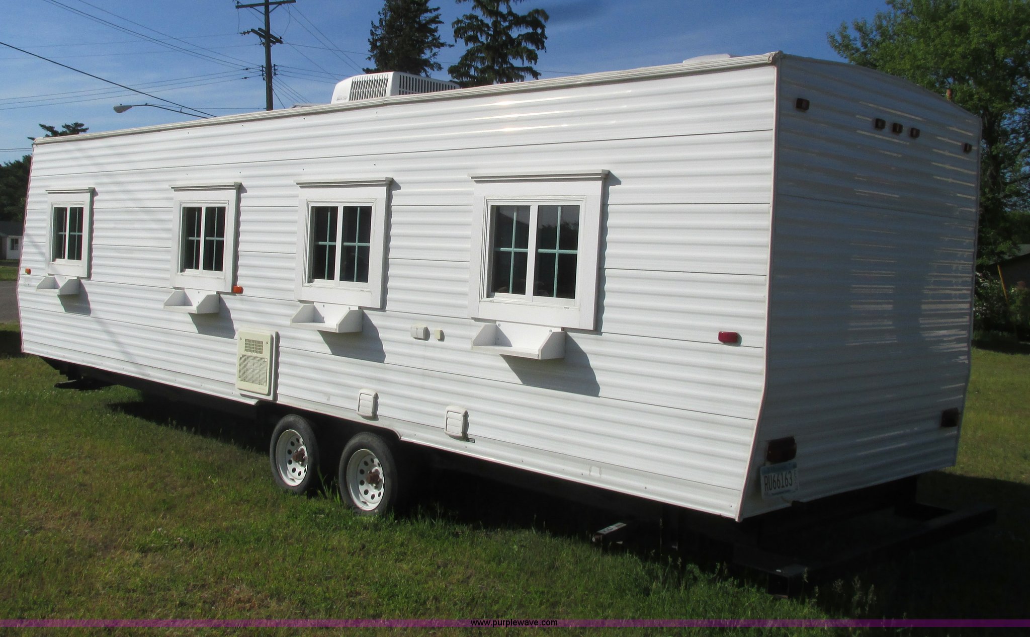Purple Wave is selling a used Manufactured Home or Office in Minnesota. This item is a 2006 Cavalier office trailer with the following: 28.5'L x 8'W, Leveling jacks, Desk, Cabinets, AC and heat, Laminate floor, Interior lights, Manual jack stand, 2" ball hitch, Tandem axle, 215/75D14 tires