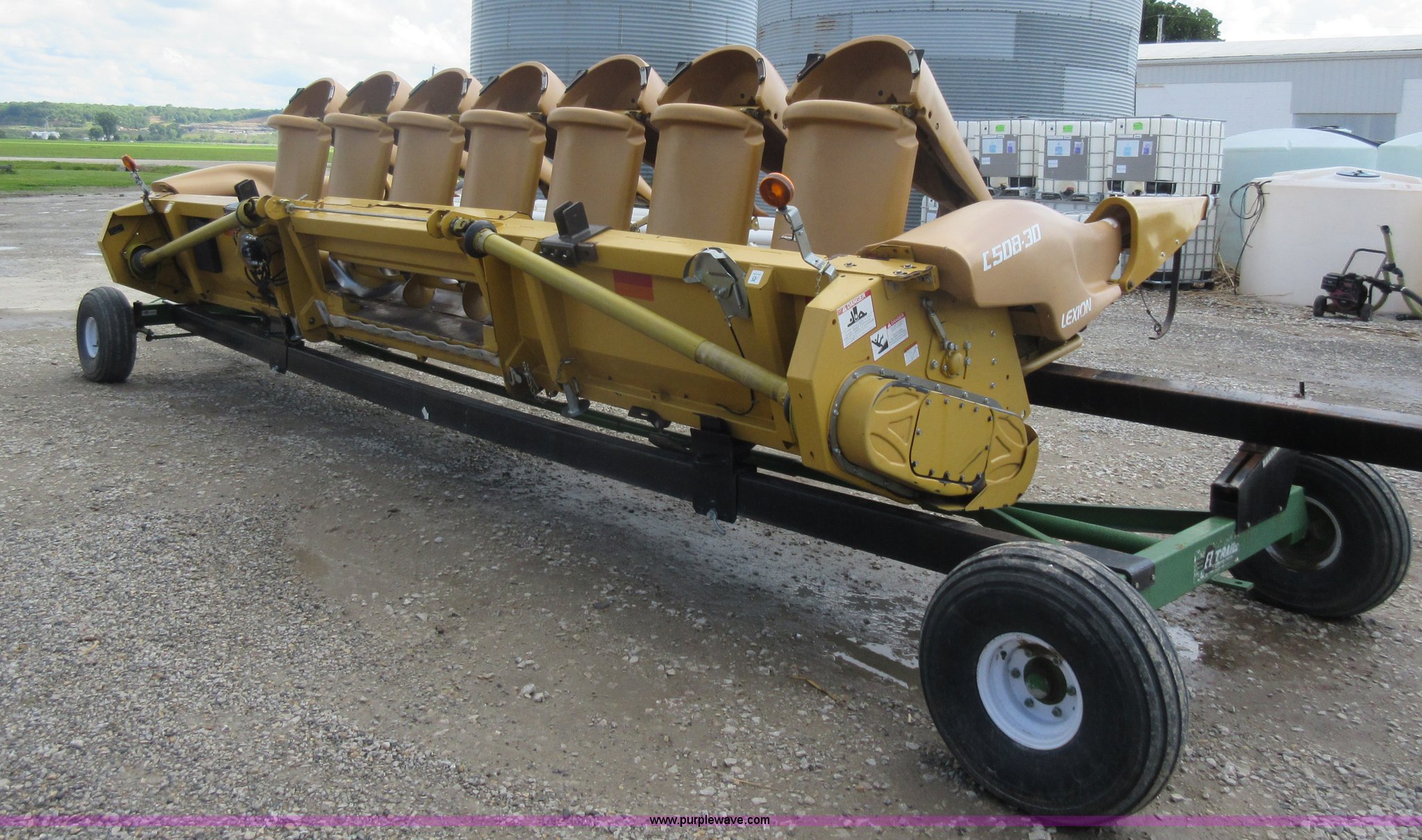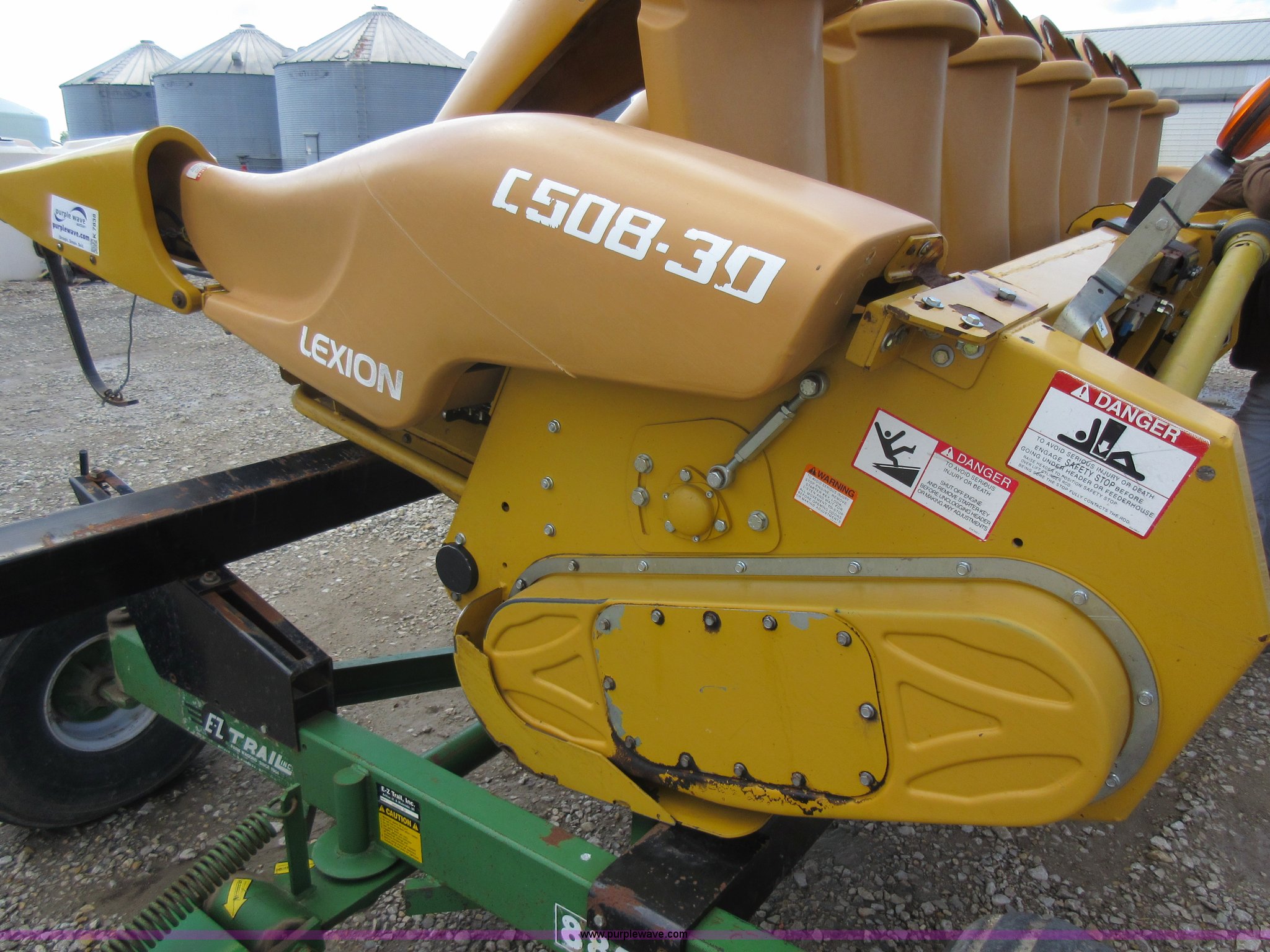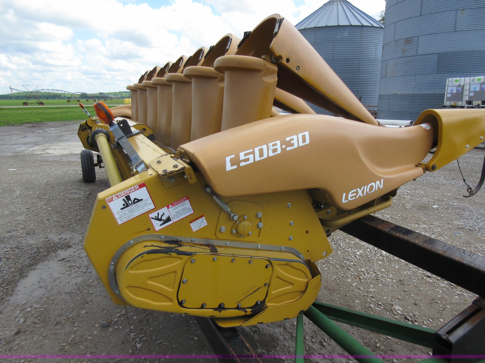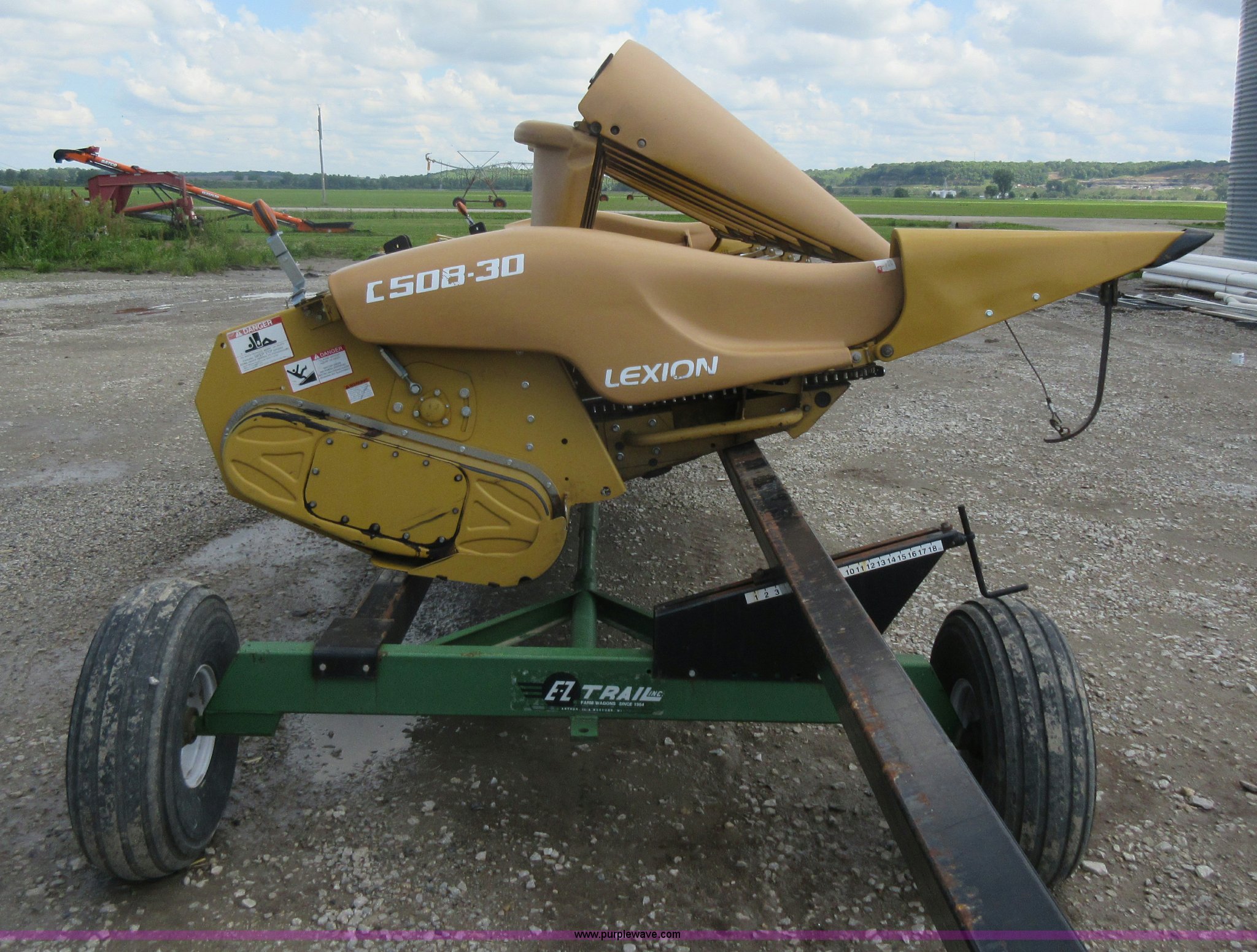 Lexion C508-30 corn head. A bidding system error occurred in the last moments of bidding on this asset in our June 29th Ag Equipment Auction. At Purple Wave's discretion this asset has been moved here to allow a natural conclusion to the bidding. 20'W, Eight rows, 30" row spacing, Single point coupler, Dual drive lines, Serial 91701752. Raasch Farms. 17607 NE 52nd St. Liberty, MO 64068