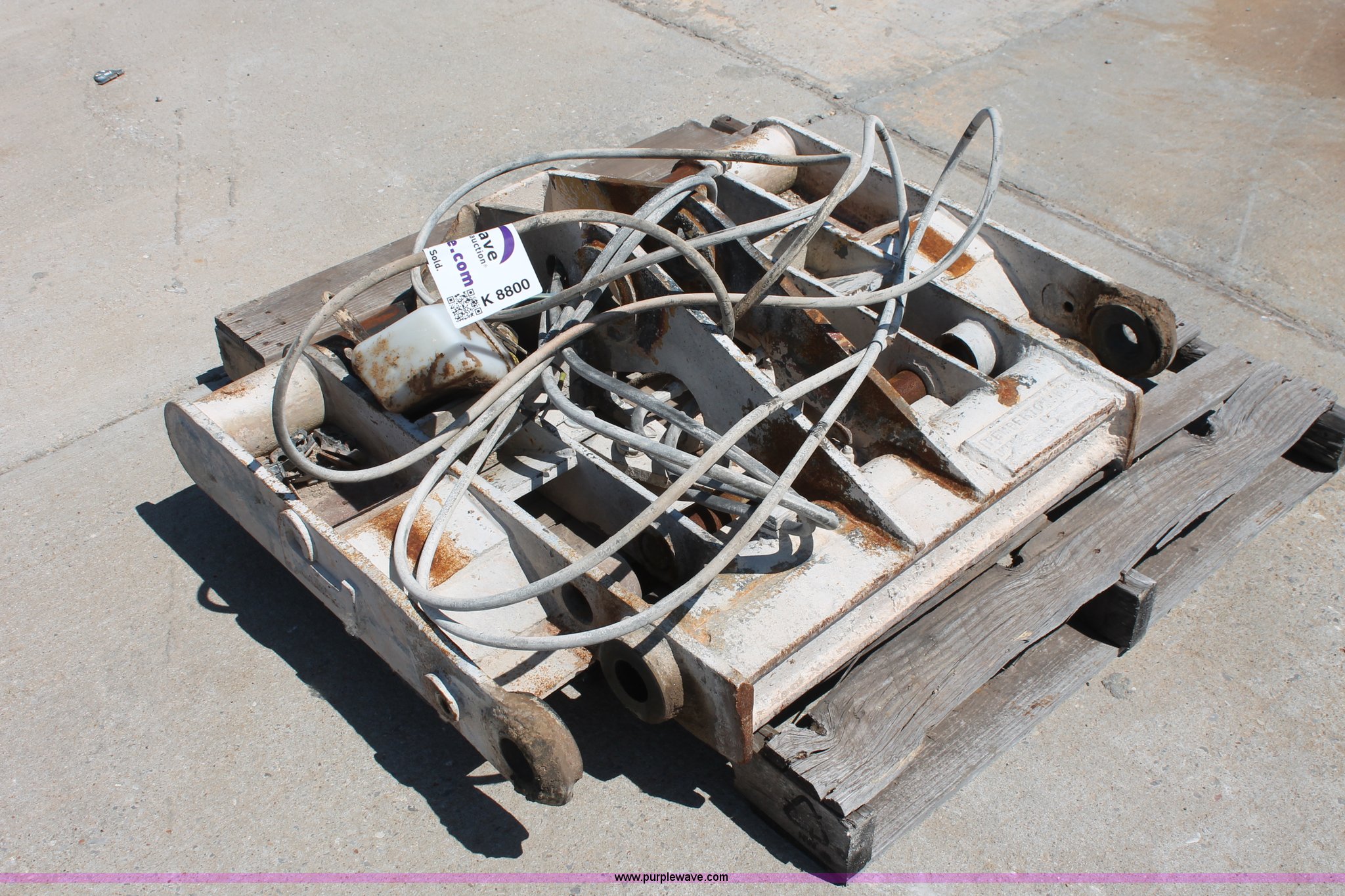 Pemberton loader quick attach. 42"W, 4" pins, 2" pins, Removed form a Caterpillar 900 Series 6 loader. Dolese Bros. Co.. 5600 W. Reno Avenue. Oklahoma City, OK 73127