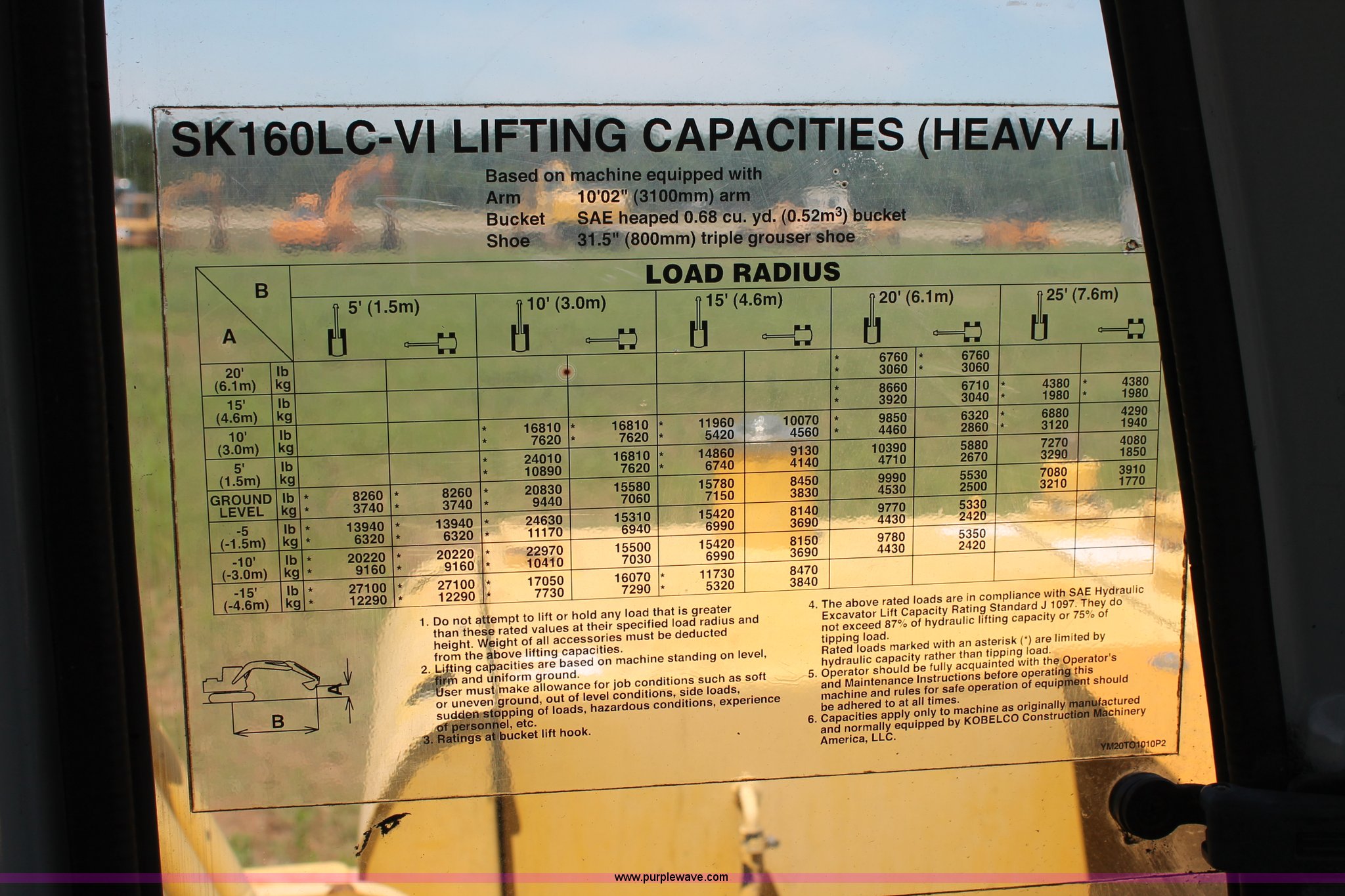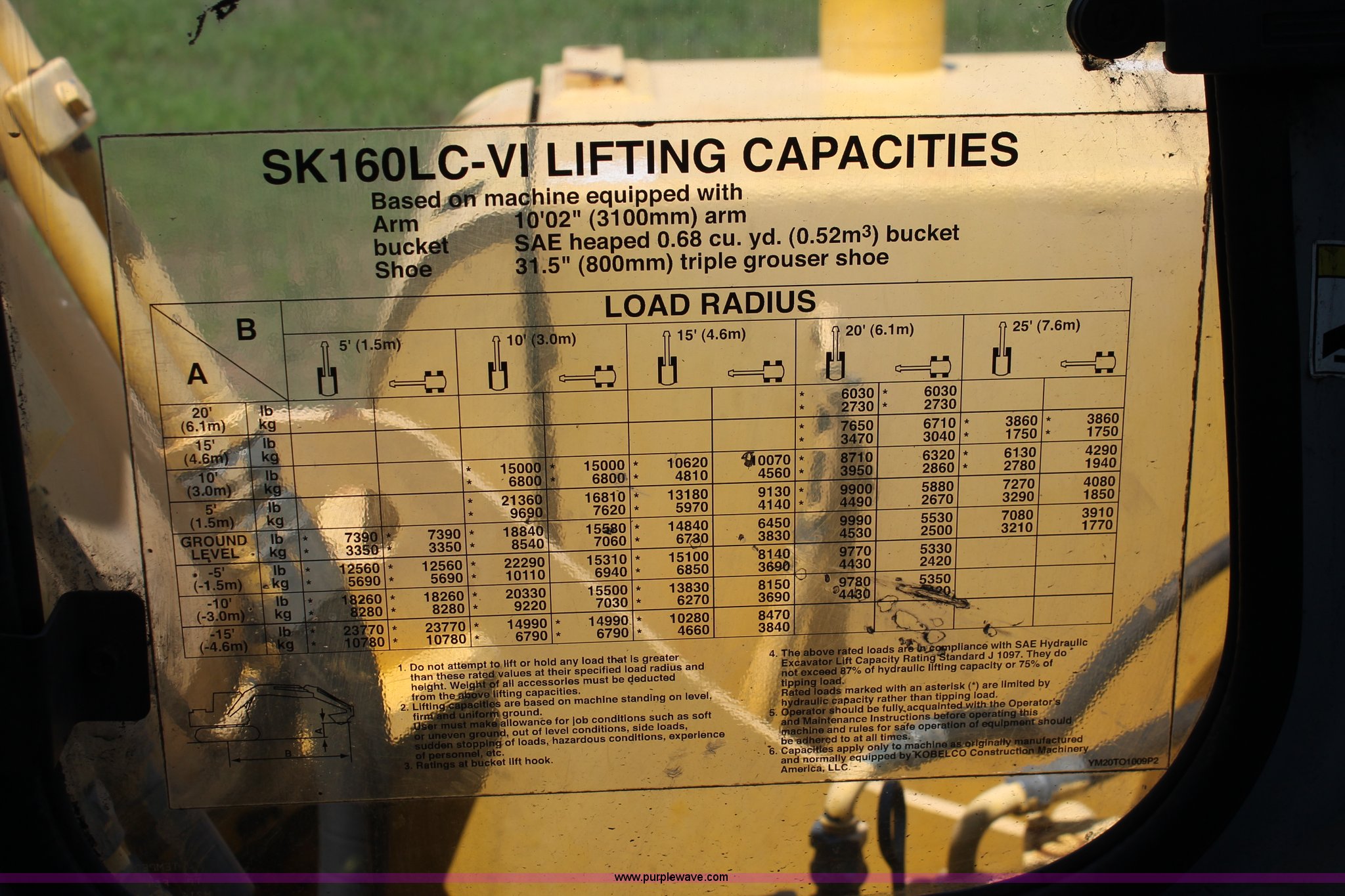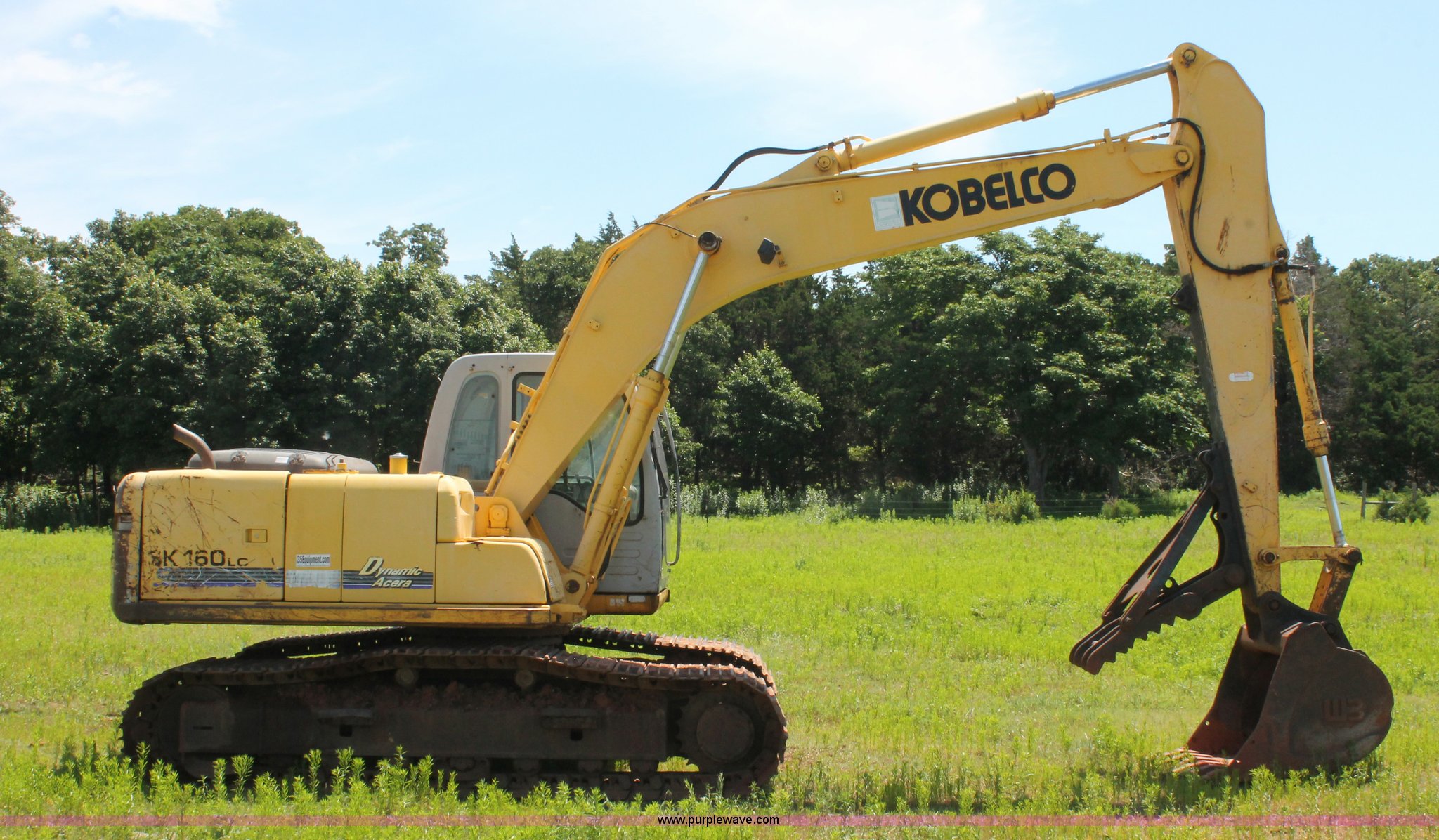 Purple Wave is selling a used Hydraulic Excavator in Oklahoma. This item is a 2005 Kobelco SK160LC excavator with the following: 5,091 hours on meter, Mitsubishi 4D34-TLU2A four cylinder diesel engine, 112 HP, Hydrostatic transmission, AC and heat, AM/FM, Suspension seat, Pattern changer, Standard boom, 10' stick length, WB 48"W bucket, (6) teeth, SEP manual thumb, 24"W, 31.5"W steel triple grouser track pads, 36,800 lbs. base operating weight, Serial YM03-U1061