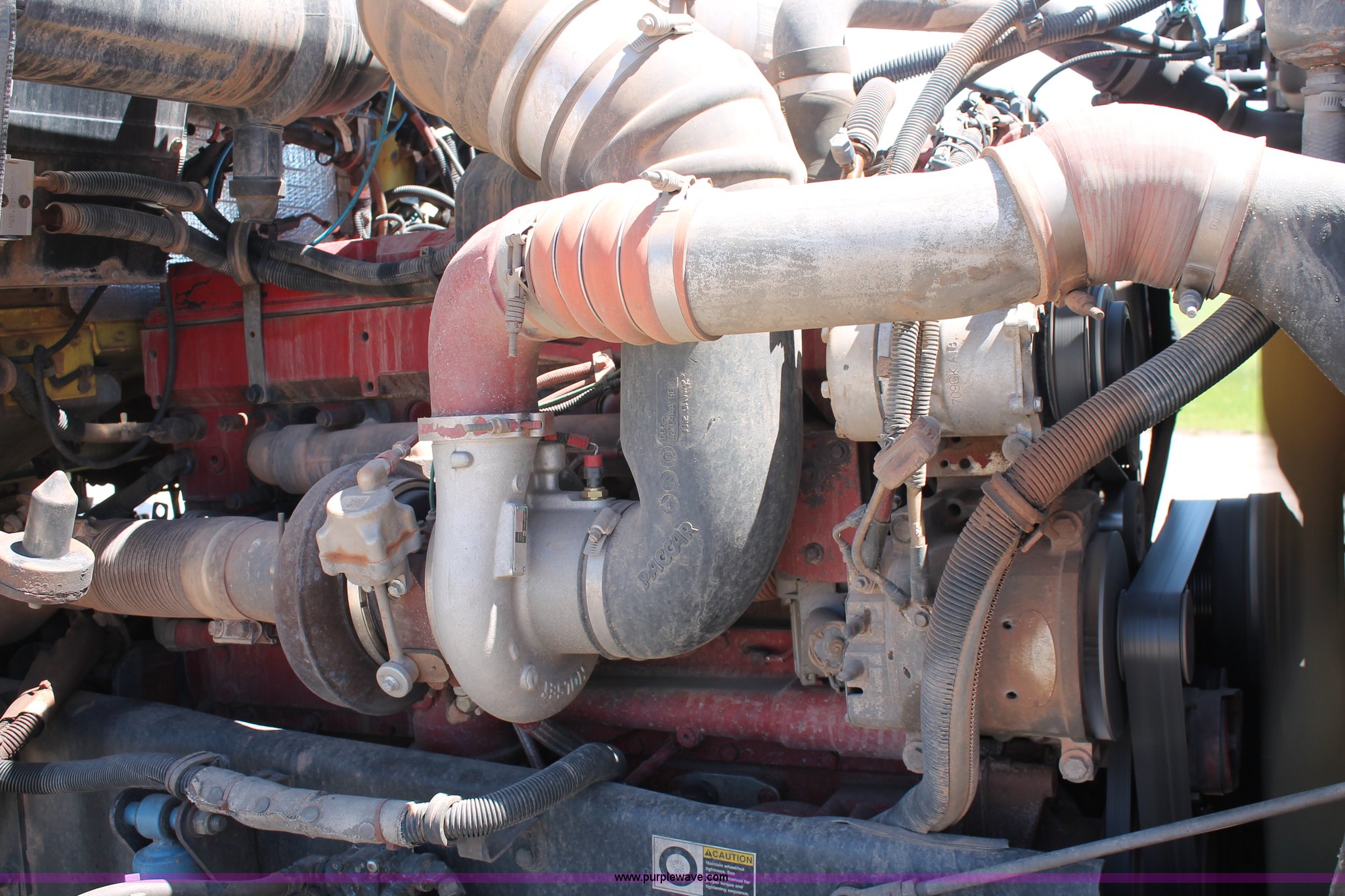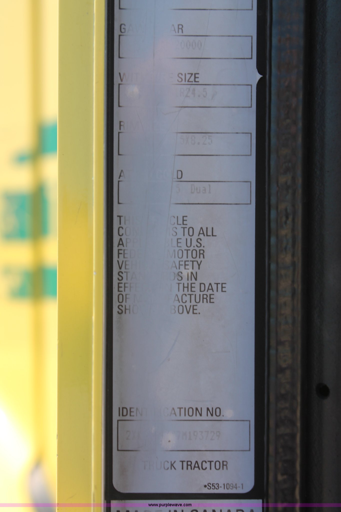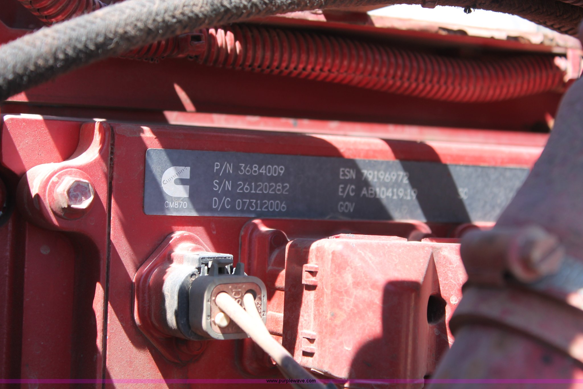 2007 Kenworth T800 semi truck. 572,940 miles on odometer, 20,333 hours on meter, Cummins ISX 450ST 15.0L six cylinder turbo diesel engine 450 HP, Serial 79196972, Eaton Fuller 10 speed manual transmission, Tandem axle, AC and heat, Tilt, Cruise, AM/FM/CD, Power and heated mirrors, Air ride cab, Spotlight, Block heater, Exterior visor, Aluminum headache rack Chain hanger, Storage, Aluminum deck plate, Air operated sliding fifth wheel plate, Dual rear exhaust stacks, Dual fuel tanks, Stainless steel quarter fenders, Mud flaps, Air suspension, Air brakes, 11R24.5 tires, GVWR 52,000 lbs, FAWR 12,000 lbs, IAWR 20,000 ls, RAWR 20,000 lbs, Unit# 203143. Oklahoma title. 2XKDD49X77M193729. Dolese Bros. Co.. 5600 W. Reno Avenue. Oklahoma City, OK 73127
