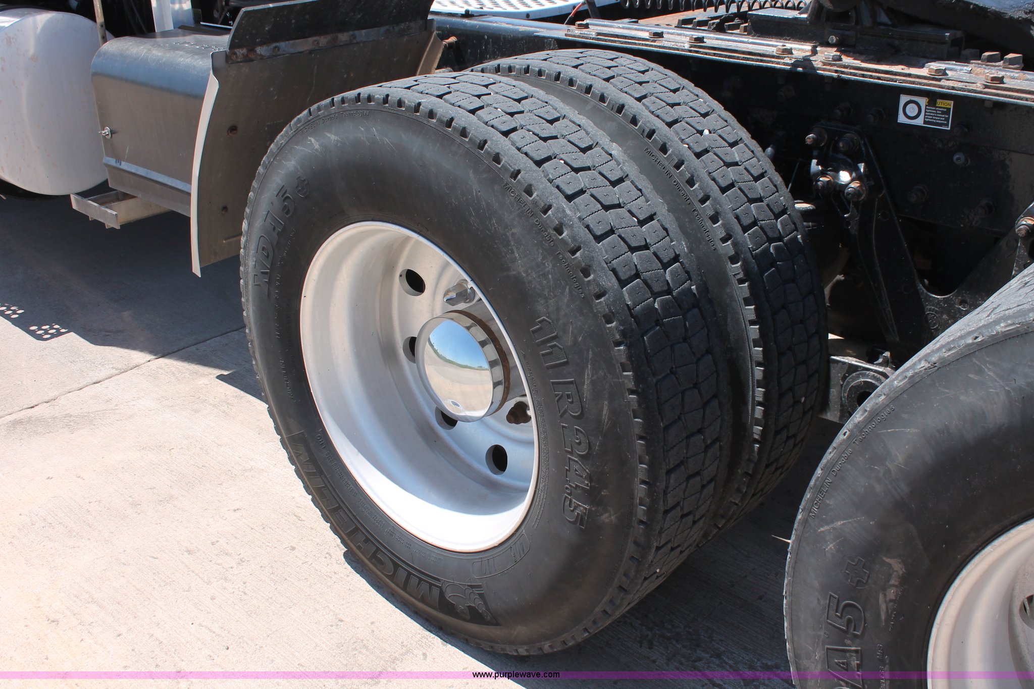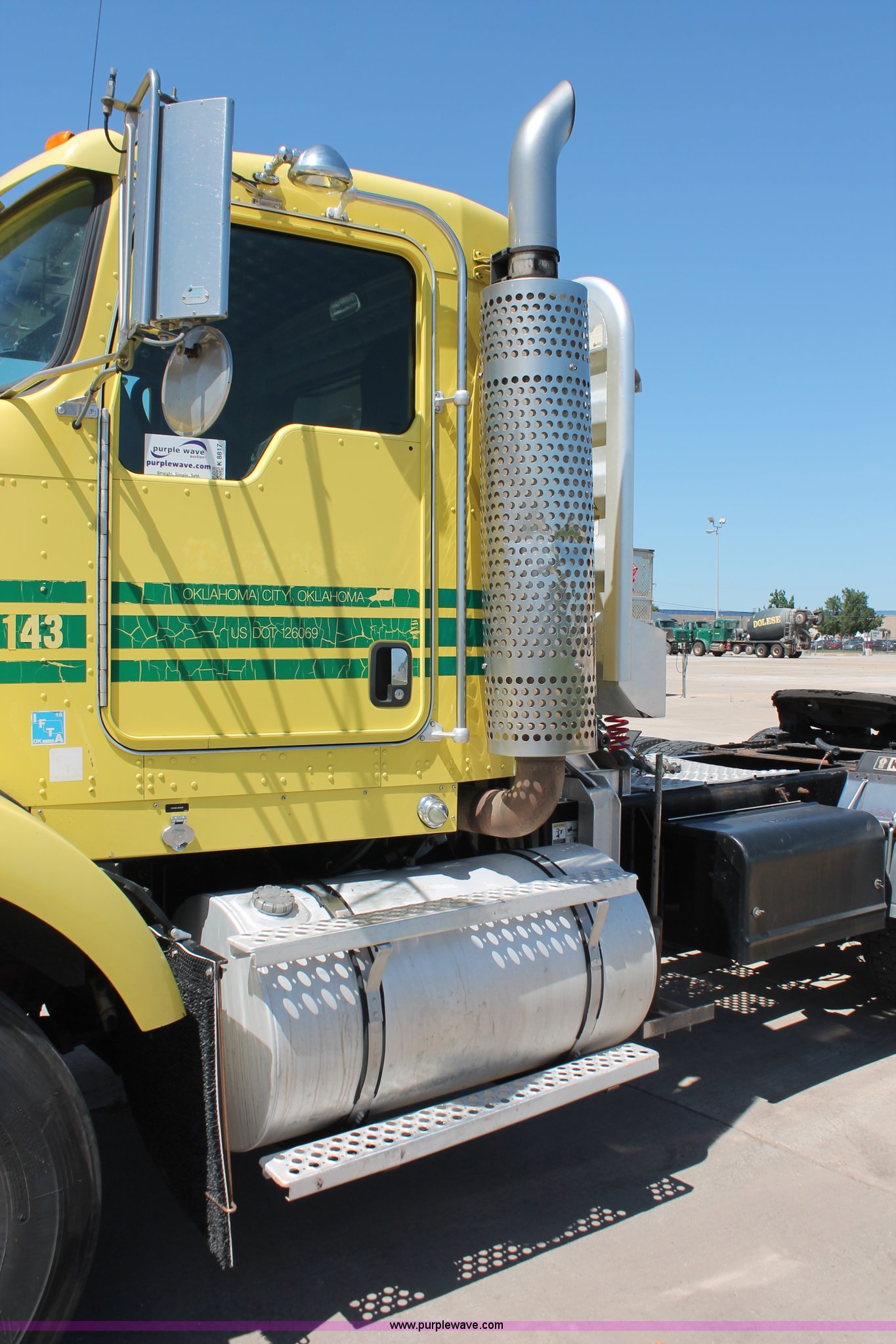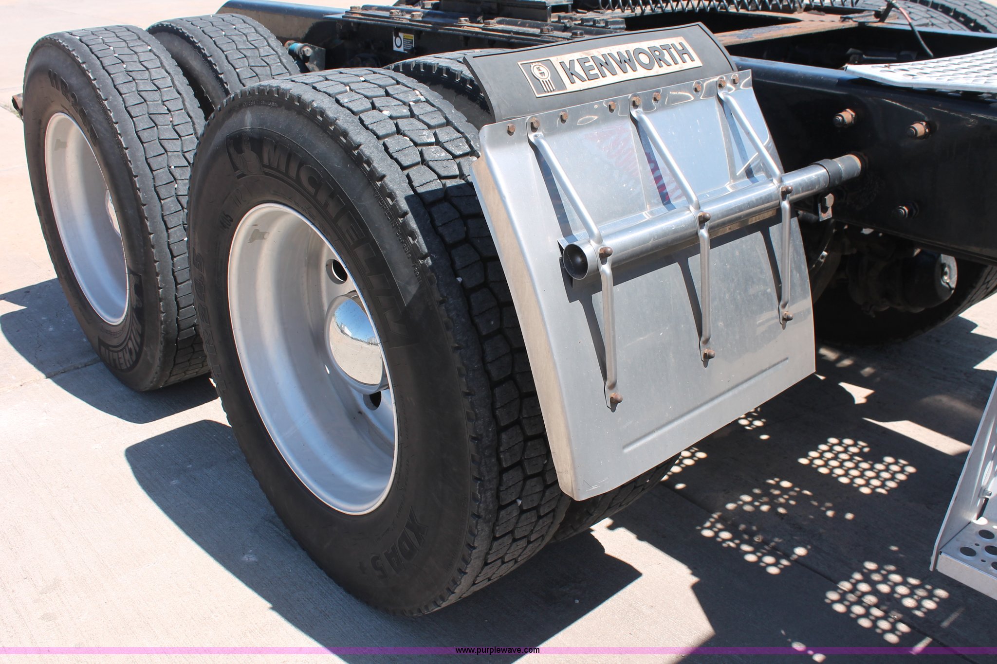 Purple Wave is selling a used Truck Tractor in Oklahoma. This item is a 2007 Kenworth T800 semi truck with the following: 572,940 miles on odometer, 20,333 hours on meter, Cummins ISX 450ST 15.0L six cylinder turbo diesel engine, 450 HP, Serial 79196972, Eaton Fuller 10 speed manual transmission, Tandem axle, AC and heat, Tilt, Cruise, AM/FM/CD, Power and heated mirrors, Air ride cab, Spotlight, Block heater, Exterior visor, Aluminum headache rack, Chain hanger, Storage, Aluminum deck plate, Air operated sliding fifth wheel plate, Dual rear exhaust stacks, Dual fuel tanks, Stainless steel quarter fenders, Mud flaps, Air suspension, Air brakes, 11R24.5 tires, GVWR 52,000 lbs, FAWR 12,000 lbs, IAWR 20,000 ls, RAWR 20,000 lbs, Unit# 203143