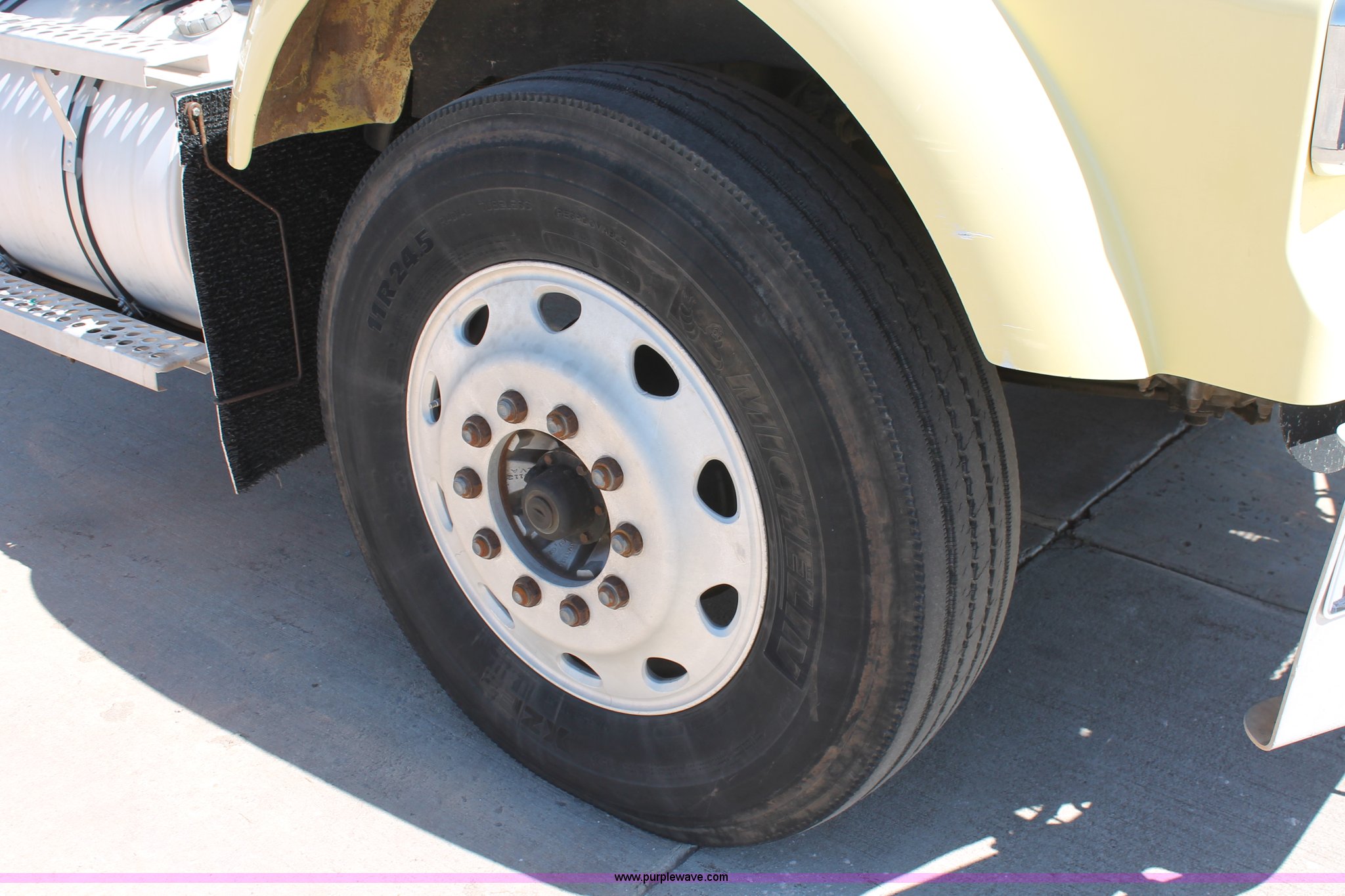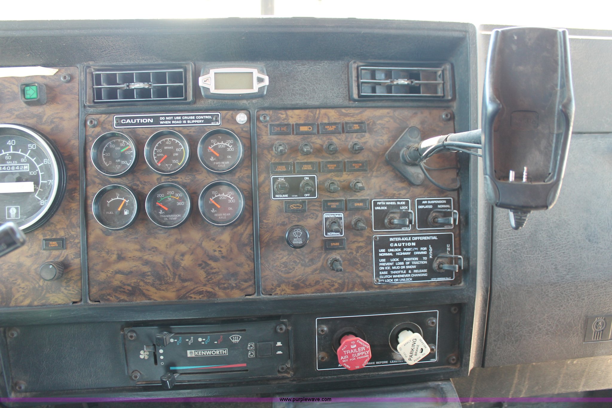 Purple Wave is selling a used Truck Tractor in Oklahoma. This item is a 1999 Kenworth T800 semi truck with the following: 840,842 miles on odometer, 3,120 hours on meter, Caterpillar C12 12.0L L6 turbo diesel engine, Serial 9NS11157, Eaton Fuller 10 speed manual transmission, Tandem axle, Inter-axle differential lock, AC and heat, Tilt, Cruise, AM/FM/CD, Heated mirrors, Air suspension seat, Air ride cab, Spotlight, Block heater, Exterior visor, Aluminum deck plate, Air operated sliding fifth wheel plate, Dual rear exhaust stacks, Dual fuel tanks, Stainless steel quarter fenders, Mud flaps, 3:90 gear ratio, Air suspension, Air brakes, 11R24.5 tires, GVWR 52,000 lbs, FAWR 12,000 lbs, IAWR 20,000 lbs, RAWR 20,000 lbs, Unit# 403174