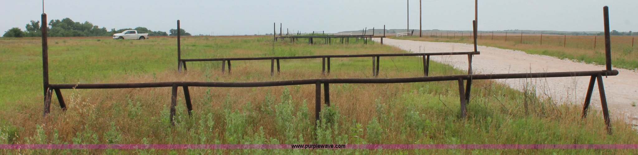 (2) 28' steel pipe racks. 3" diameter steel pipe frame, 40" triangle design, 36" pivot ends. Representative photo. Cimarron Electric. Fairview, OK 73737
