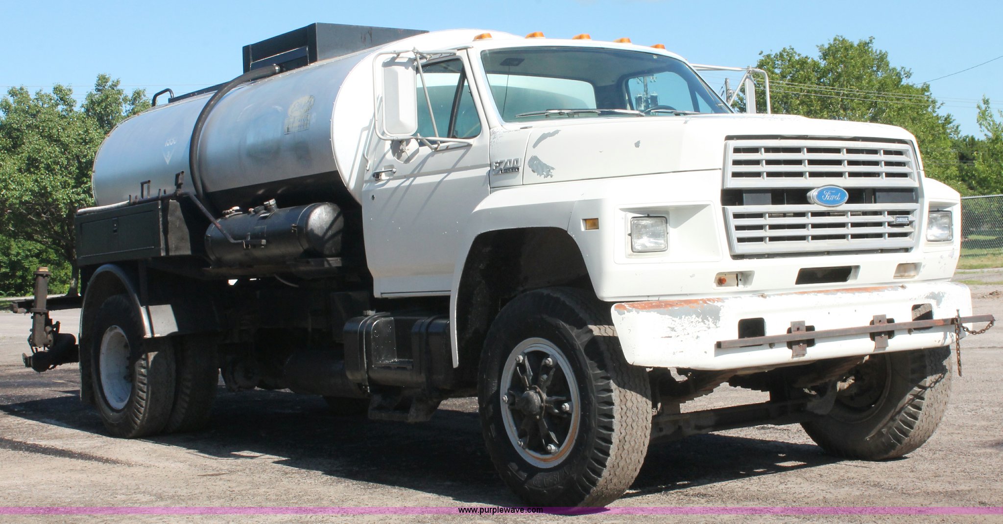 This 1993 Ford F700 oil distribution truck will sell to the highest bidder regardless of price.