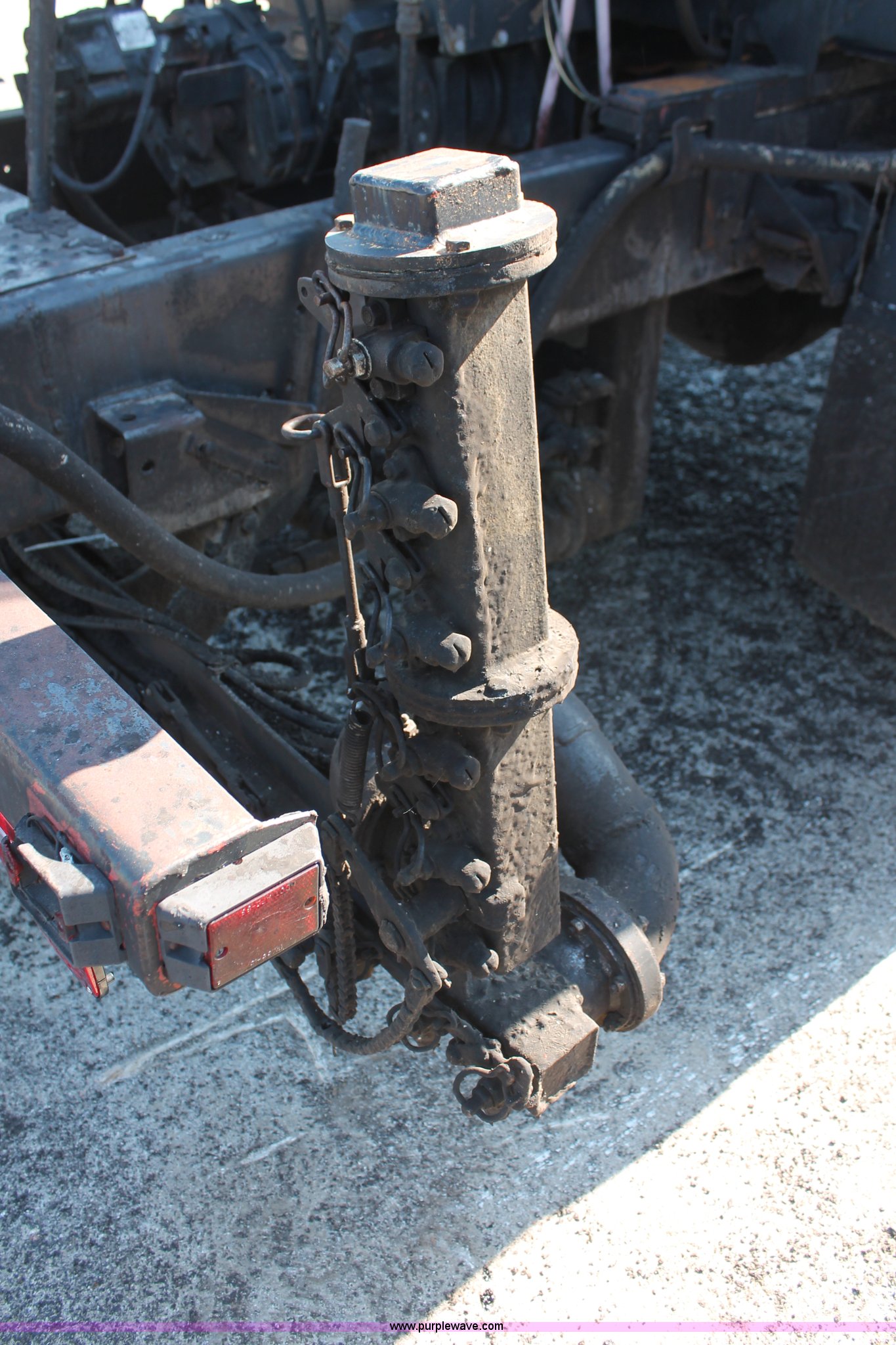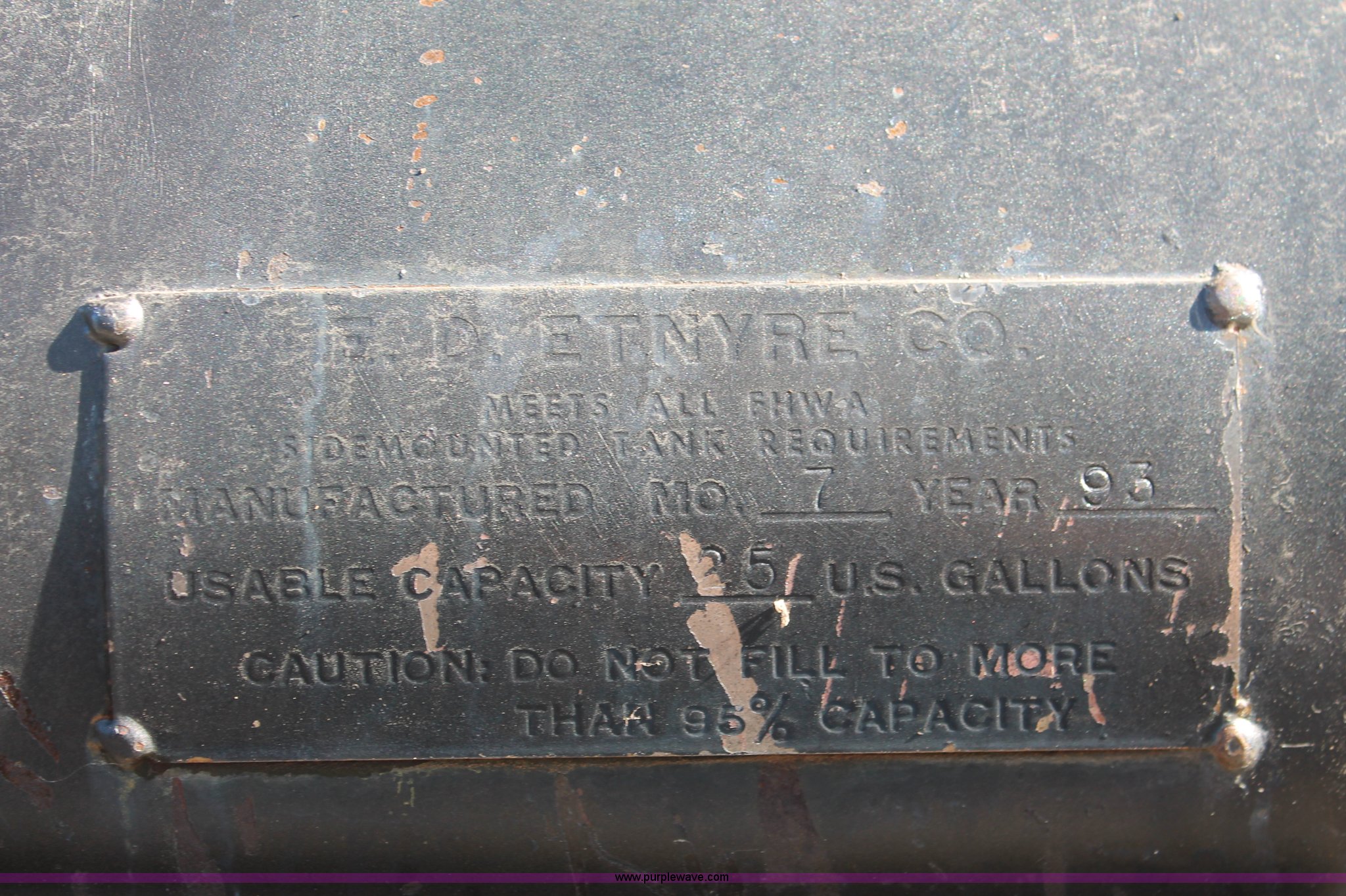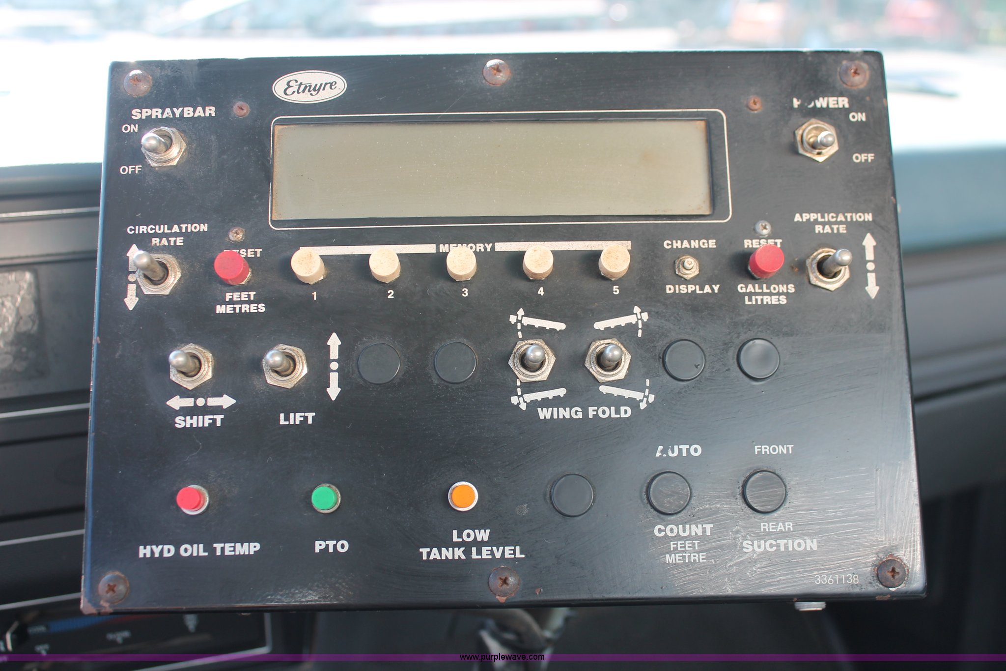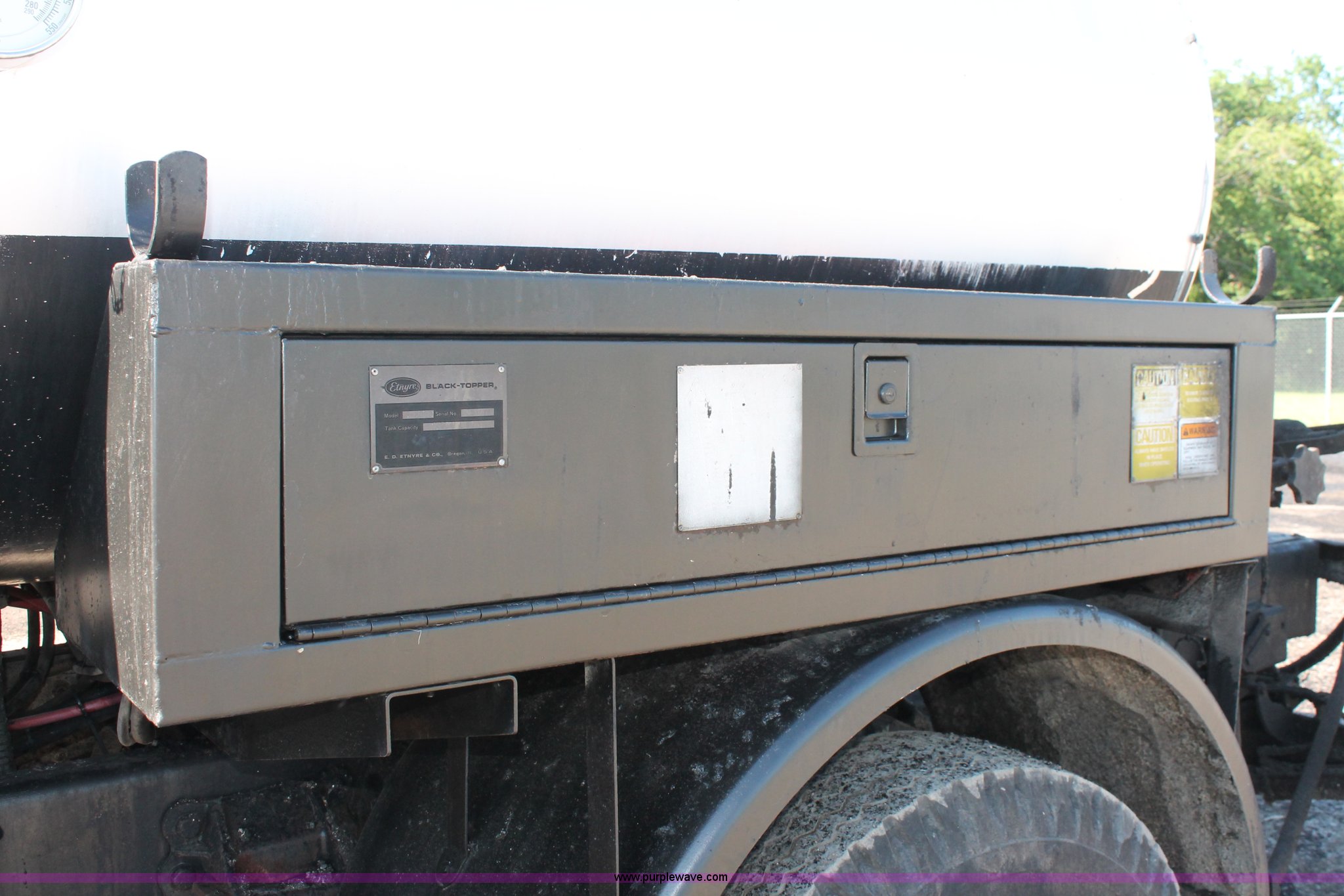 Purple Wave is selling a used Oil Distributor Truck in Oklahoma. This item is a 1993 Ford F700 oil distribution truck with the following: 27,666 miles on odometer, Cummins ISB 5.9L L6 turbo diesel engine, 190 HP, Serial 44867398, Ford nine speed manual transmission, Single axle, Heat, Front mounted PTO, 1994 Etnyre Black Topper S-2000 bed, 17'L, 1,500 gallon capacity, Serial S-1147, Diesel burner, Negative 20 degree to 500 degree Fahrenheit heat rating, Spray wand, 144" spray boom, Side shift, (36) nozzles, Single fuel tank, 190" wheelbase, Spring suspension, Air brakes, 10.00-20 tires, GVWR 33,000 lbs, Operator's manual