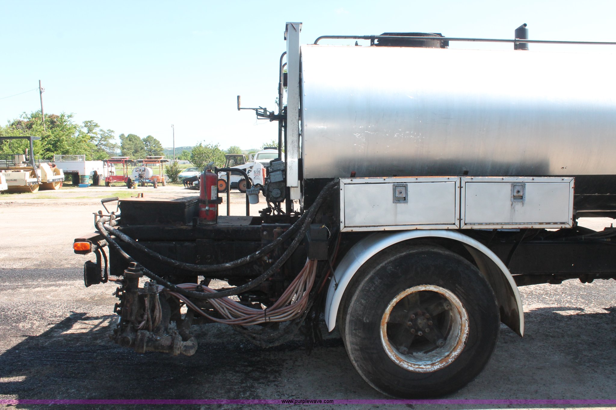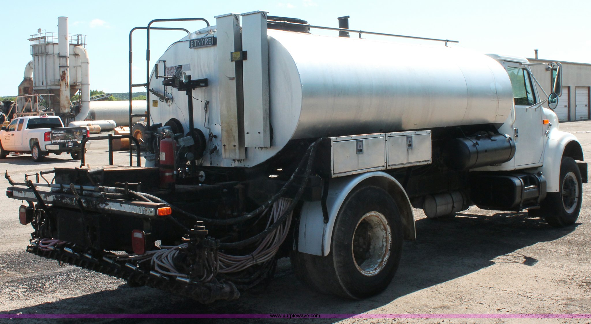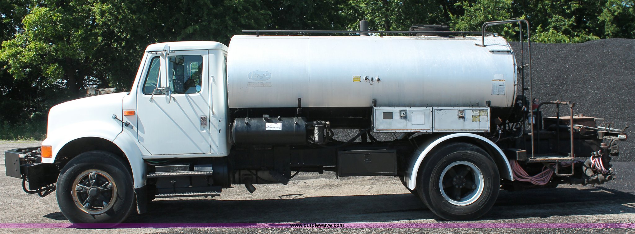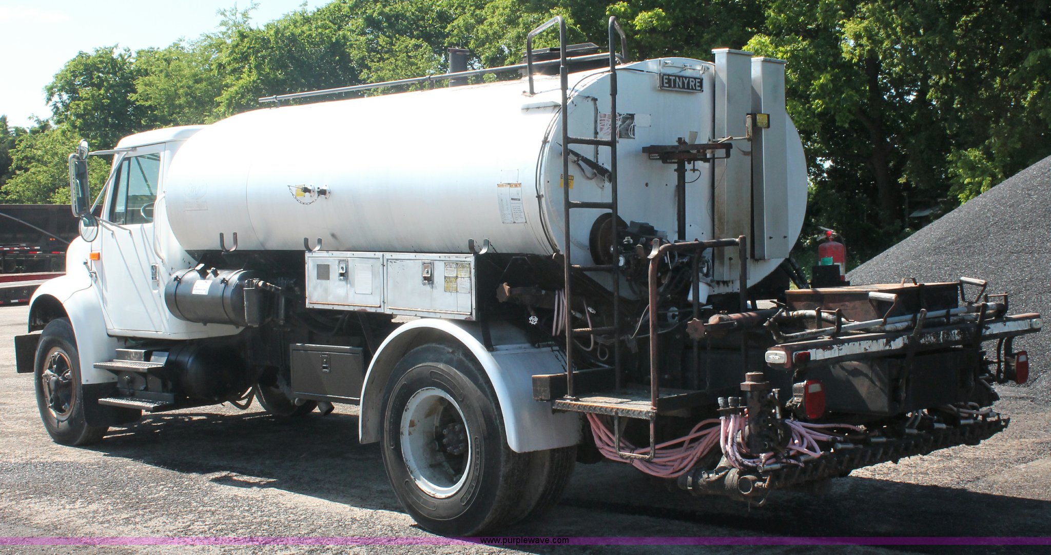 Purple Wave is selling a used Oil Distributor Truck in Oklahoma. This item is a 1993 International 4700 oil distribution truck with the following: 87,453 miles on odometer, International DT360 5.9L L6 turbo diesel engine, 190 HP, Spicer 10 speed manual transmission, Single axle, Heat, Front mounted PTO, Etnyre BT-SAM Black Topper bed, 17'L, 1,910 gallon capacity, Serial C-1291, Diesel burner, Etnyre DC5000 in-cab controls, Spray wand, 96" boom width, Side shift, (24) nozzles, Toolbox, Ladder, Single fuel tank, 188" wheelbase, Spring suspension, 10.00R20 tires, GVWR 31,860 lbs, Operator's manual