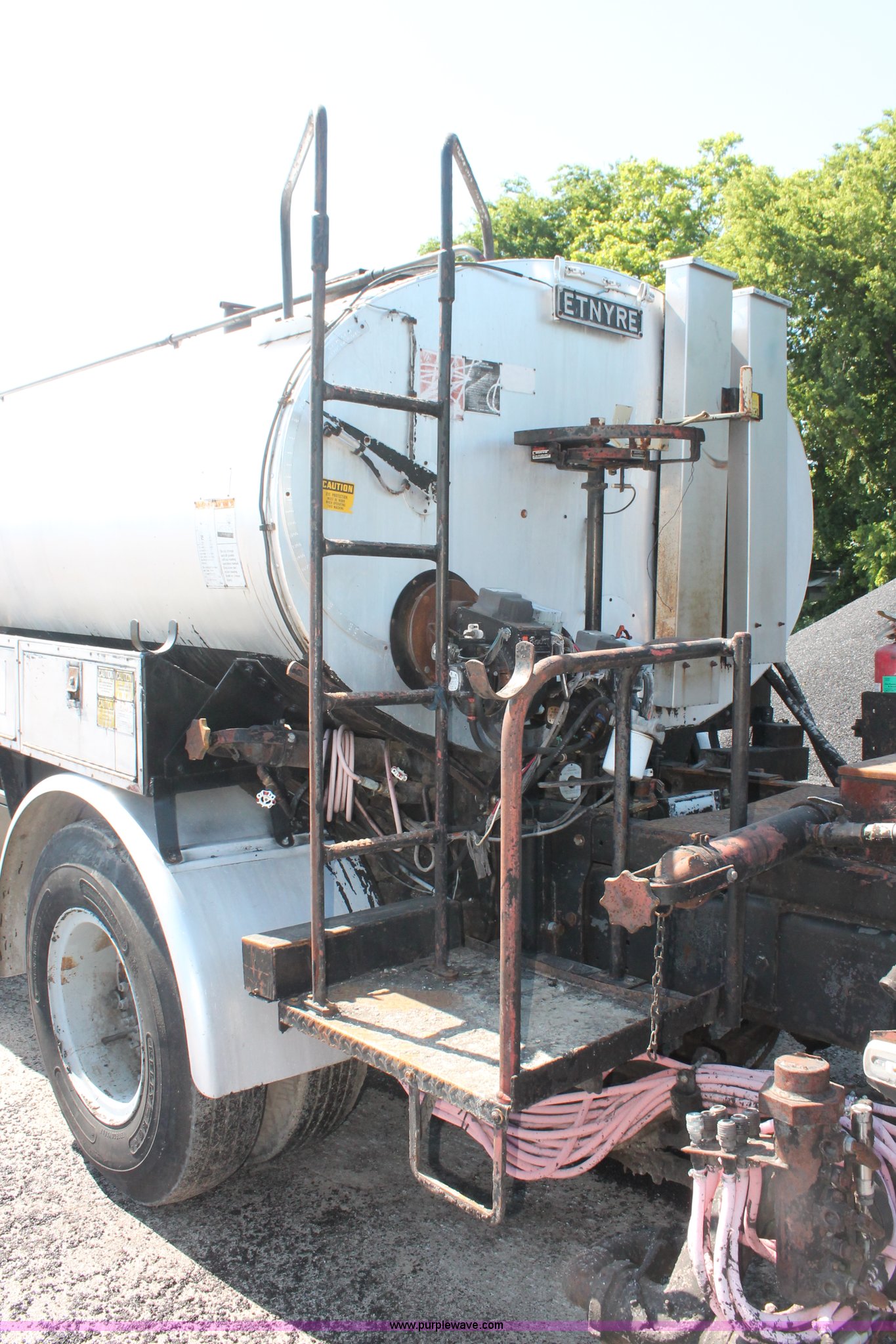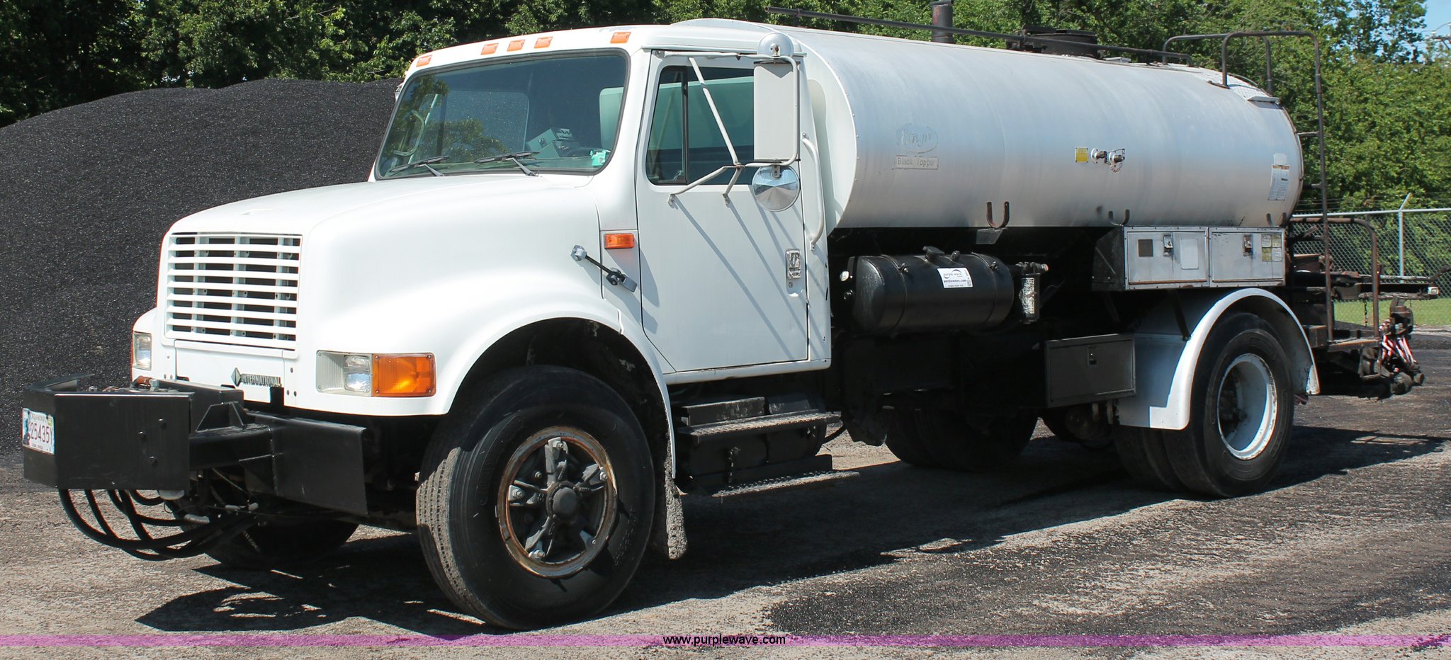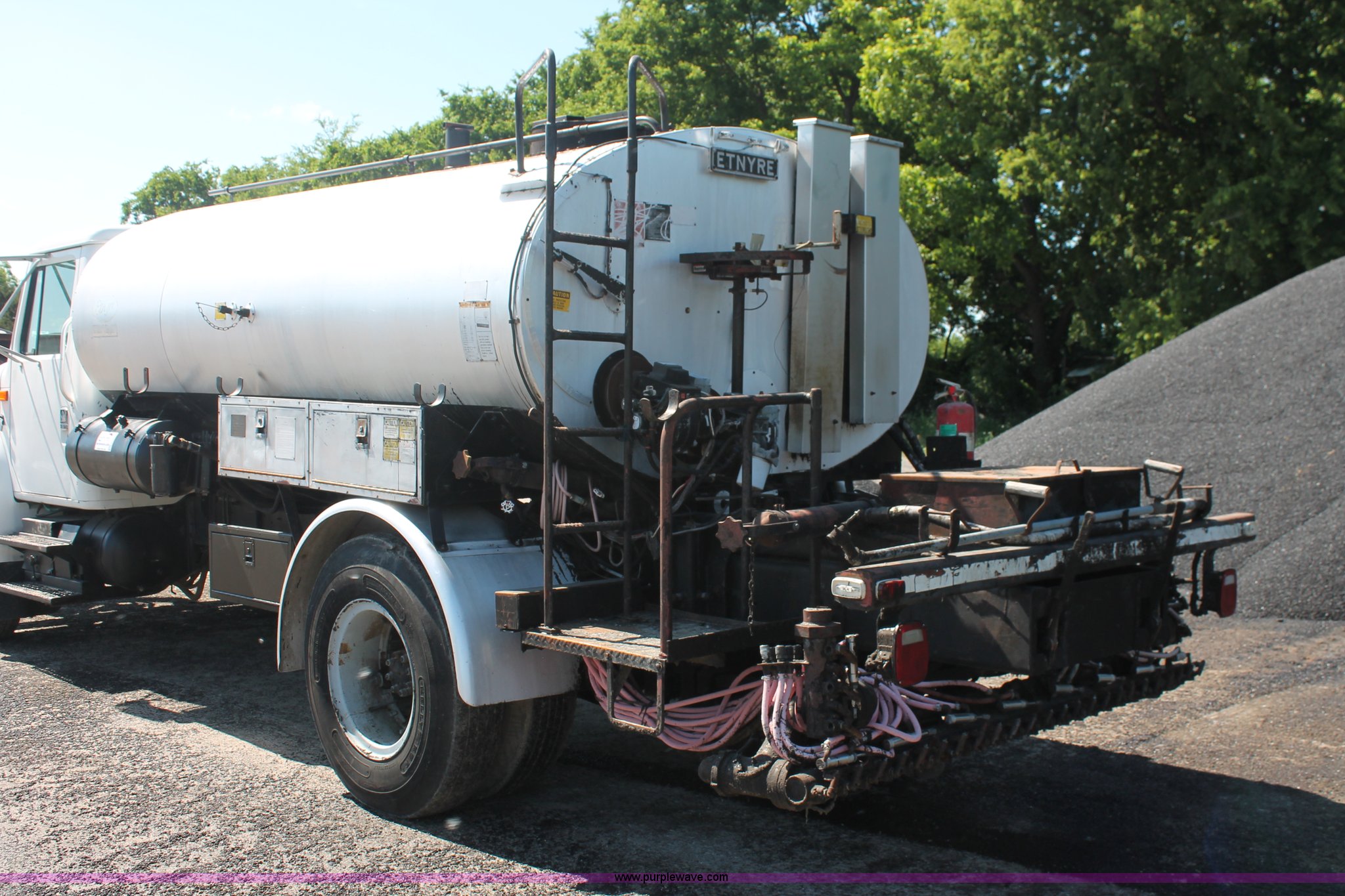 Purple Wave is selling a used Oil Distributor Truck in Oklahoma. This item is a 1993 International 4700 oil distribution truck with the following: 87,453 miles on odometer, International DT360 5.9L L6 turbo diesel engine, 190 HP, Spicer 10 speed manual transmission, Single axle, Heat, Front mounted PTO, Etnyre BT-SAM Black Topper bed, 17'L, 1,910 gallon capacity, Serial C-1291, Diesel burner, Etnyre DC5000 in-cab controls, Spray wand, 96" boom width, Side shift, (24) nozzles, Toolbox, Ladder, Single fuel tank, 188" wheelbase, Spring suspension, 10.00R20 tires, GVWR 31,860 lbs, Operator's manual