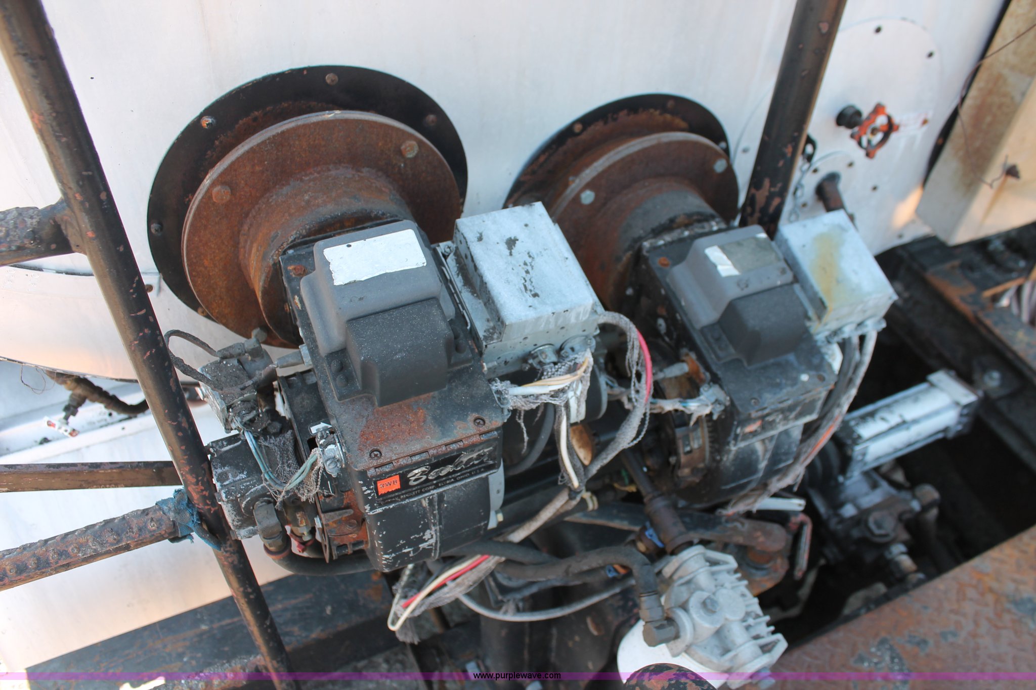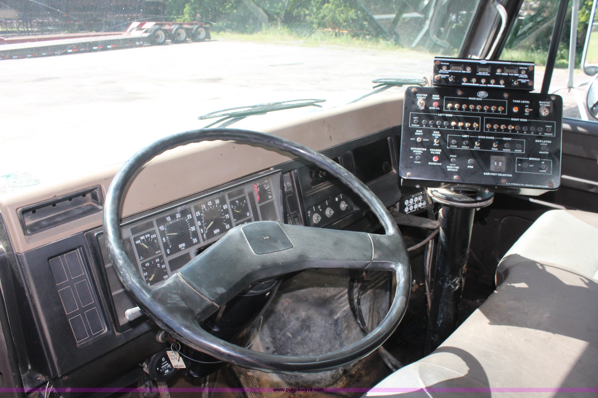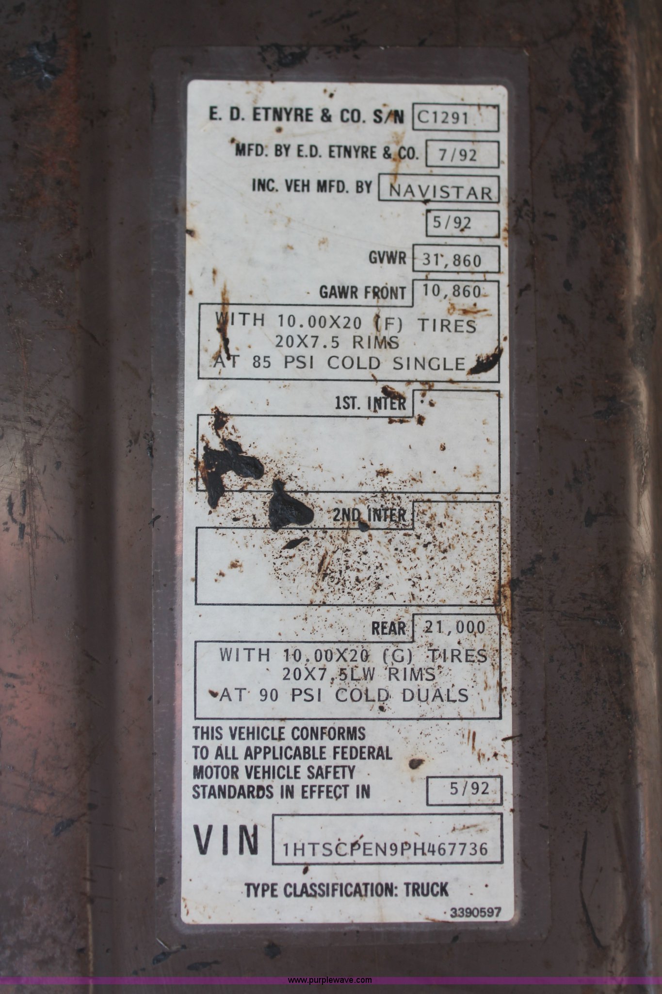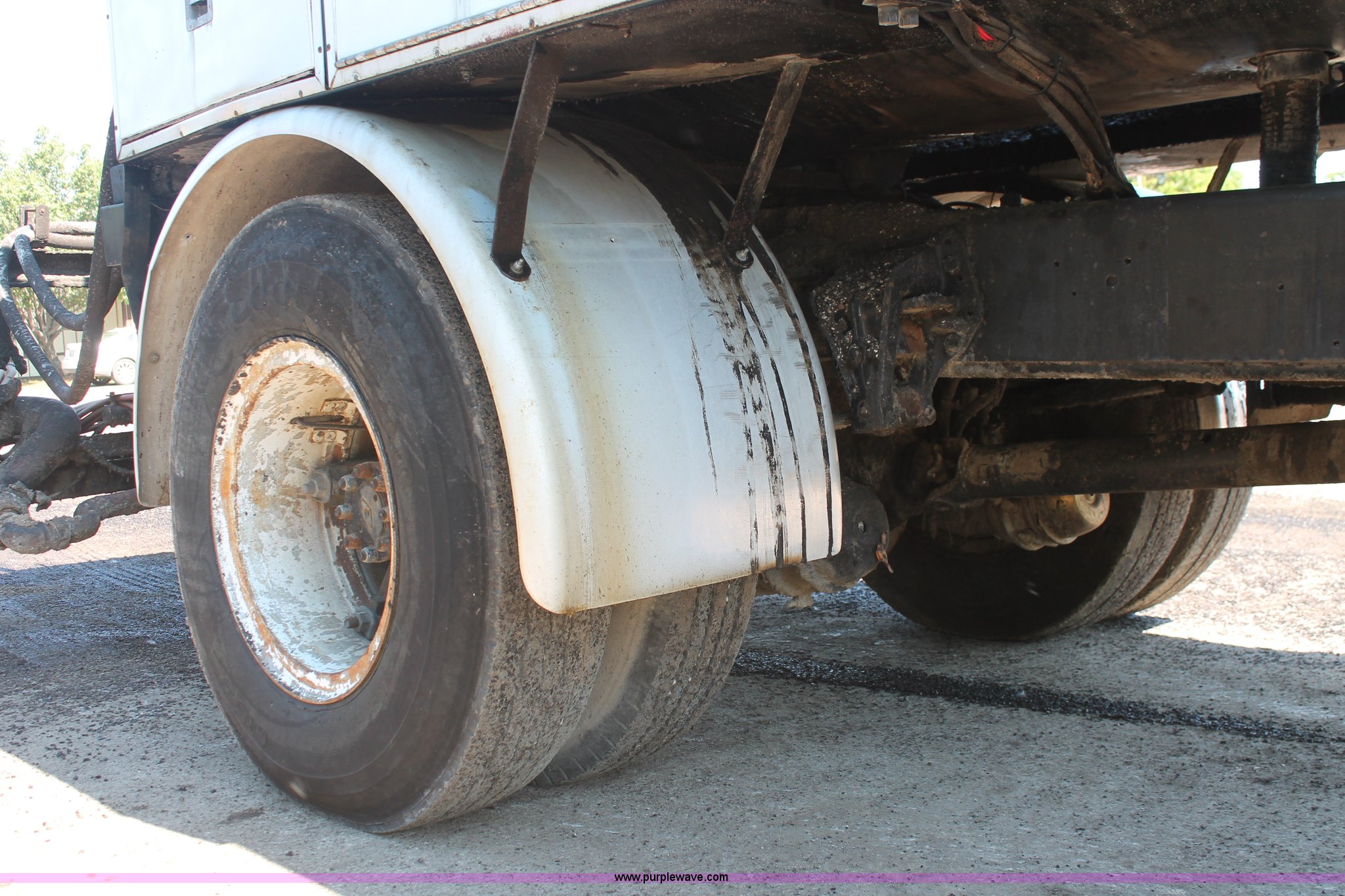 Purple Wave is selling a used Oil Distributor Truck in Oklahoma. This item is a 1993 International 4700 oil distribution truck with the following: 87,453 miles on odometer, International DT360 5.9L L6 turbo diesel engine, 190 HP, Spicer 10 speed manual transmission, Single axle, Heat, Front mounted PTO, Etnyre BT-SAM Black Topper bed, 17'L, 1,910 gallon capacity, Serial C-1291, Diesel burner, Etnyre DC5000 in-cab controls, Spray wand, 96" boom width, Side shift, (24) nozzles, Toolbox, Ladder, Single fuel tank, 188" wheelbase, Spring suspension, 10.00R20 tires, GVWR 31,860 lbs, Operator's manual