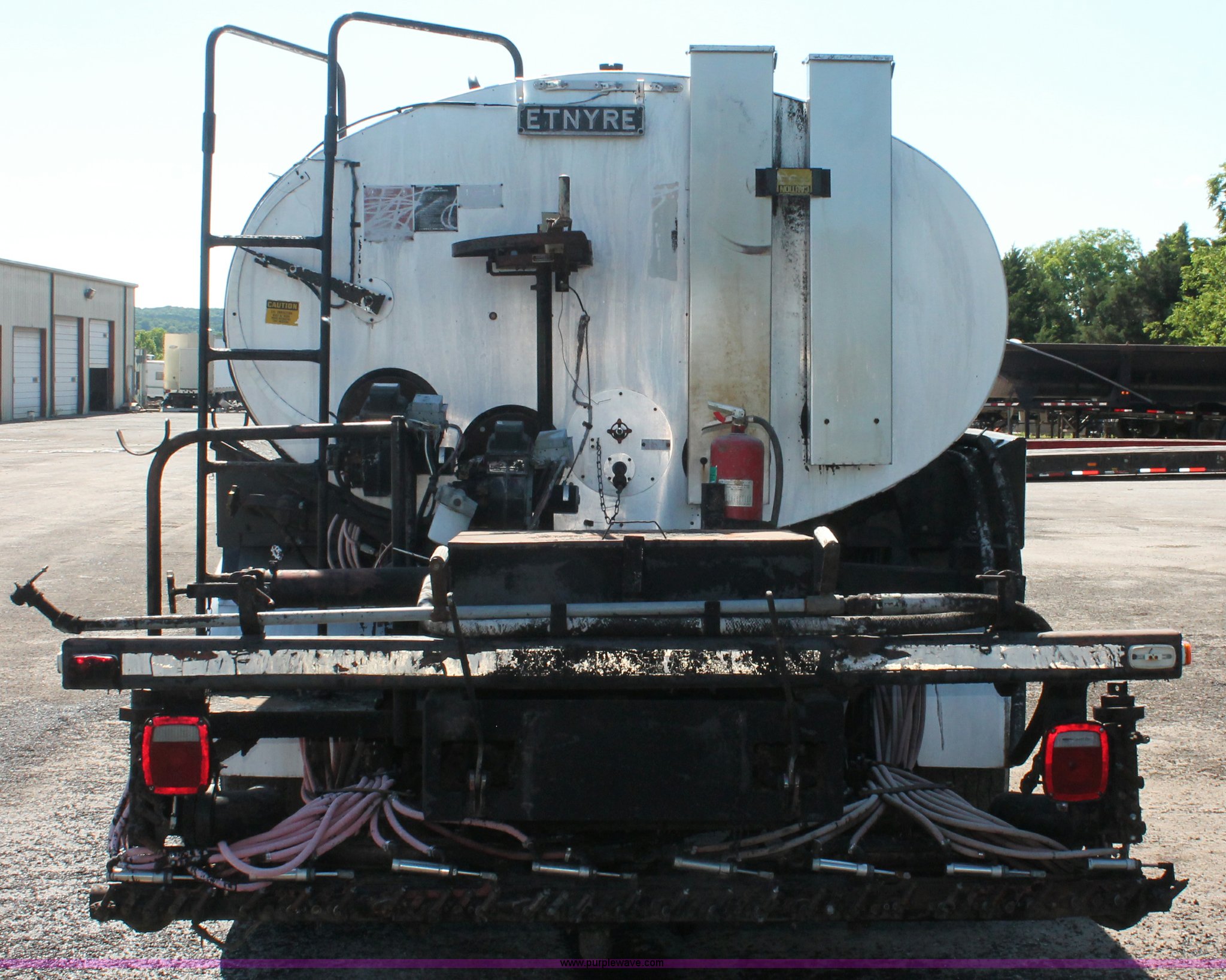 1993 International 4700 oil distribution truck. 87,453 miles on odometer, International DT360 5.9L L6 turbo diesel engine 190 HP, Spicer 10 speed manual transmission, Single axle, Heat, Front mounted PTO, Etnyre BT-SAM Black Topper bed 17'L, 1,910 gallon capacity, Serial C-1291, Diesel burner, Etnyre DC5000 in-cab controls, Spray wand 96" boom width, Side shift, (24) nozzles, Toolbox, Ladder, Single fuel tank, 188" wheelbase, Spring suspension, 10.00R20 tires, GVWR 31,860 lbs, Operator's manual. Oklahoma title.. Title distribution may be delayed up to 14 days from verification of funds. 1HTSCPEN9PH467736. G & A Equipment. 2244 U.S. Highway 77 South. Davis, OK 73030