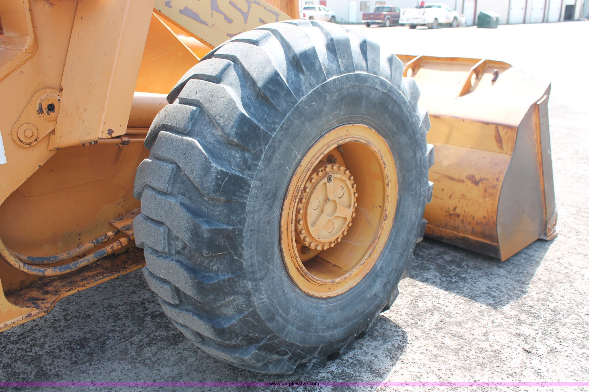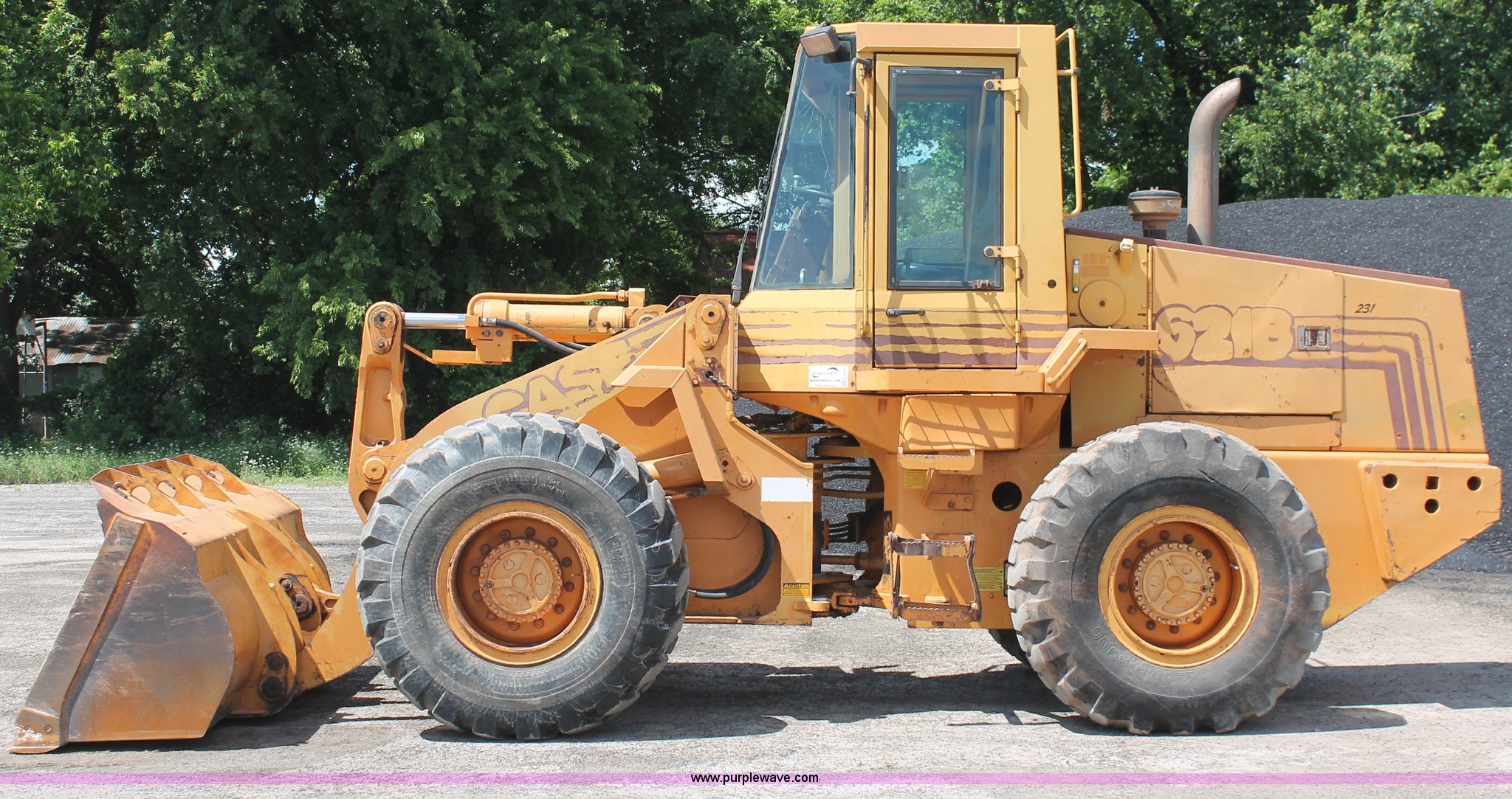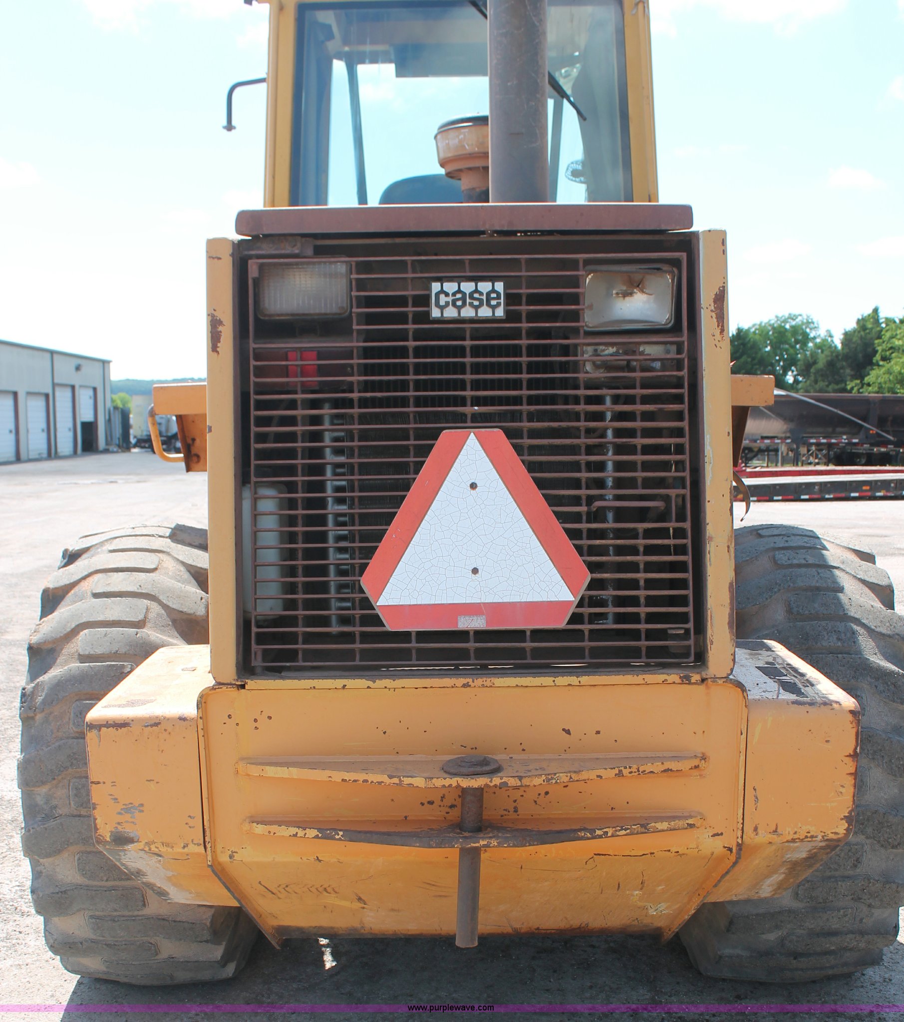 Purple Wave is selling a used Wheel Loader in Oklahoma. This item is a 1992 Case 621 wheel loader with the following: 9,230 hours on meter, Cummins 5.9L six cylinder turbo diesel engine, Powershift transmission, 4F-4R gears, EROPS, Heat, Tilt steering wheel, Suspension seat, Wipers, Blower, 102"W bucket, Bolt-on cutting edge, 2.5 cu. yd. capacity, Rear pin hitch, 20.5-25 tires, 24,893 lbs. base operating weight, Serial JAK0027483