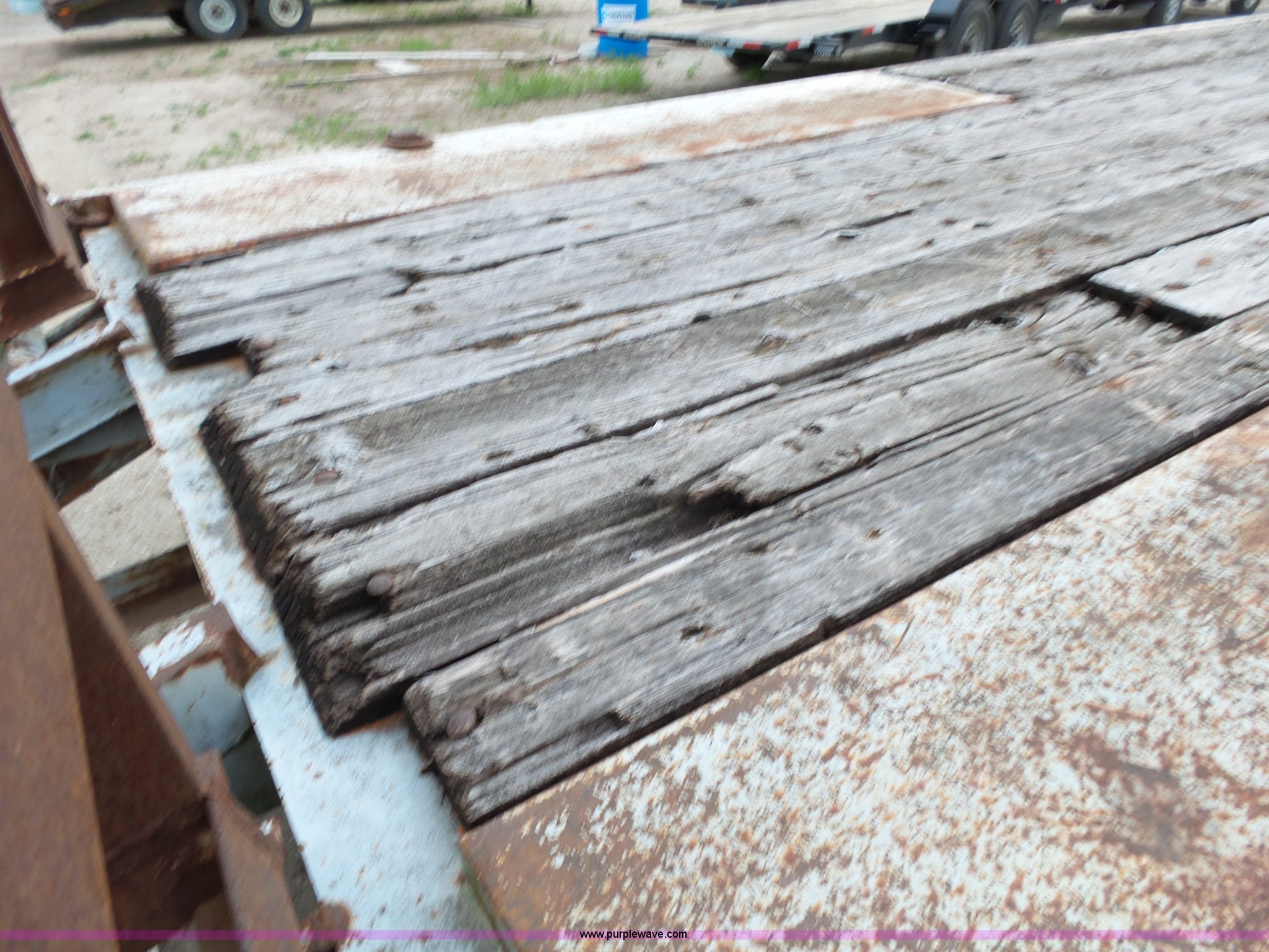 Purple Wave is selling a used Equip. Trailer in Missouri. This item is a Shop built equipment trailer with the following: 30' overall length, 20.5'L x 8'W wood deck, 4'L dovetail, 40" side height, 3'7"L ramps, D-ring tie downs, Single leg landing gear, Pintle hitch, Tandem axle, Spring suspension, Electric brakes, Steel wheels, 7.50-16LT tires
