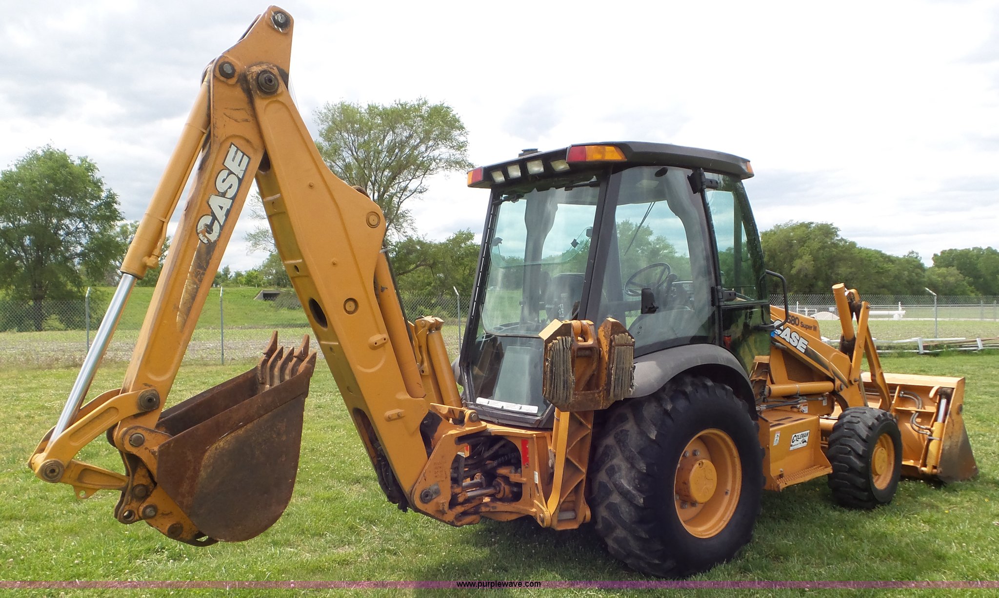 Purple Wave is selling a used Tractor Loader Backhoe in Kansas. This item is a 2003 Case 580 Super M backhoe with the following: 4,770 hours on meter, Case New Holland 4T-390 3.9L four cylinder turbo diesel engine, Shuttle shift transmission, 4F-4R gears, Four wheel drive, EROPS, Heat, Suspension seat, Wobble stick backhoe controls, Wipers, Front and rear work lights, 81"W loader bucket, Bolt-on cutting edge, Four-in-one bucket, Auxiliary hydraulics, 24"W backhoe bucket, (5) teeth, Block heater, 12-16.5 front tires, 19.5-24 rear tires, 14,250 lbs. base operating weight, Serial JJG0374429