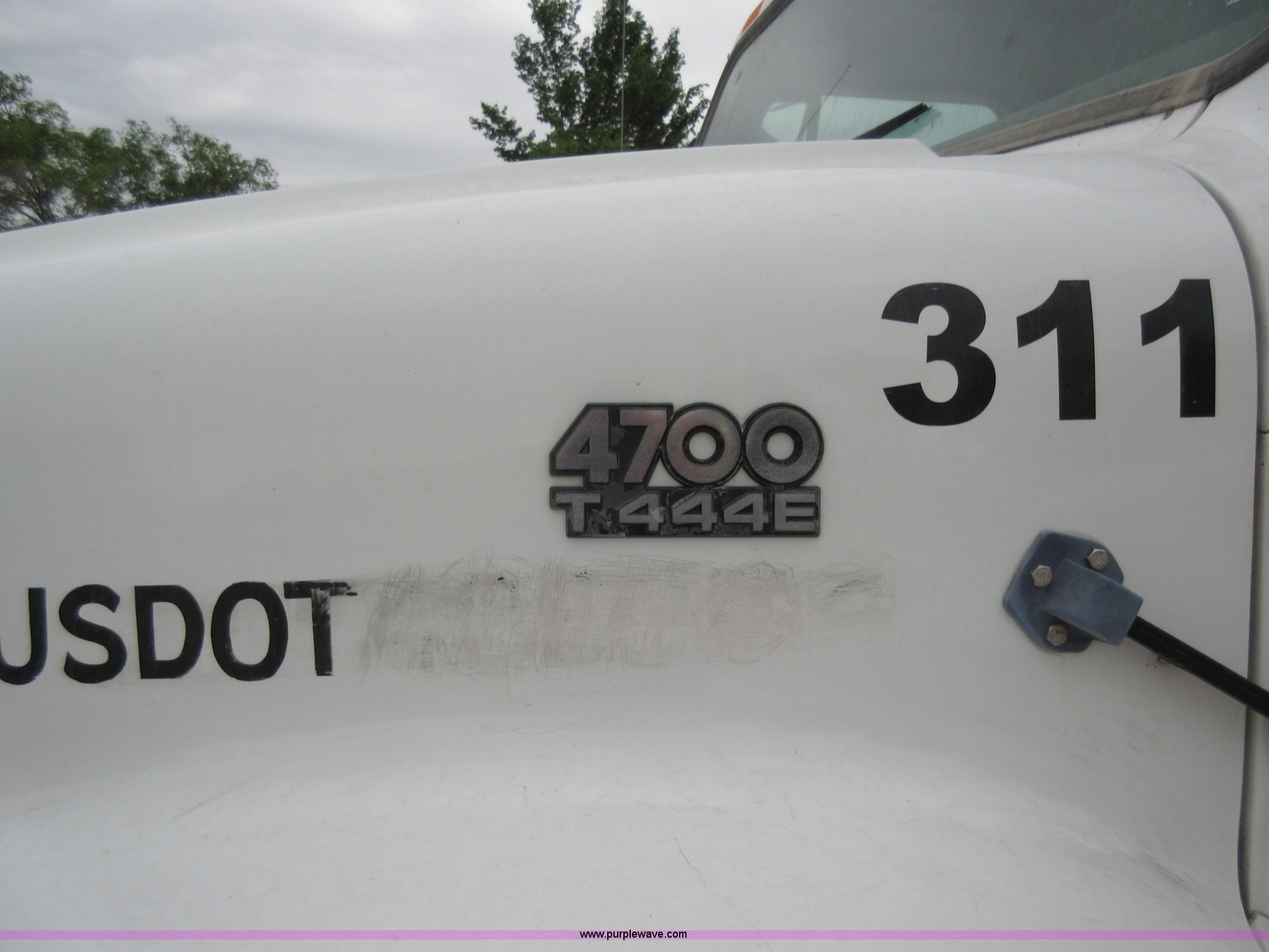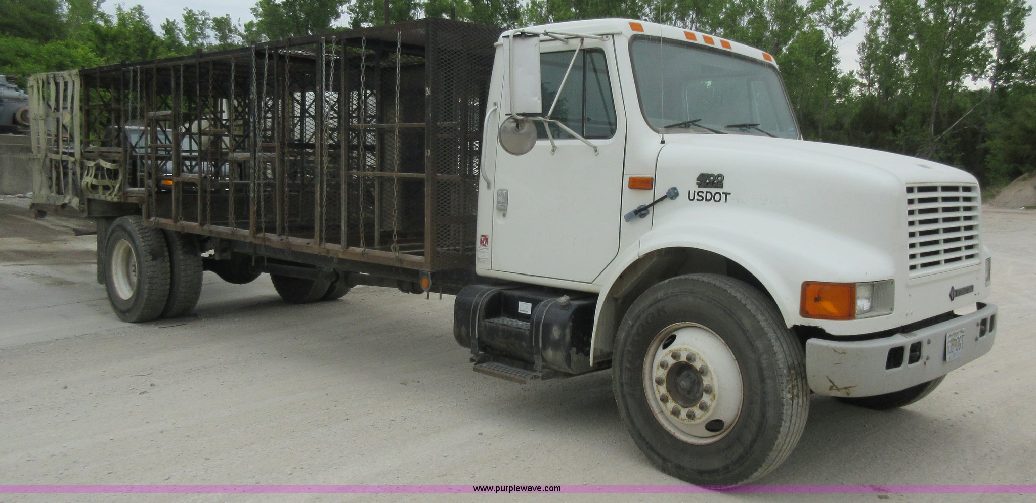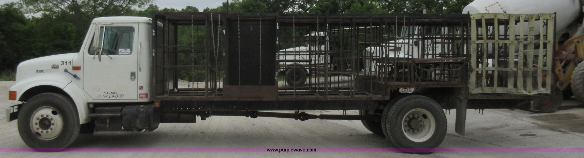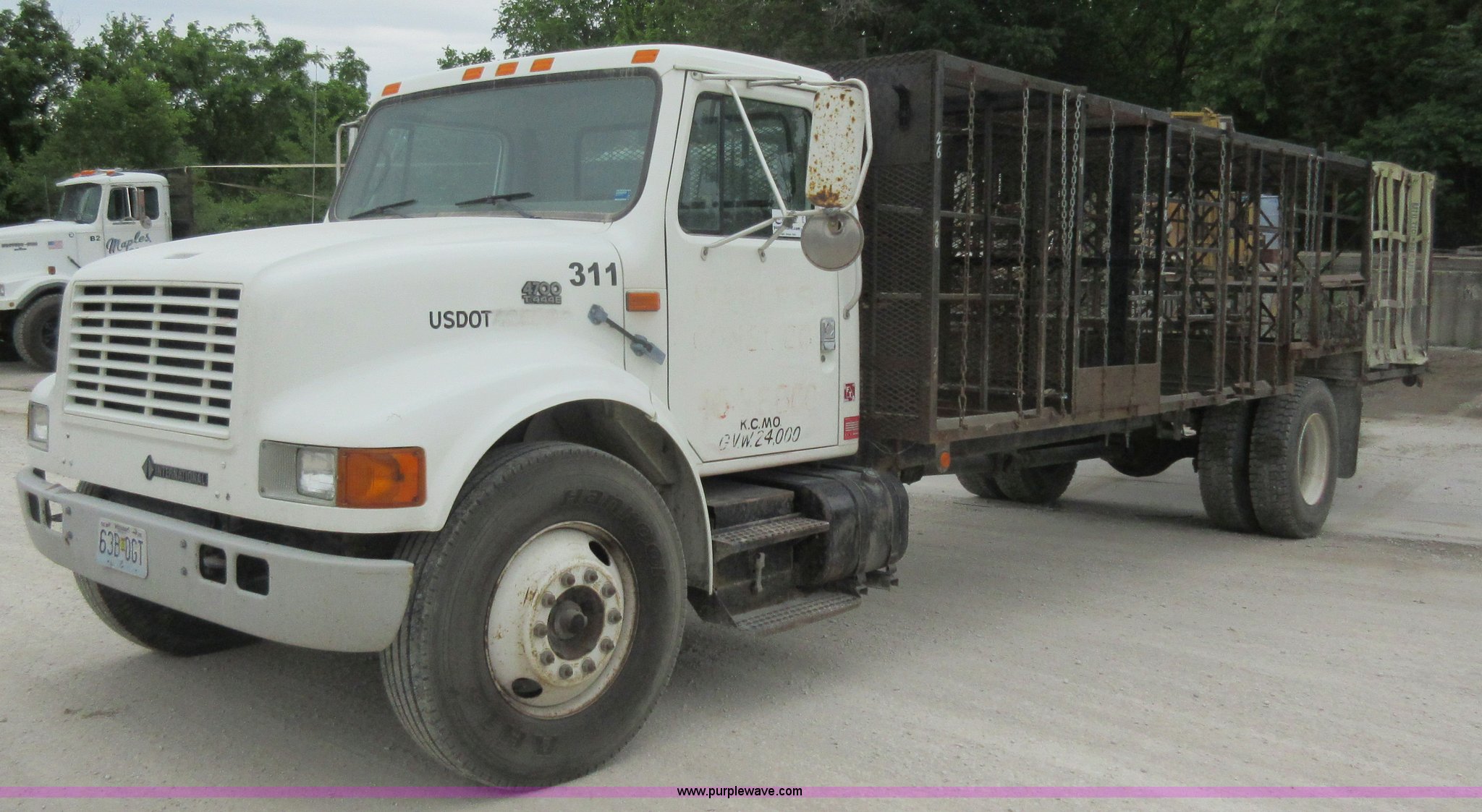 Purple Wave is selling a used Flat Bed Truck in Missouri. This item is a 1998 International 4700 form truck with the following: 151,981 miles on odometer, International T444E 7.3L V8 OHV 16V diesel engine, International six speed manual transmission, AC and heat, Cruise, AM/FM/cassette, Manual windows and locks, Vinyl interior, 23'L x 8'W form bed, 182" from back of cab to center of rear axle, 254" wheelbase, 11R22.5 tires, Hydraulic brakes, Unit# 311