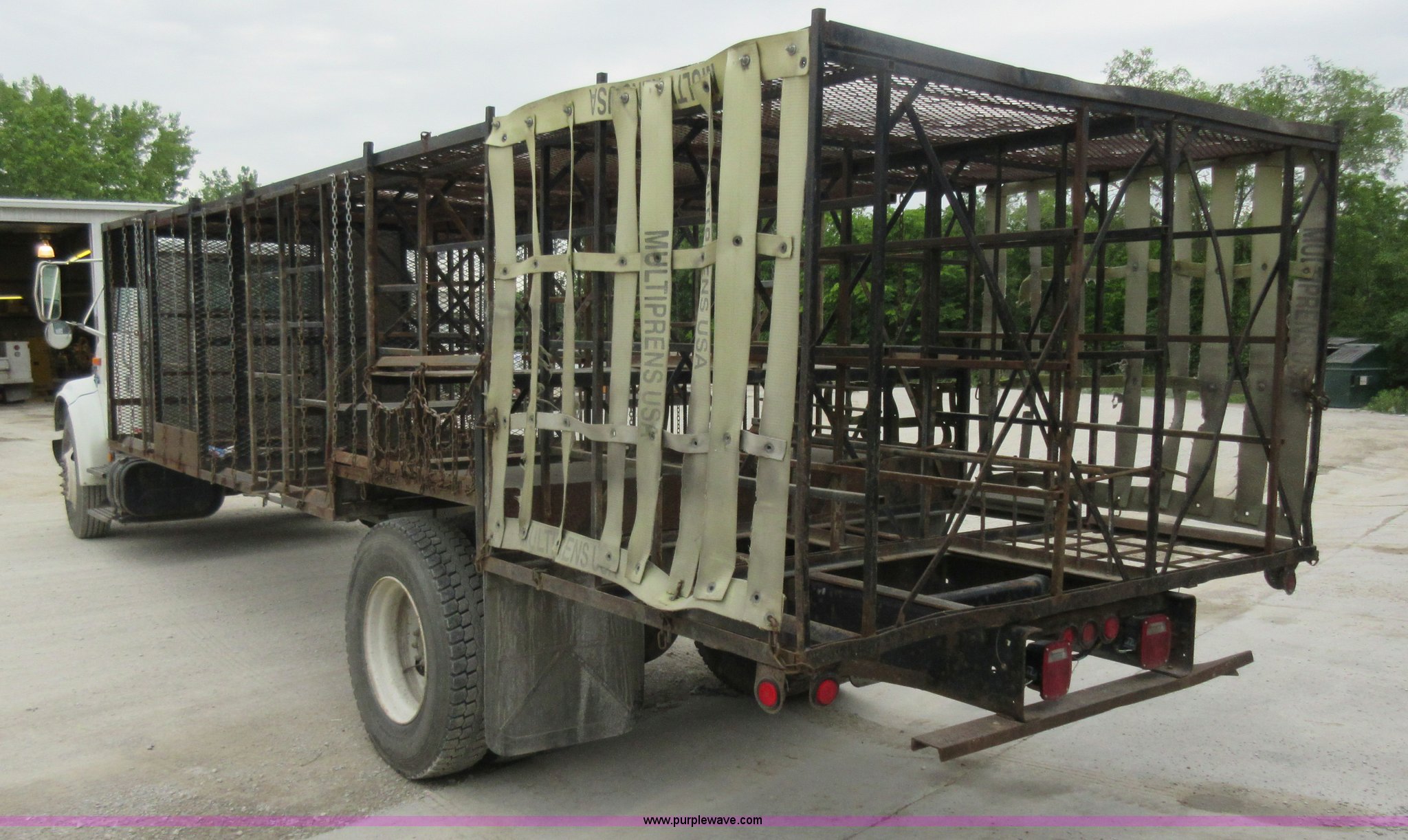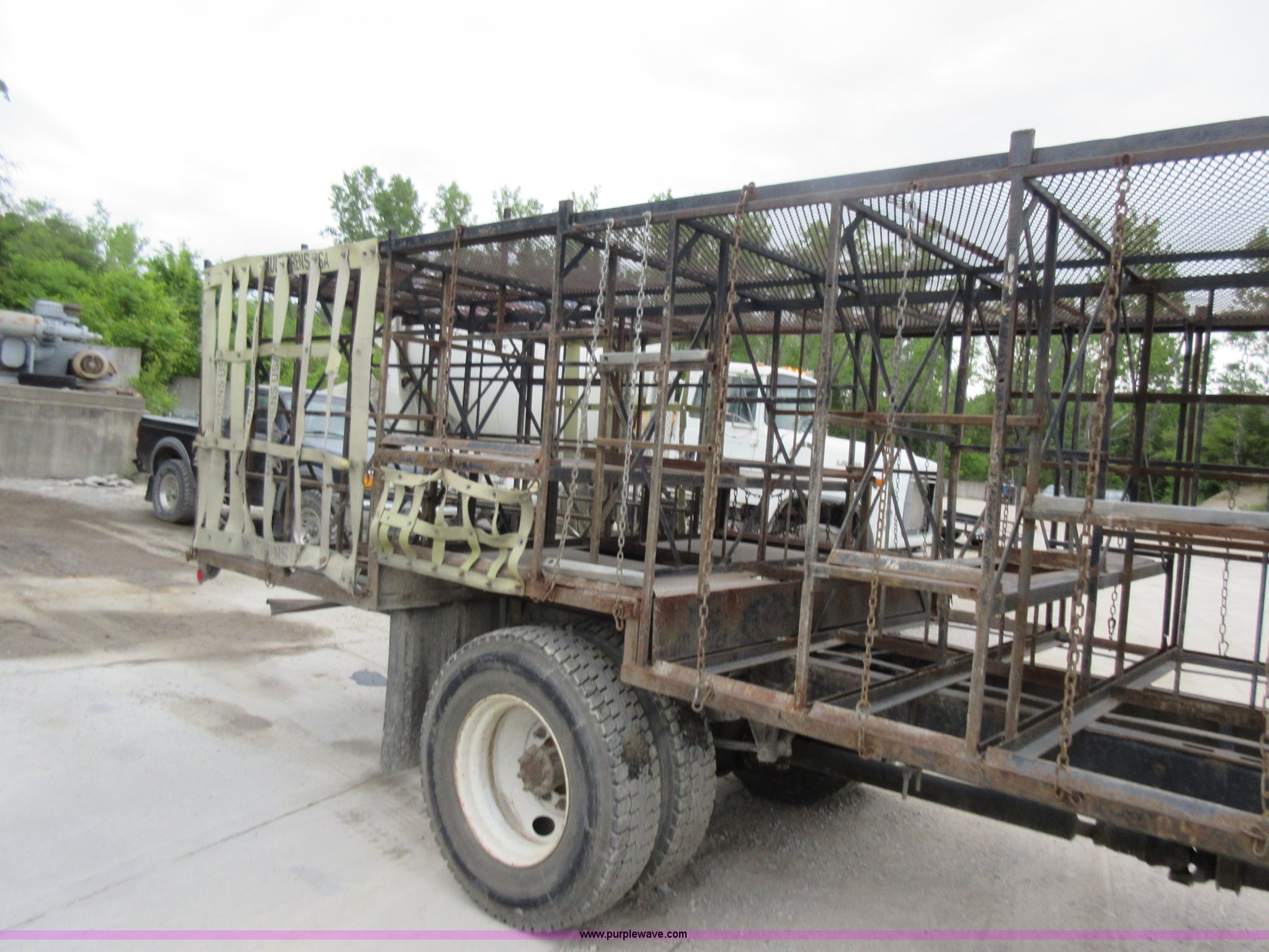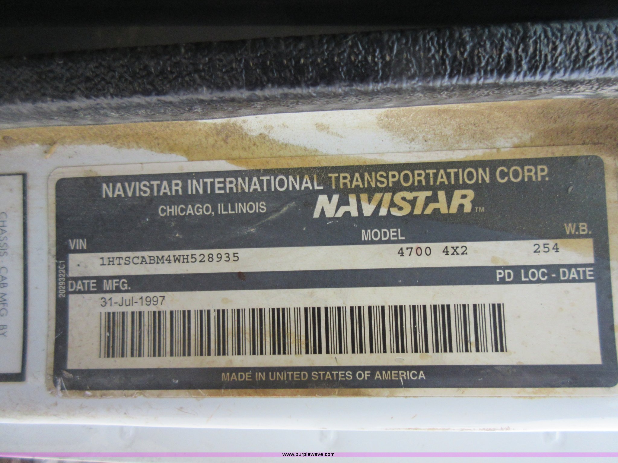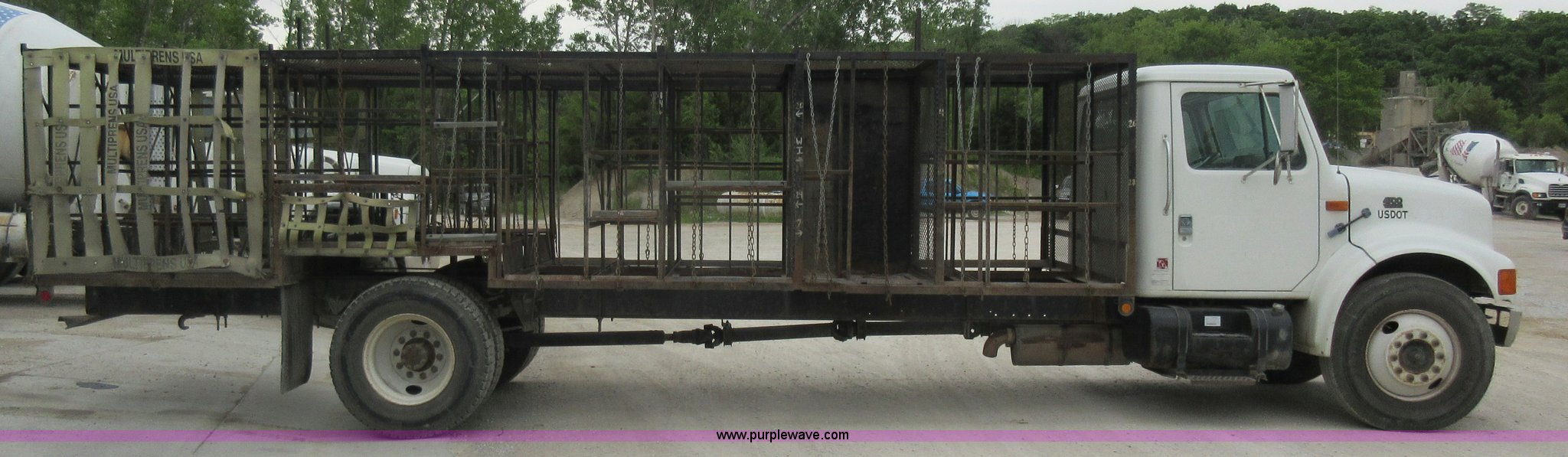 Purple Wave is selling a used Flat Bed Truck in Missouri. This item is a 1998 International 4700 form truck with the following: 151,981 miles on odometer, International T444E 7.3L V8 OHV 16V diesel engine, International six speed manual transmission, AC and heat, Cruise, AM/FM/cassette, Manual windows and locks, Vinyl interior, 23'L x 8'W form bed, 182" from back of cab to center of rear axle, 254" wheelbase, 11R22.5 tires, Hydraulic brakes, Unit# 311
