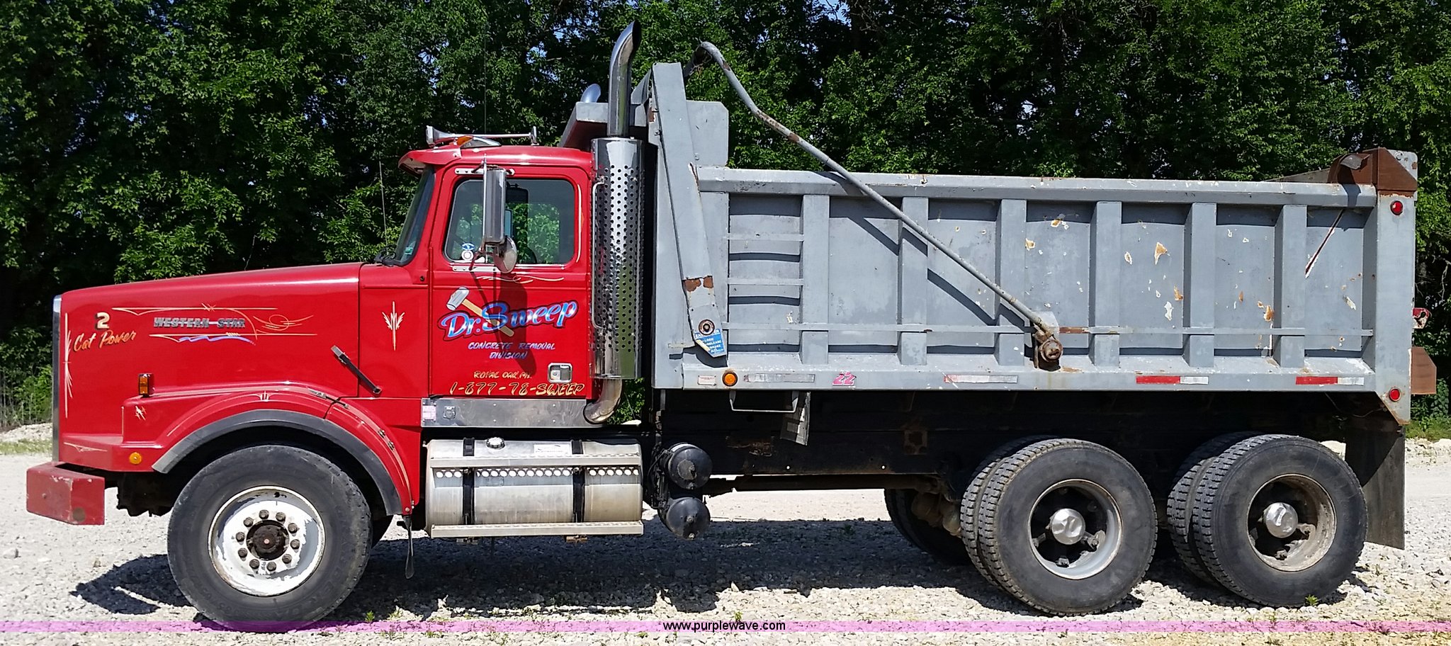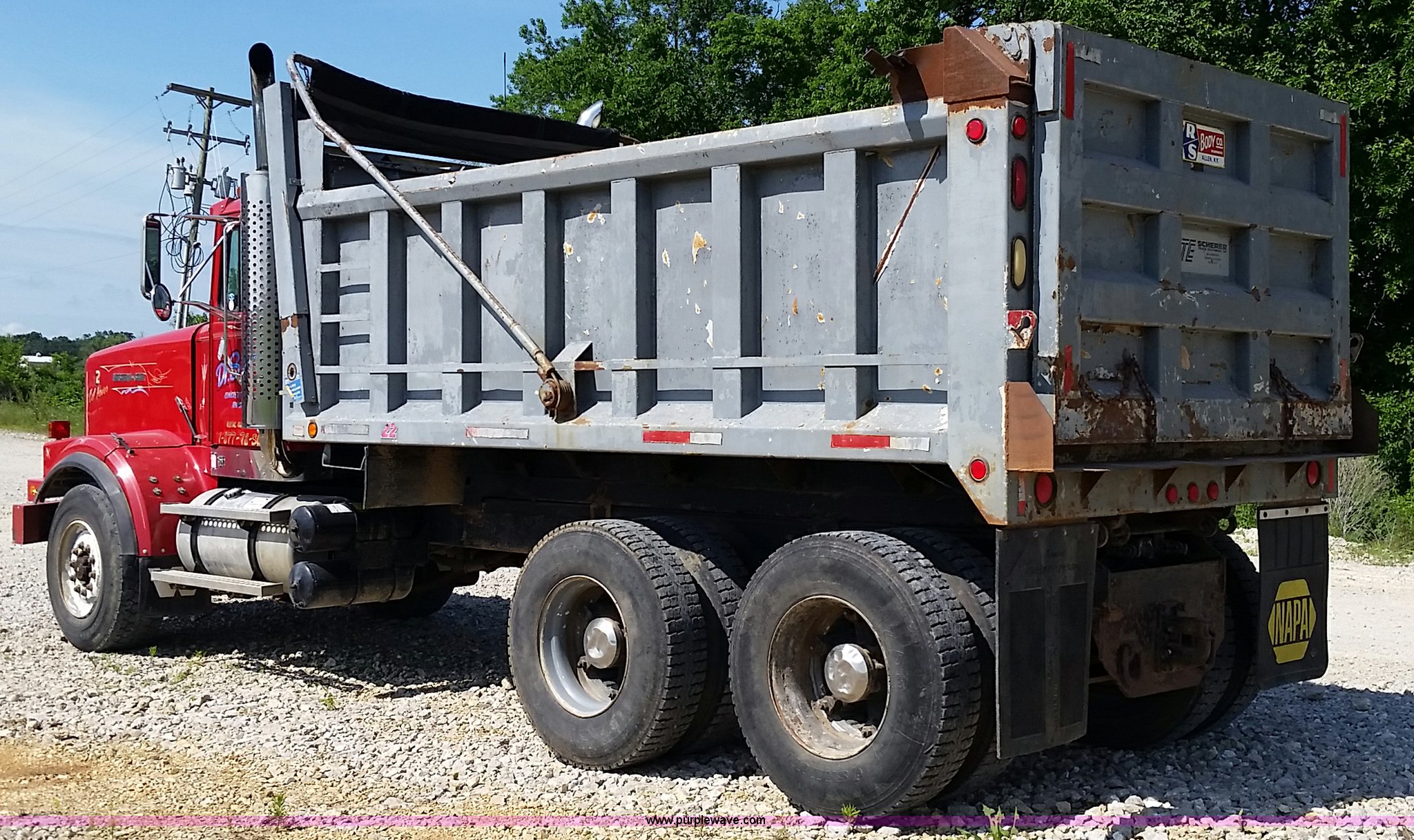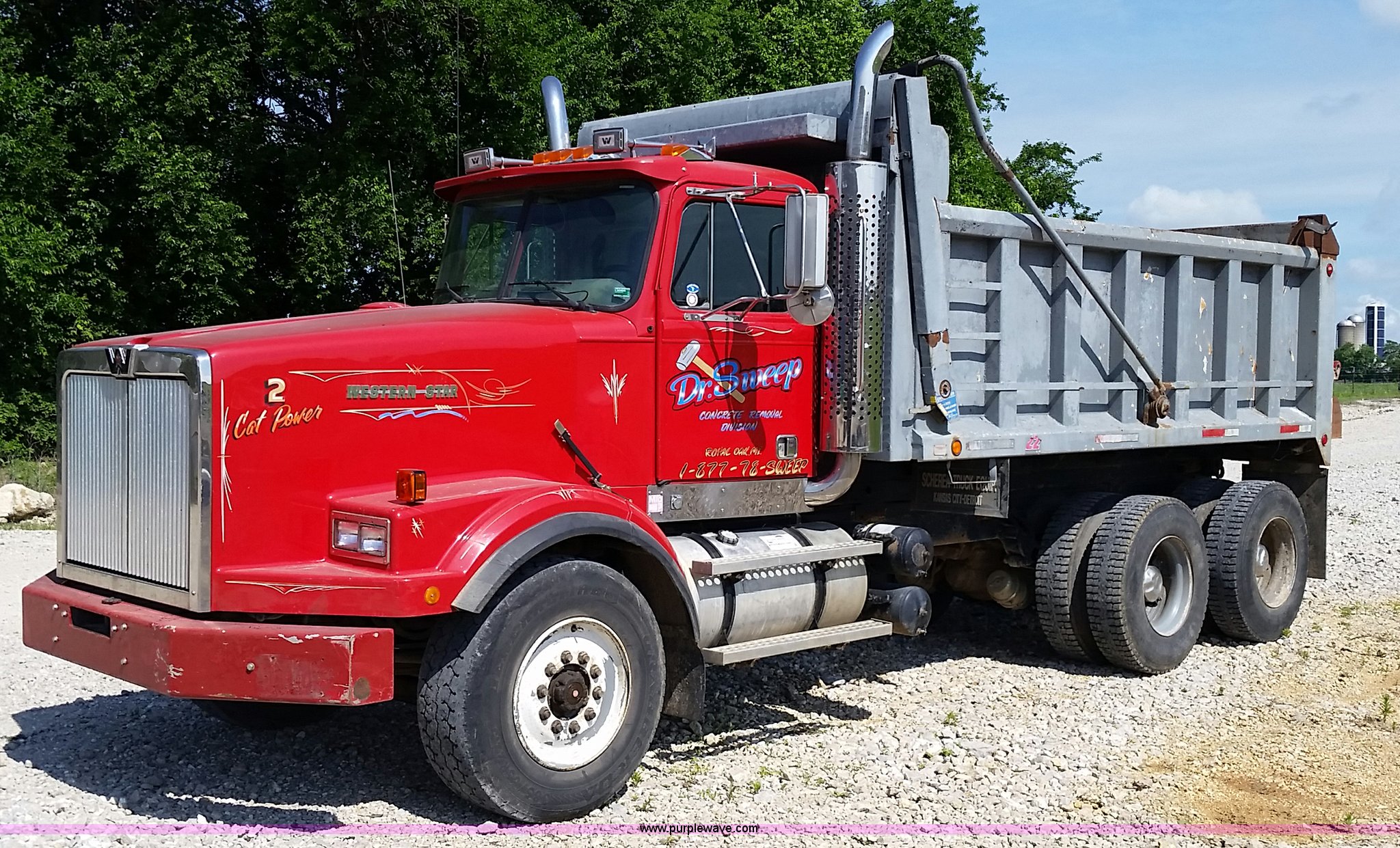 Purple Wave is selling a used Construction Dump Truck in Missouri. This item is a 1996 Western Star 49645 dump truck with the following: 210,980 miles on odometer, Caterpillar 3306 10.5L L6 turbo diesel engine, Eaton Fuller 13 speed manual transmission, AC and heat, AM/FM/CD, Air suspension seat, Air ride cab, PTO, R/S Body Co. 15089646G steel dump bed, 15'L x 8'W, 4' side height, Air operated end gate, Serial 95030448, Air suspension, Air brakes, 385/65R22.5 front tires, 11R22.5 rear tires, GVWR 56,000 lbs, Maintenance records available upon request