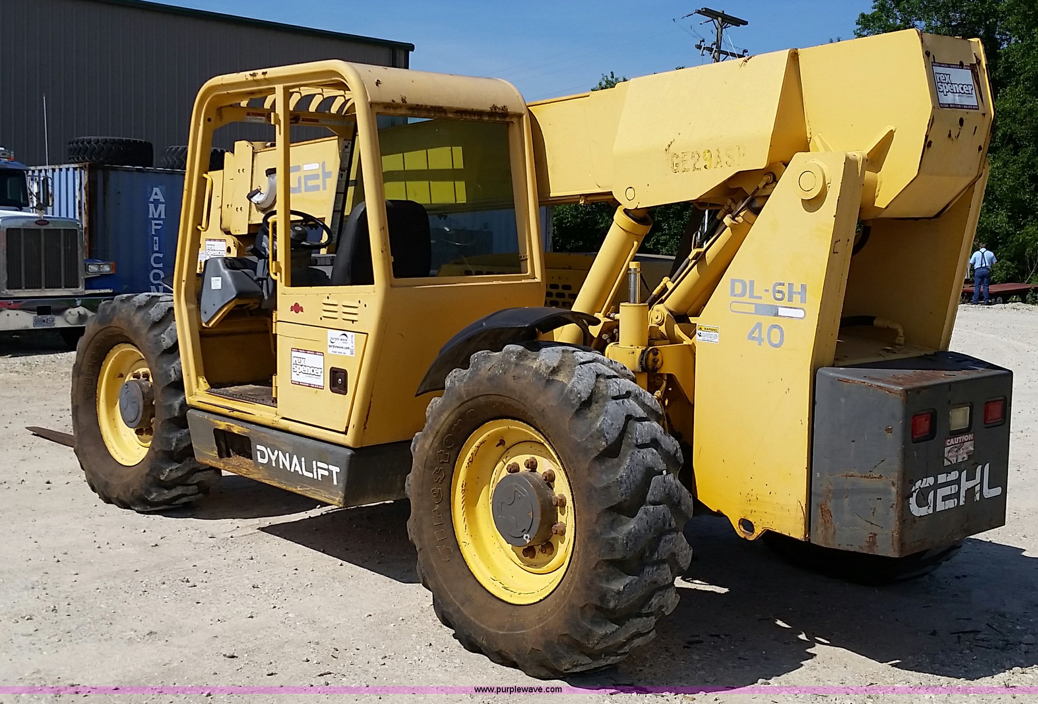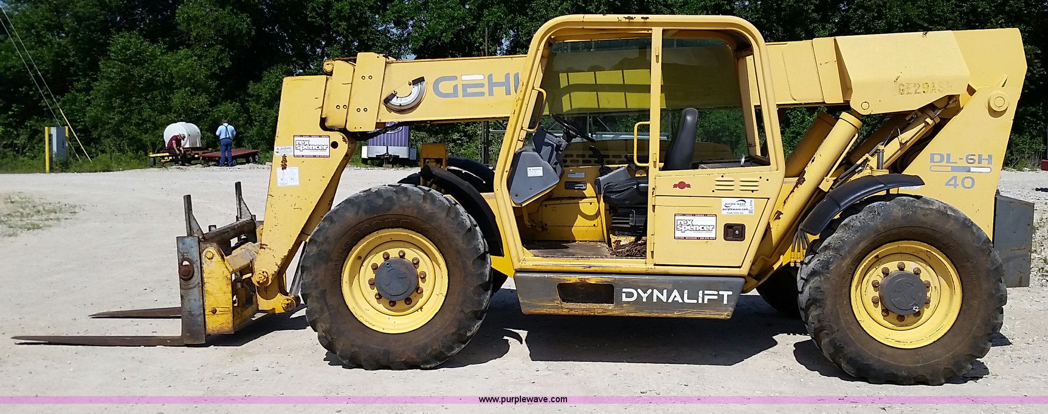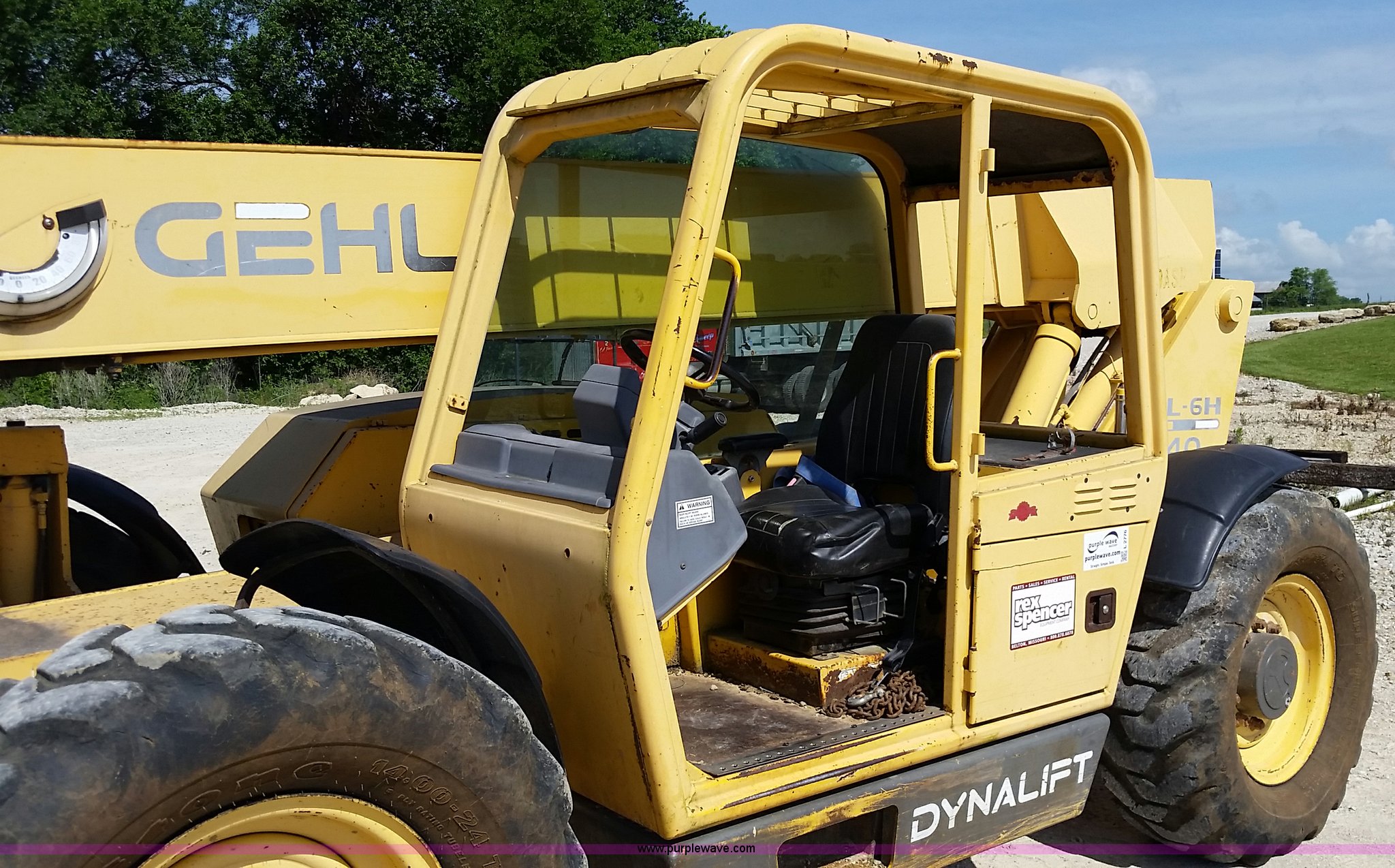Purple Wave is selling a used Telehandler in Missouri. This item is a 1999 Gehl DL6H40 telehandler with the following: 4,731 hours on meter, John Deere Powertech 4.5L four cylinder diesel engine, Shuttle shift transmission, 4F-4R gears, Four wheel drive, Canopy, Crab steer, Four wheel steer, 6,000 lbs maximum lift capacity, 4'L x 4"W forks, Tilt carriage, 14-24 tires, 23,050 lbs. base operating weight, Maintenance records available upon request, Serial 6H40JQ0720429