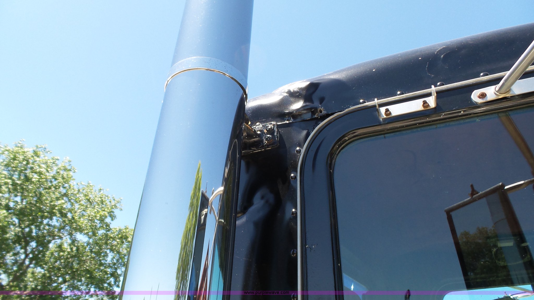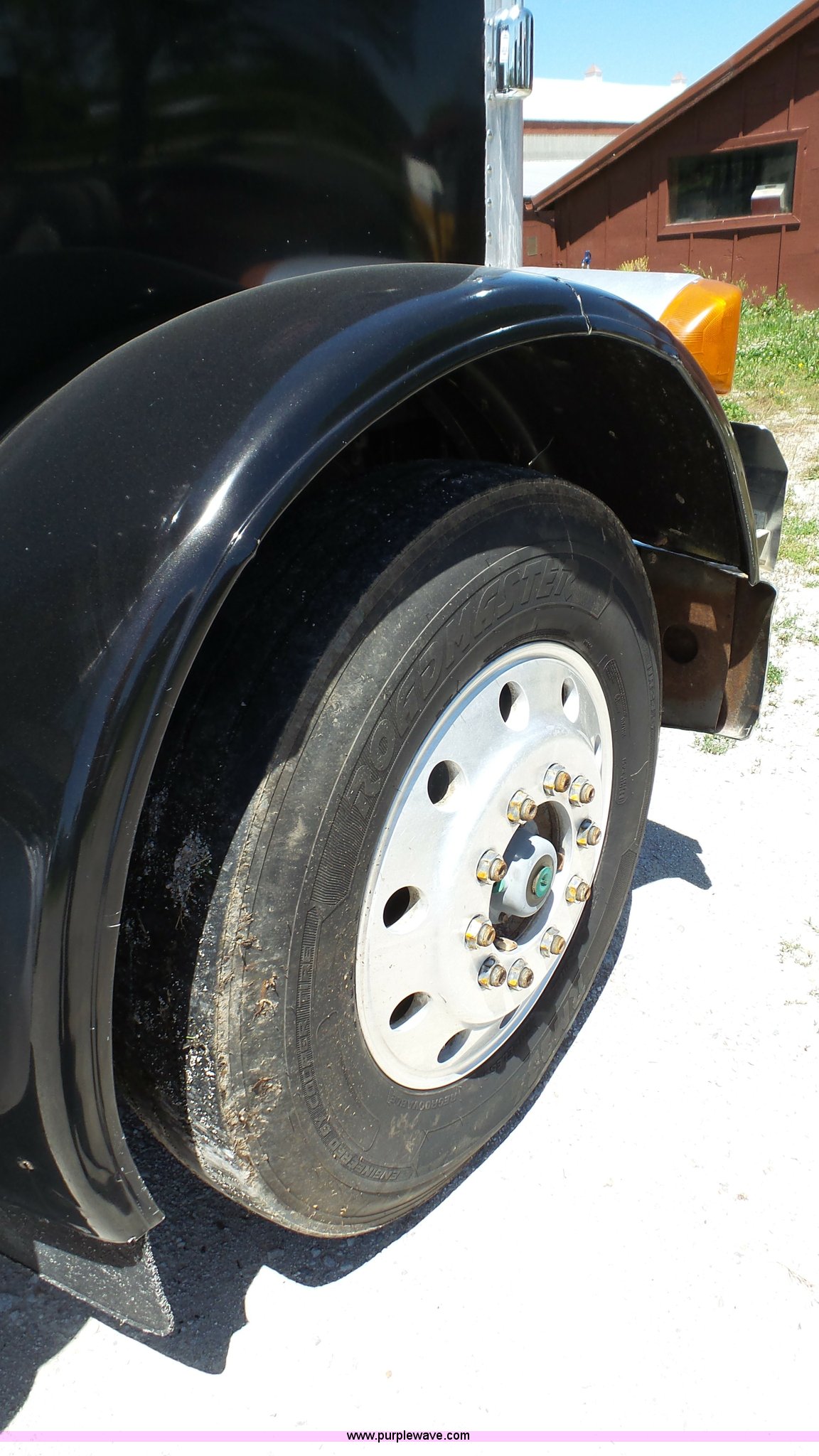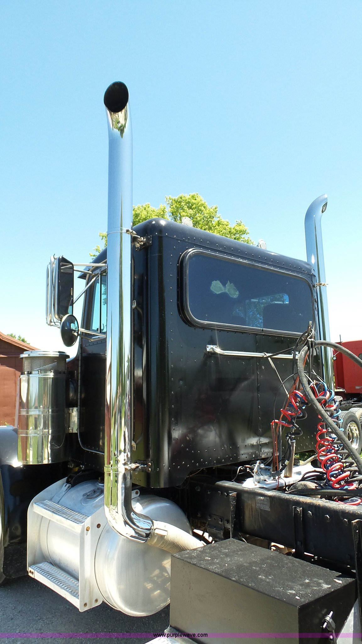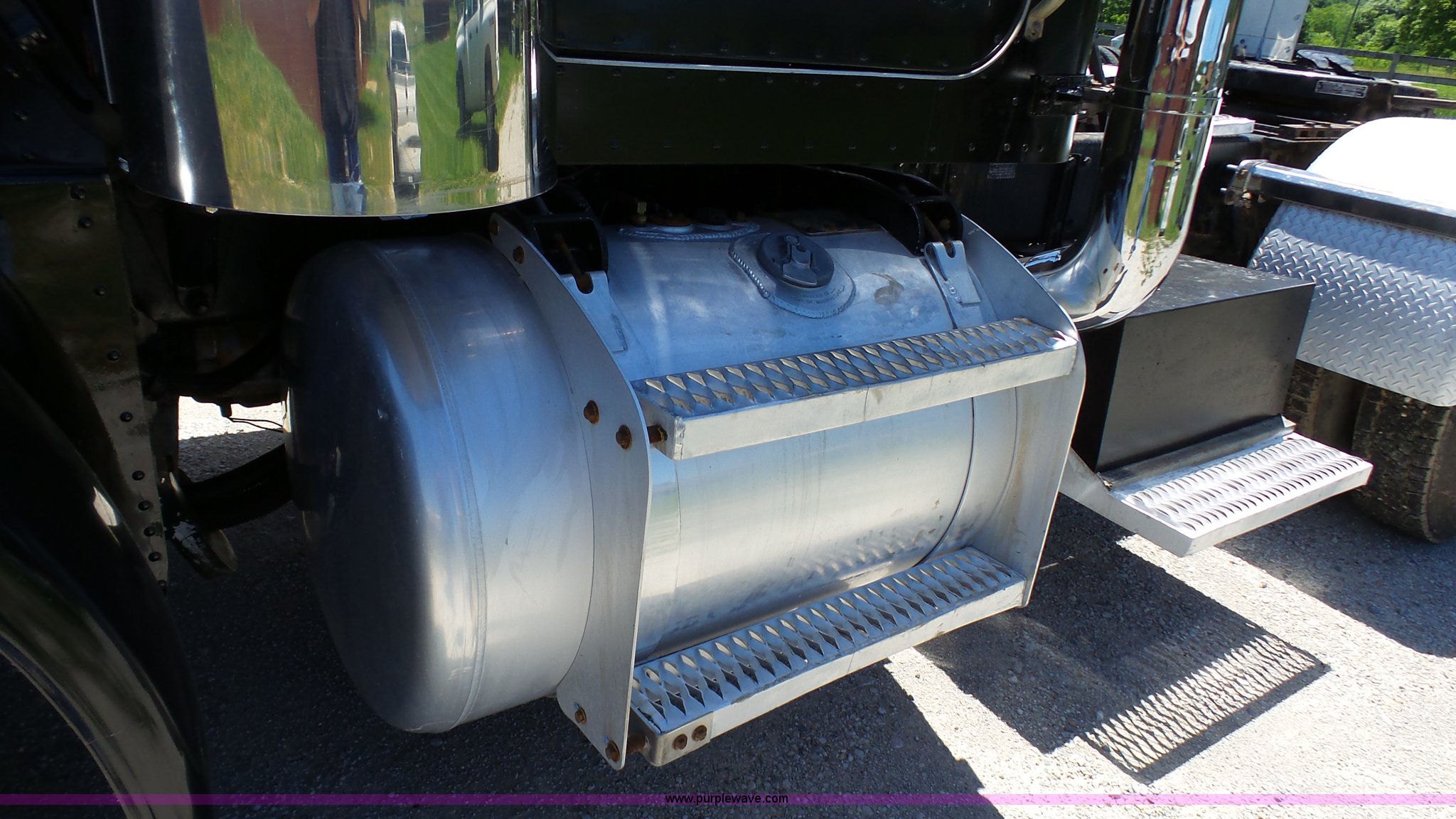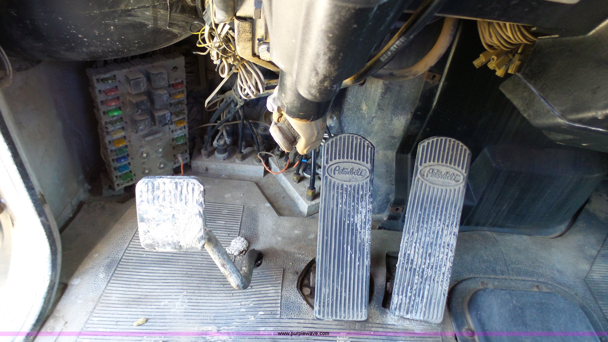 Purple Wave is selling a used Truck Tractor in Kansas. This item is a 1993 Peterbilt 379 semi truck with the following: 689,463 miles on odometer, Caterpillar 3406 14.6L L6 turbo diesel engine, 425 HP, Eaton Fuller 13 speed manual transmission, Tandem axle, Inter-axle differential lock, AC and heat, Tilt, AM, Air suspension seat, Exterior visor, PTO, Wet kit, Dump valves, Aluminum deck plate, Sliding fifth wheel plate, Dual exhaust stacks, Dual fuel tanks, Aluminum half fenders, 3:70 gear ratio, Air suspension, Air brakes, 11R24.5 tires, GVWR 50,000 lbs, FAWR 12,000 lbs, IAWR 19,000 lbs, RAWR 19,000 lbs, Rear glass cracked