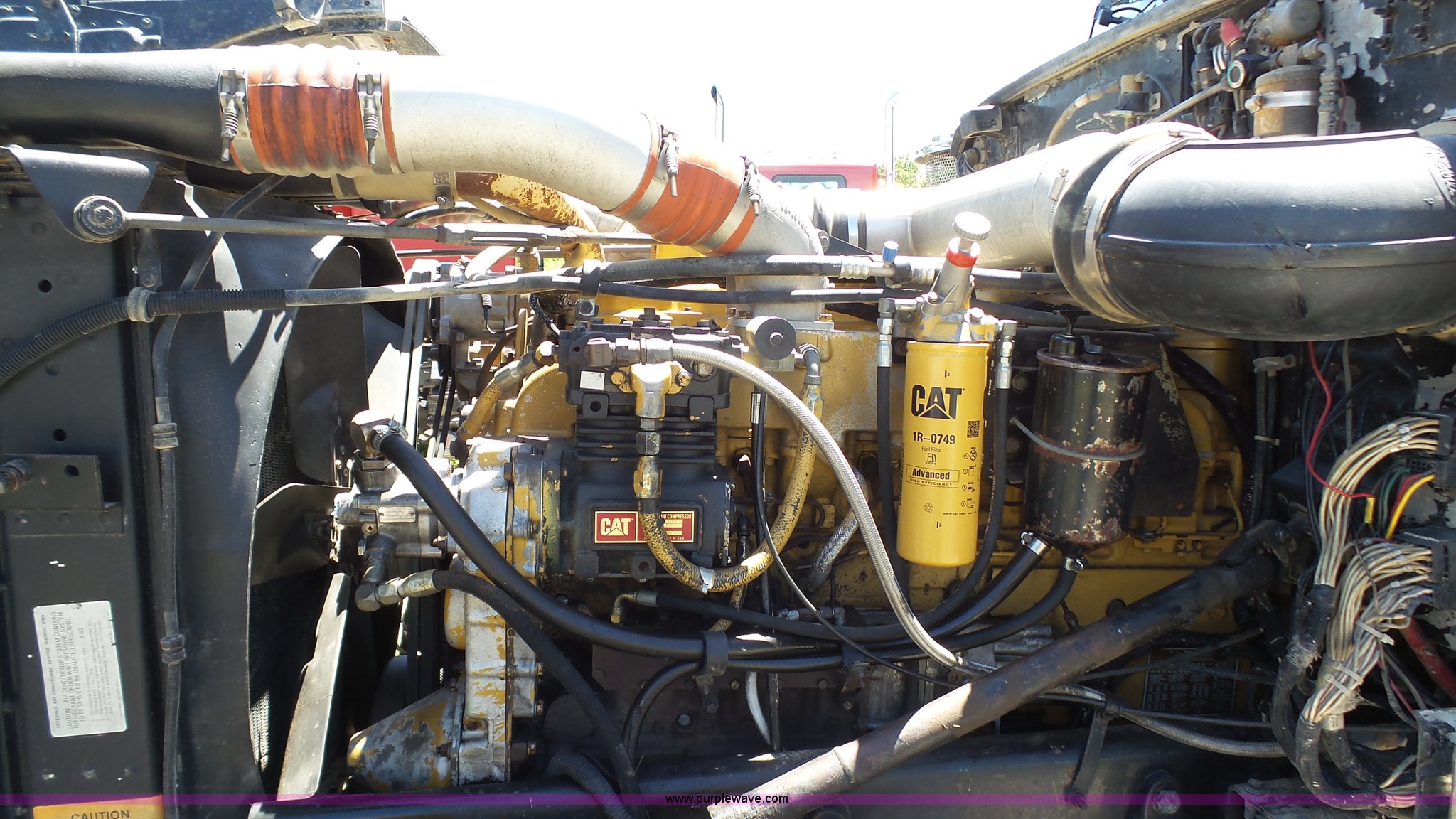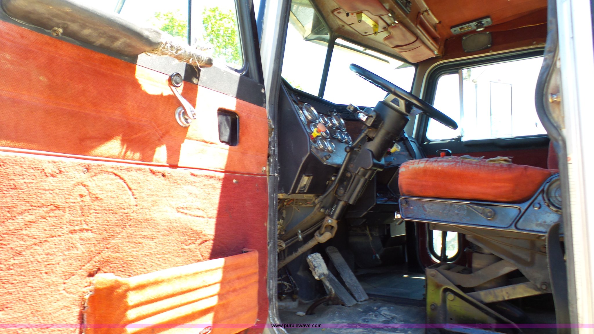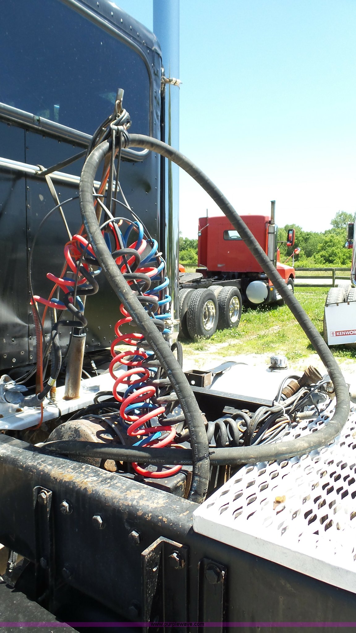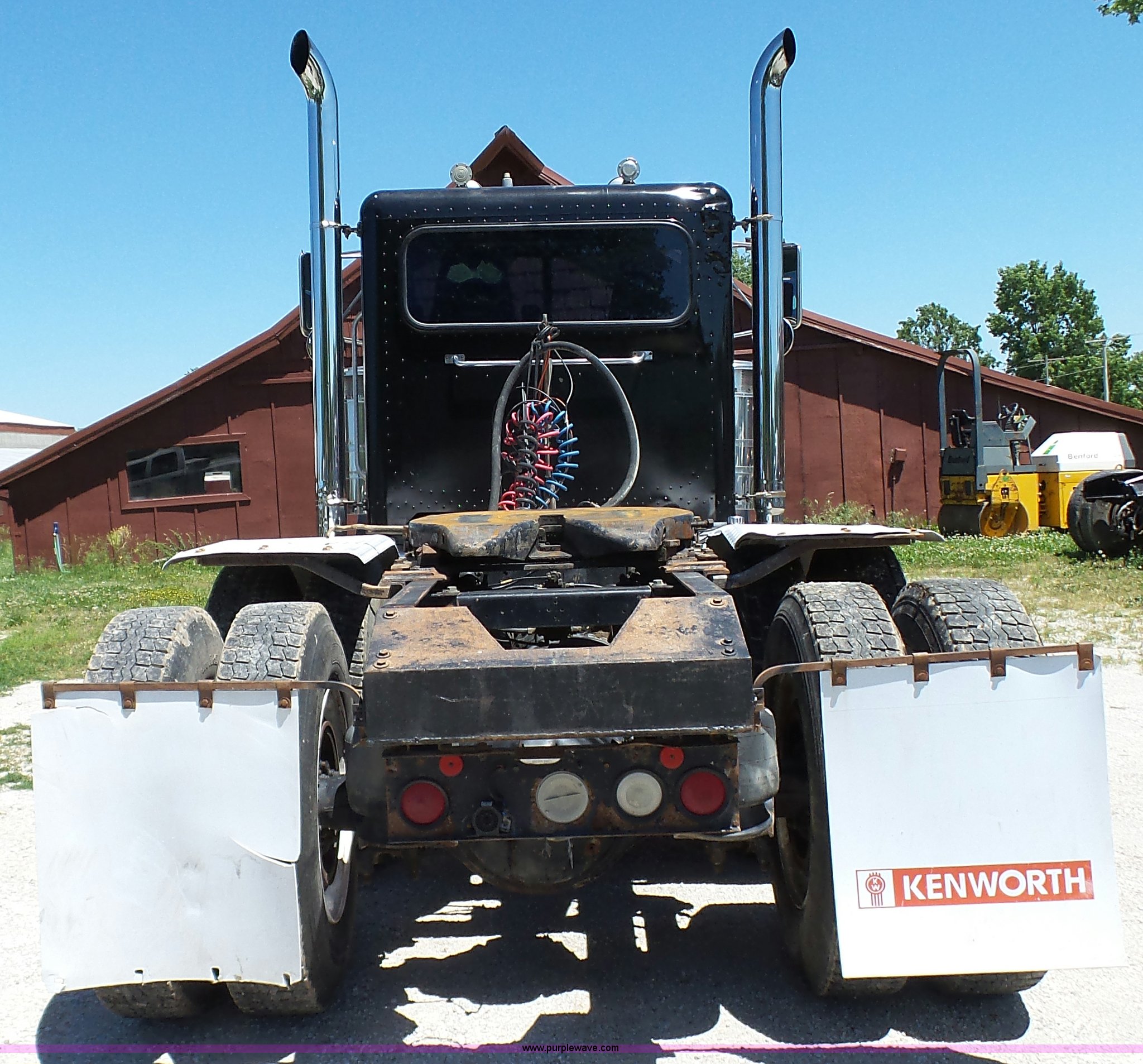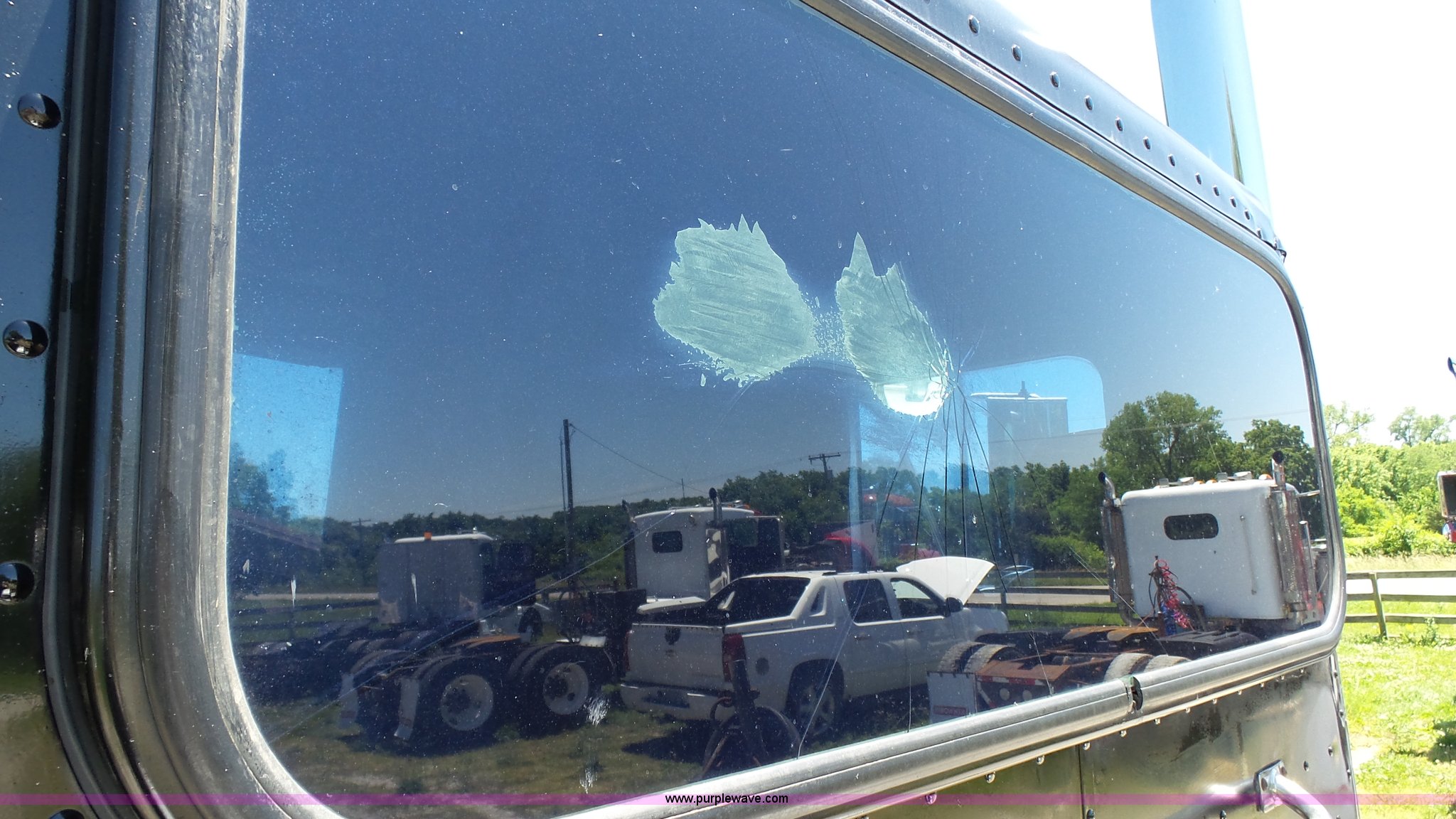 Purple Wave is selling a used Truck Tractor in Kansas. This item is a 1993 Peterbilt 379 semi truck with the following: 689,463 miles on odometer, Caterpillar 3406 14.6L L6 turbo diesel engine, 425 HP, Eaton Fuller 13 speed manual transmission, Tandem axle, Inter-axle differential lock, AC and heat, Tilt, AM, Air suspension seat, Exterior visor, PTO, Wet kit, Dump valves, Aluminum deck plate, Sliding fifth wheel plate, Dual exhaust stacks, Dual fuel tanks, Aluminum half fenders, 3:70 gear ratio, Air suspension, Air brakes, 11R24.5 tires, GVWR 50,000 lbs, FAWR 12,000 lbs, IAWR 19,000 lbs, RAWR 19,000 lbs, Rear glass cracked