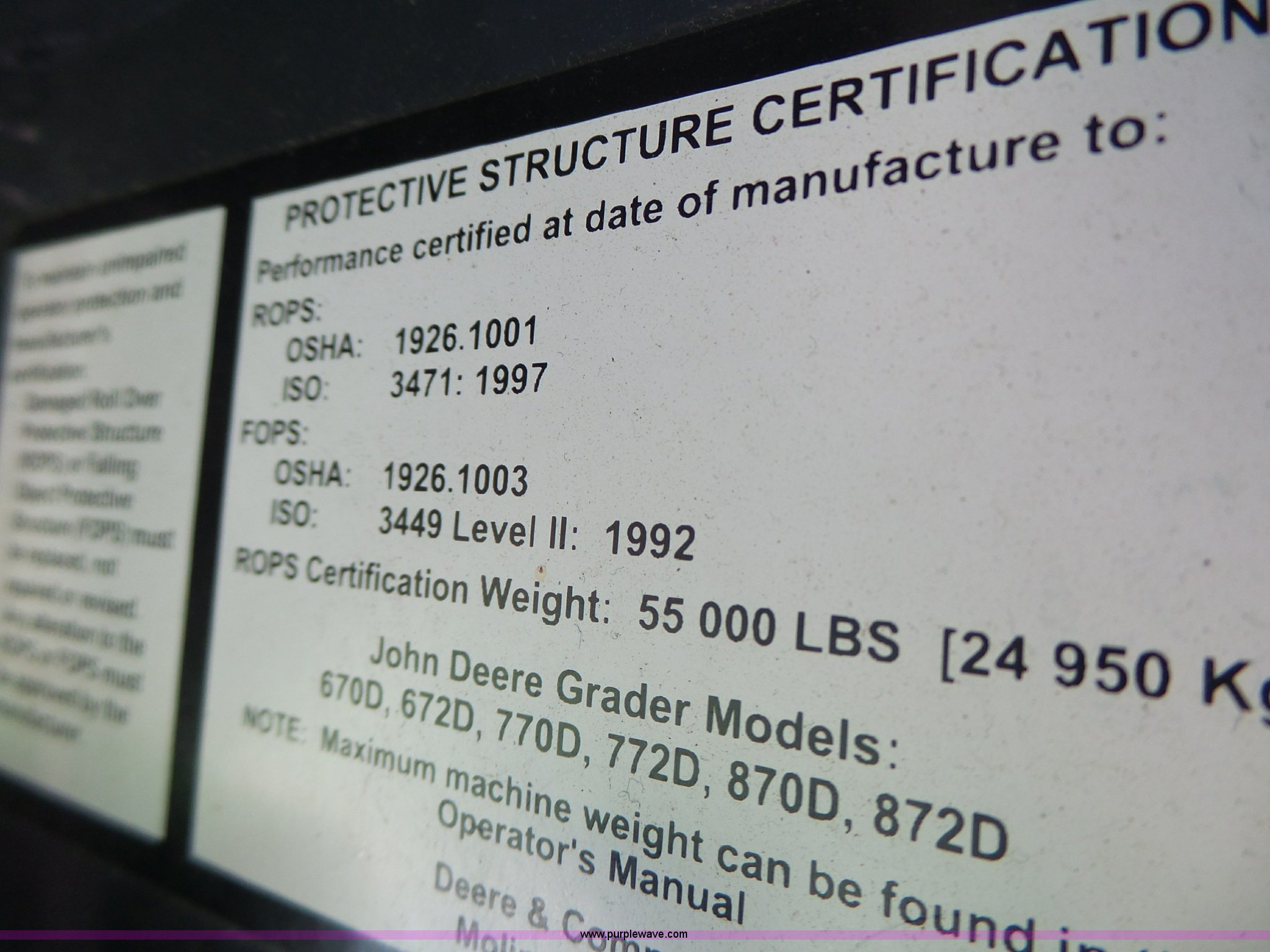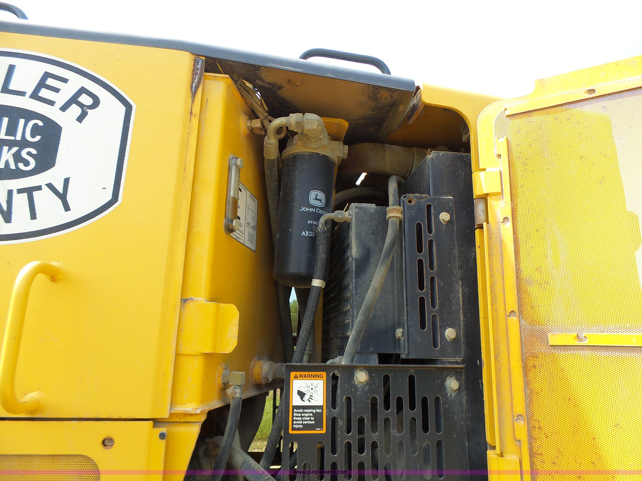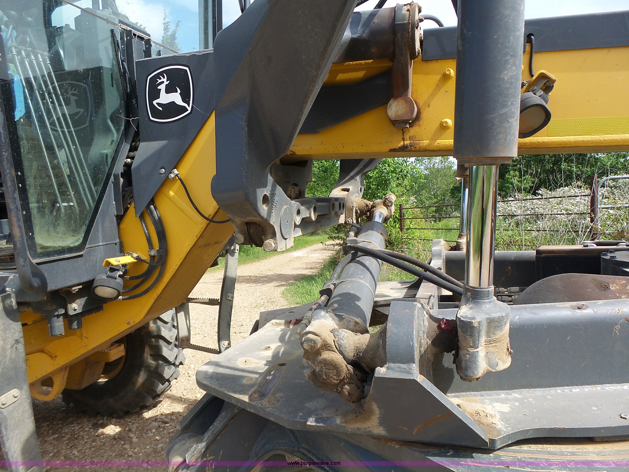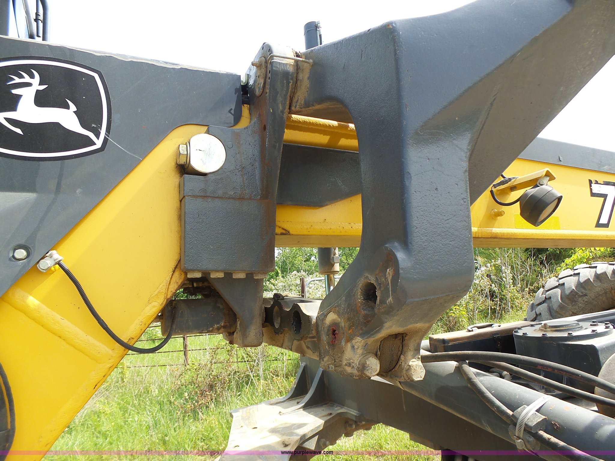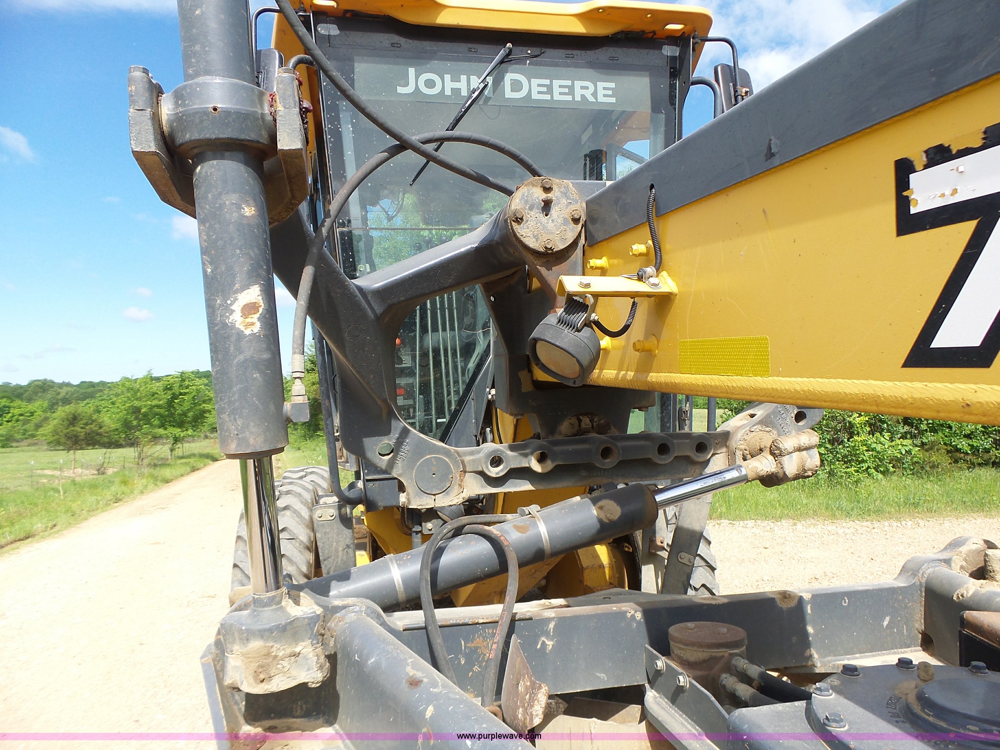 Purple Wave is selling a used Motor Grader in Missouri. This item is a 2005 John Deere 770D motor grader with the following: 8,546 hours on meter, Hours may vary, still in use, John Deere six cylinder turbo diesel engine, Re-manufactured engine installed at 6,000 hours, Serial SE6081H390424, 8F-8R gears, Differential lock, Enclosed cab, AC and heat, Suspension seat, Front work lights, 14'W moldboard, Tip control, Side shift, Front mounted scarifier, 14.00-24 tires, 32,670 lbs. base operating weight, Serial DW770DX597779