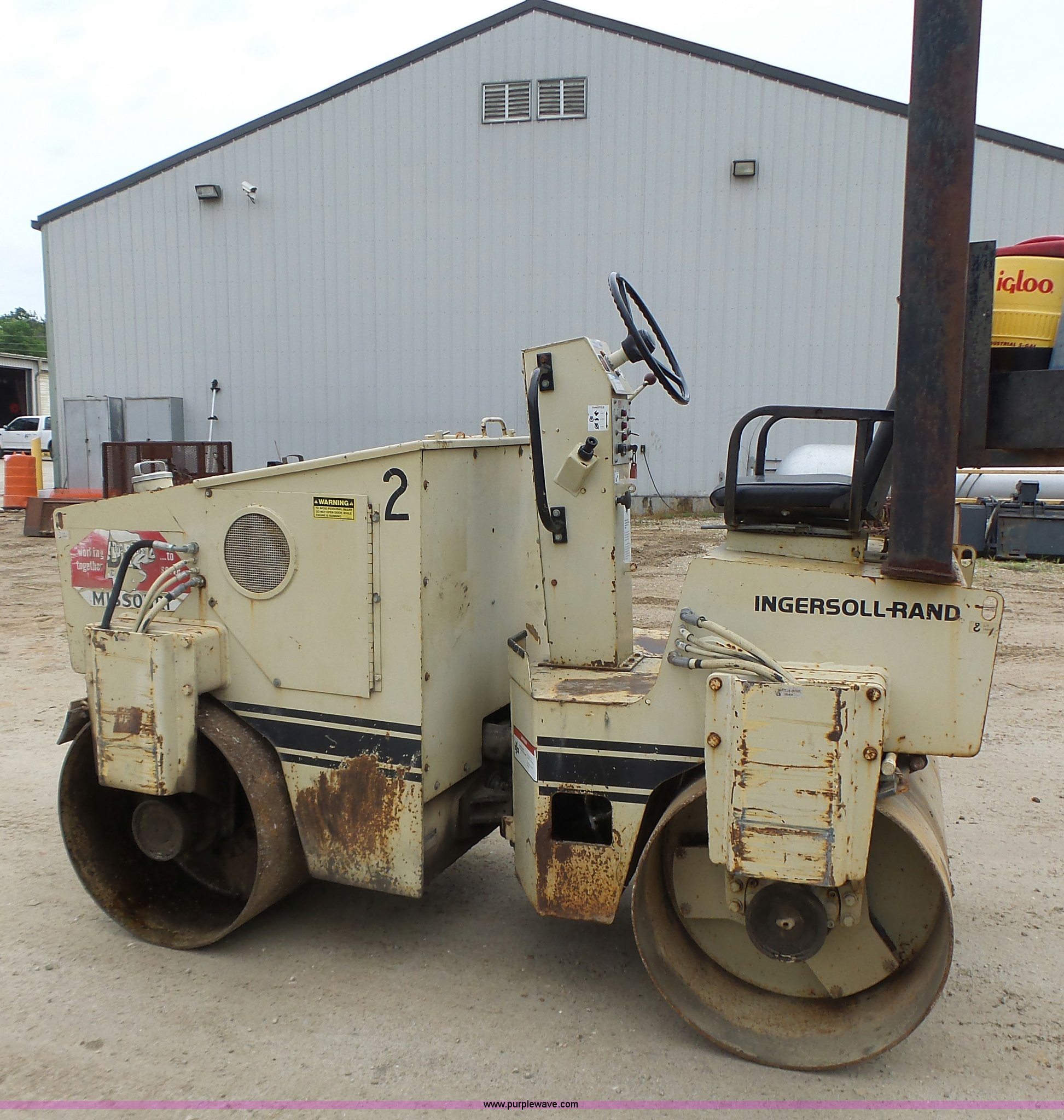 Purple Wave is selling a used Double Drum Roller Compactor in Missouri. This item is a Ingersoll Rand DD25 double drum vibratory roller with the following: 2,793 hours on meter, Deutz two cylinder diesel engine, Hydrostatic transmission, Suspension seat, 48"W x 48" diameter smooth drums, Double vibratory system, Front and rear drum scrapers, 72" buckets, Serial 64875