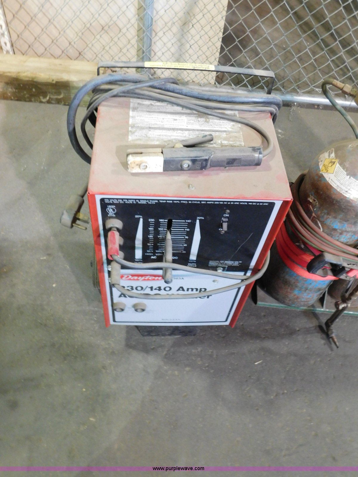 Purple Wave is selling a used Welder (Manual) in Oklahoma. This item is a Dayton AC/DC welder with the following: 230/140 amp, Cutting torch and tanks, Cart