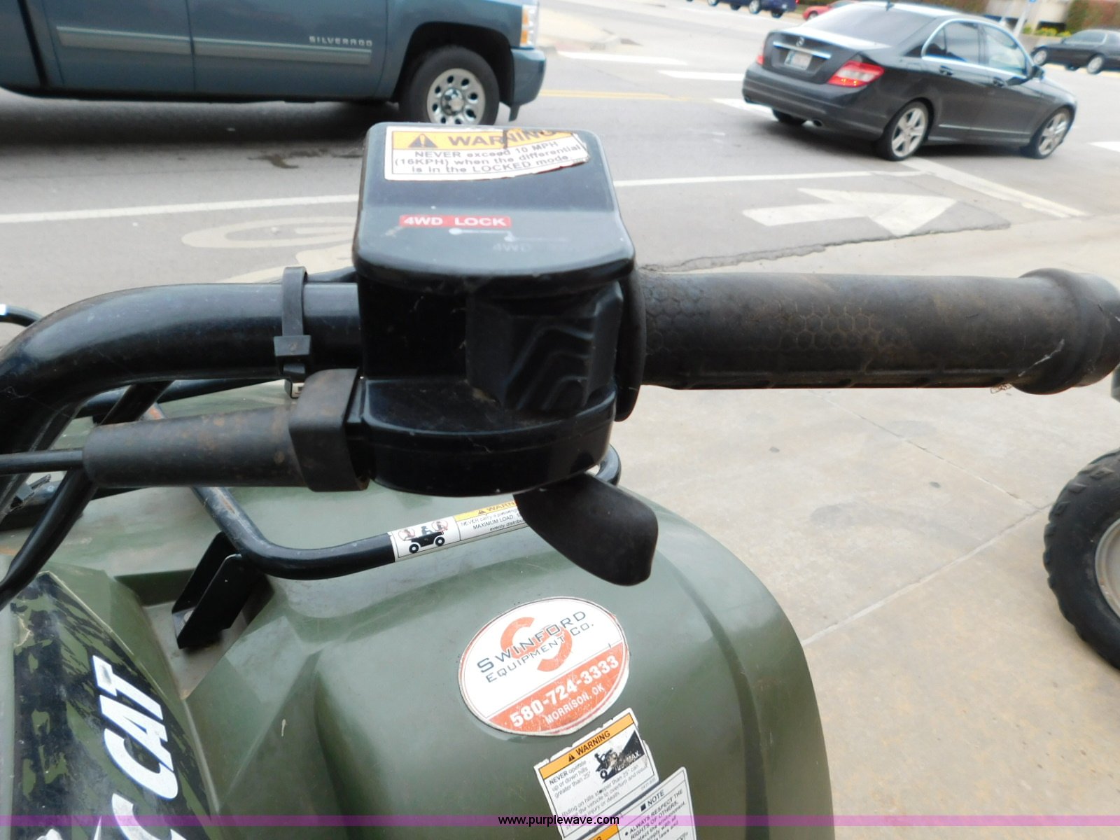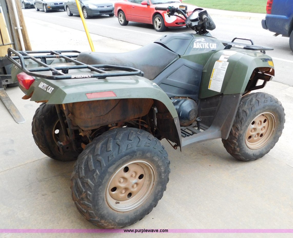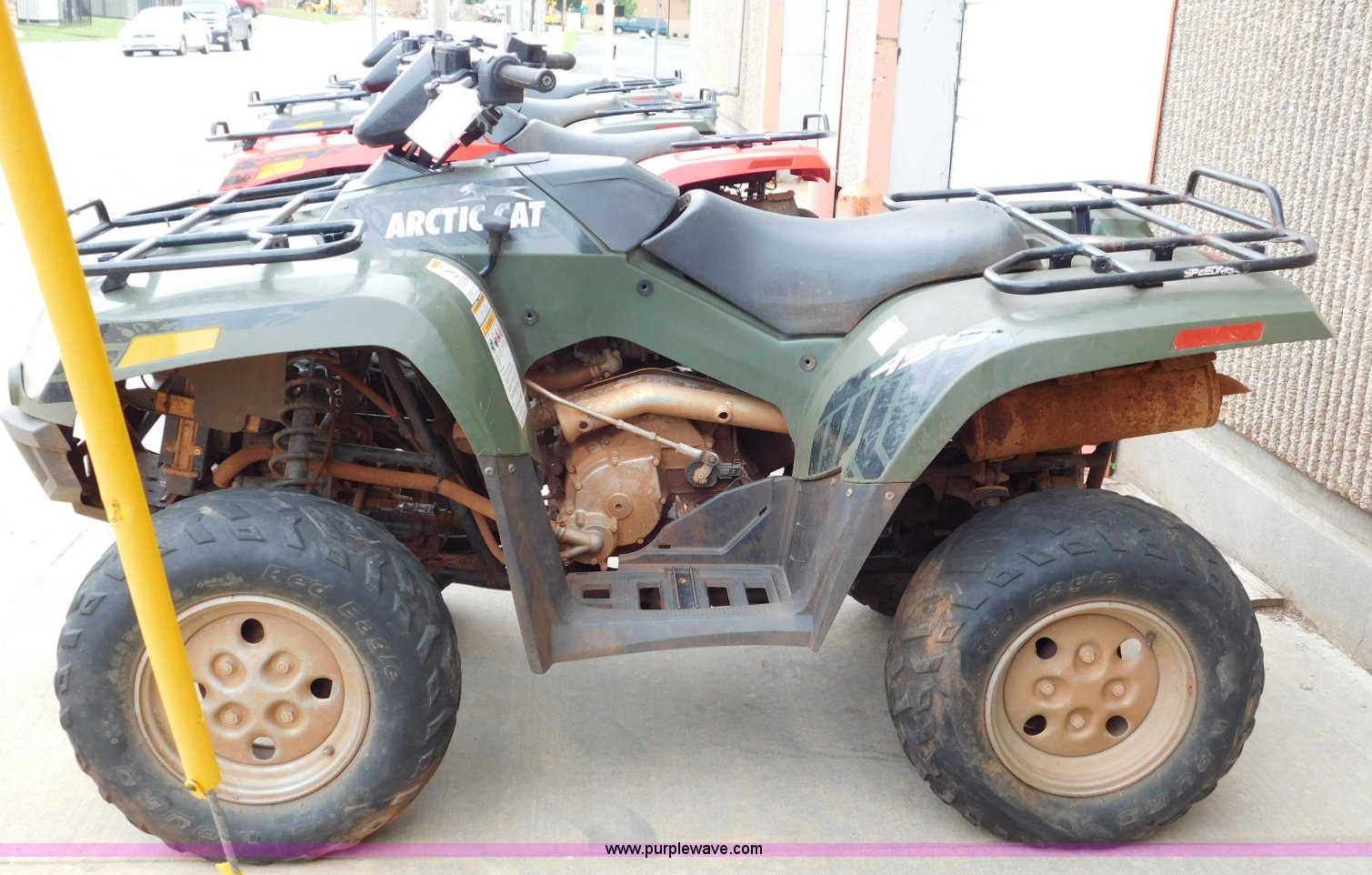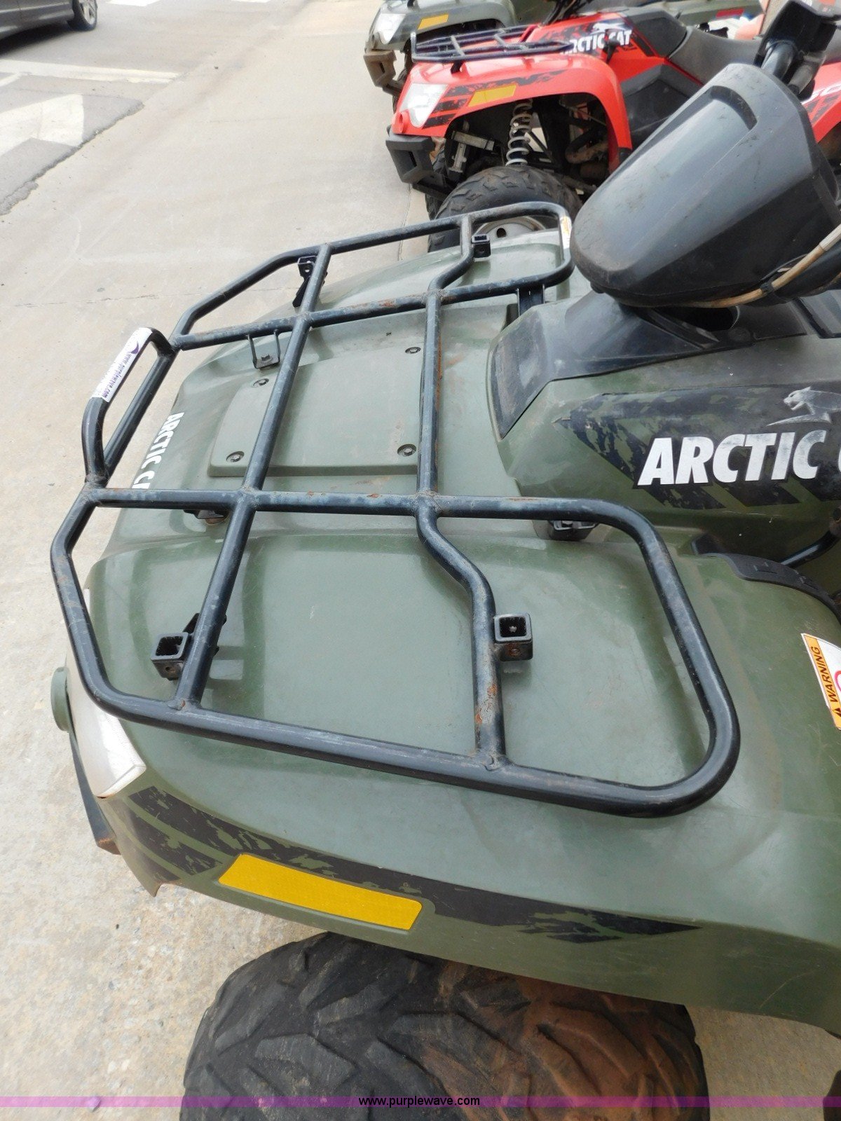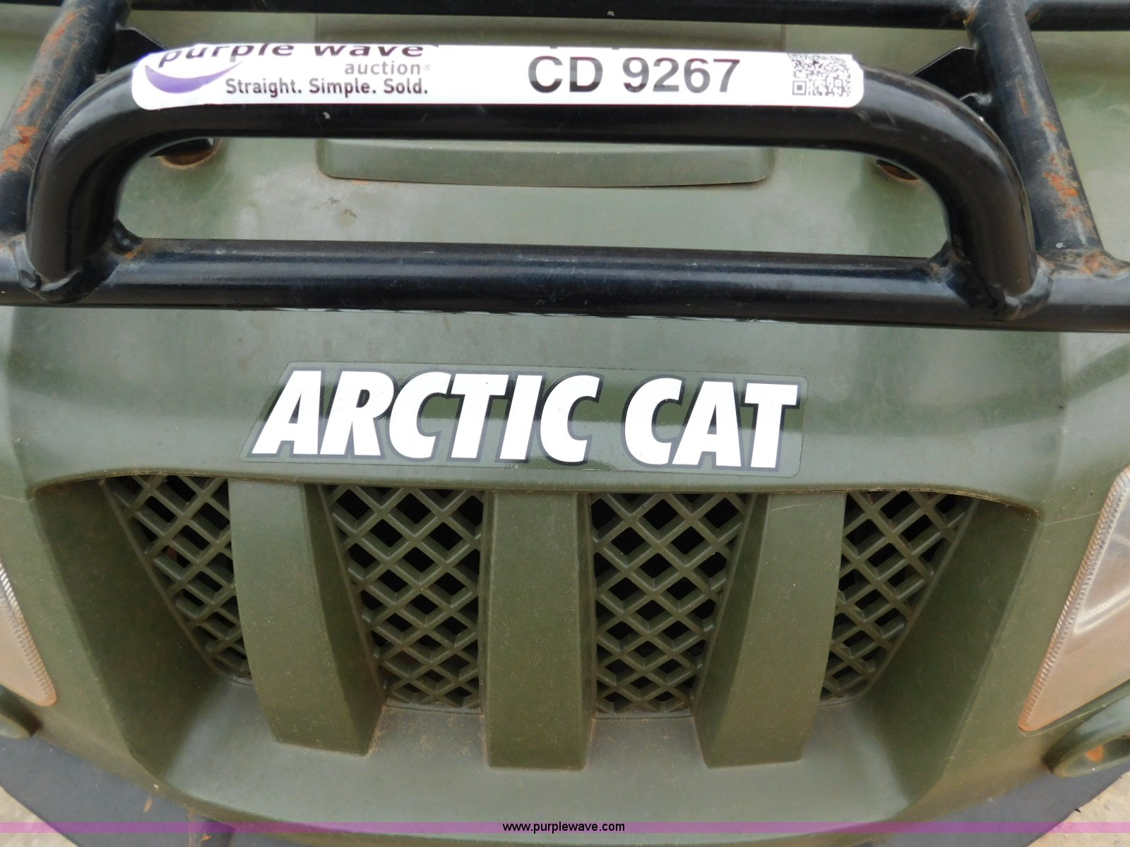 Purple Wave is selling a used ATV in Oklahoma. This item is a 2012 Arctic Cat 450 ATV with the following: Unknown hours on meter, 450cc single cylinder gas engine, Automatic transmission, Four wheel drive, 25x8-12 front tires, 25x10-12 rear tires, Unknown operating condition