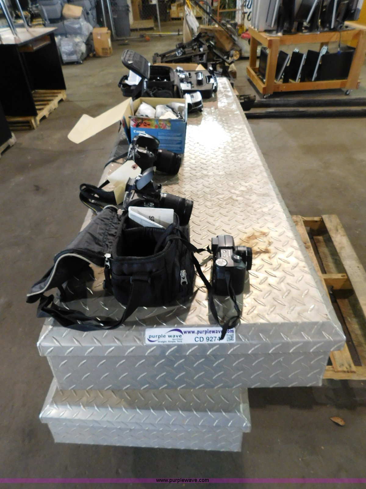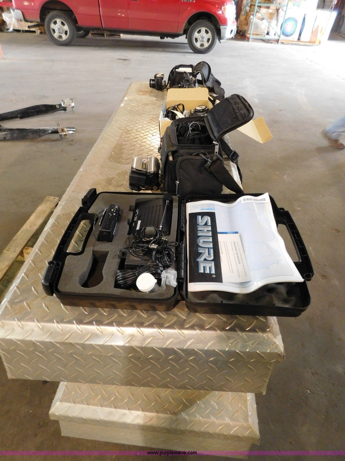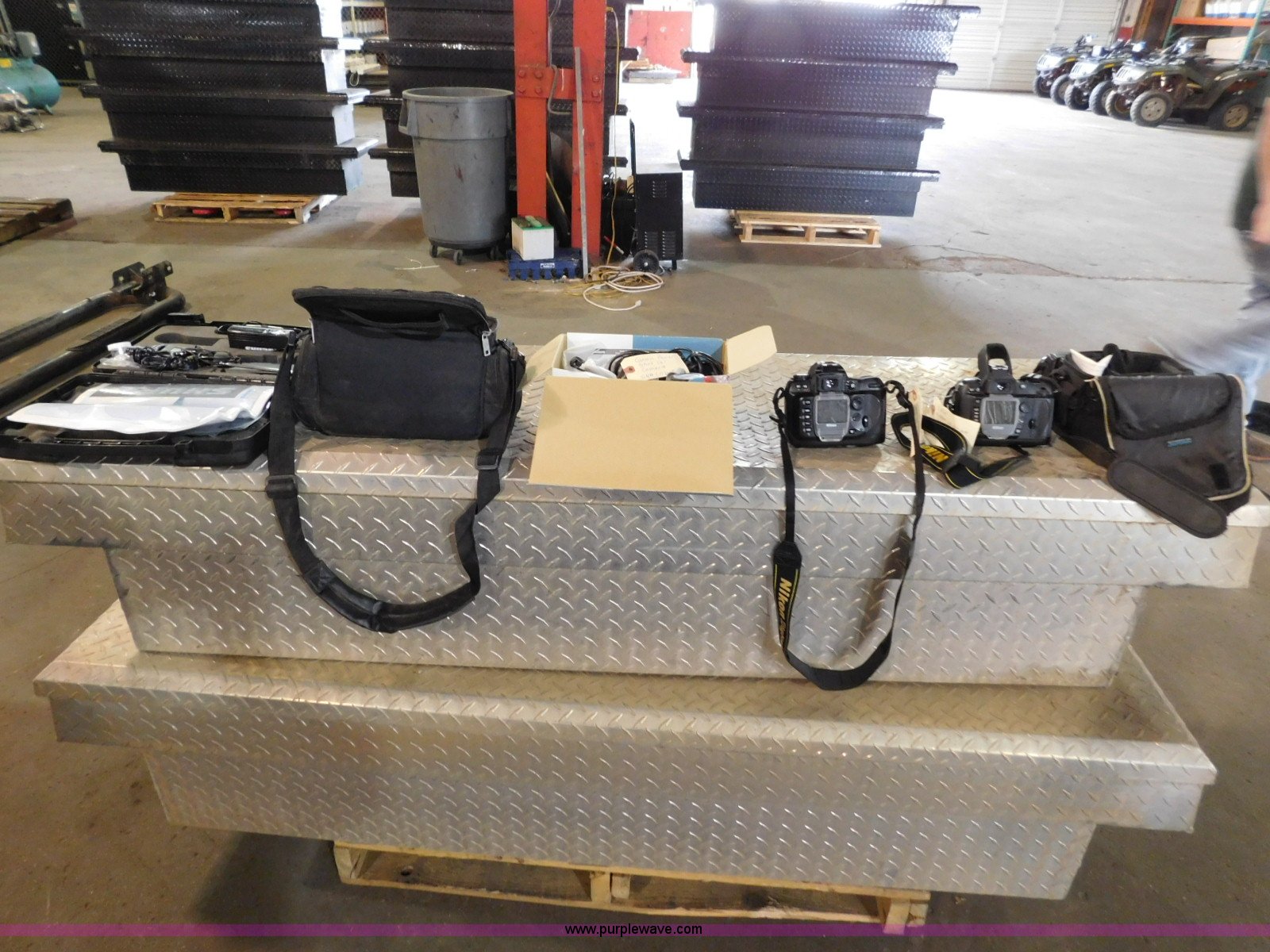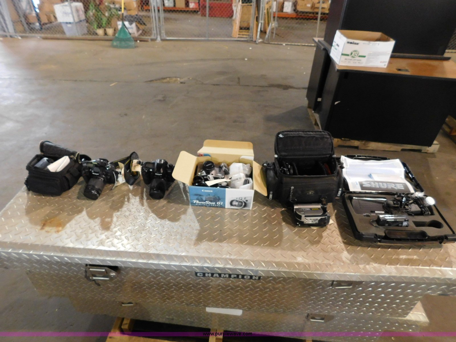 Purple Wave is selling a used Electronics in Oklahoma. This item is a Electronics with the following: Nikon D100 28x80mm lens, Nikon D70 28x80mm lens, Olympus SP500-UZ GMP camera, Sony DRC-DVD 610 camcorder, Canon Powershot G1 camera, Shure wireless microphone, Toolboxes are not included