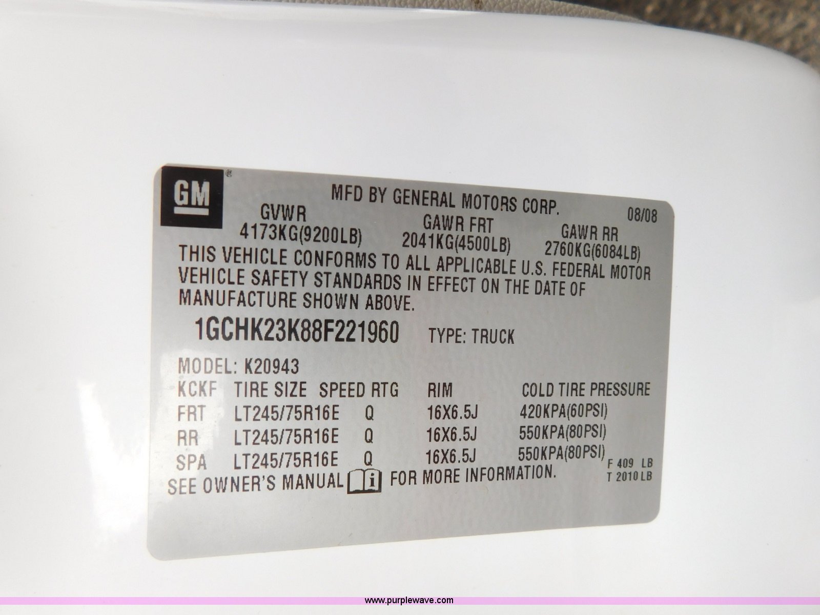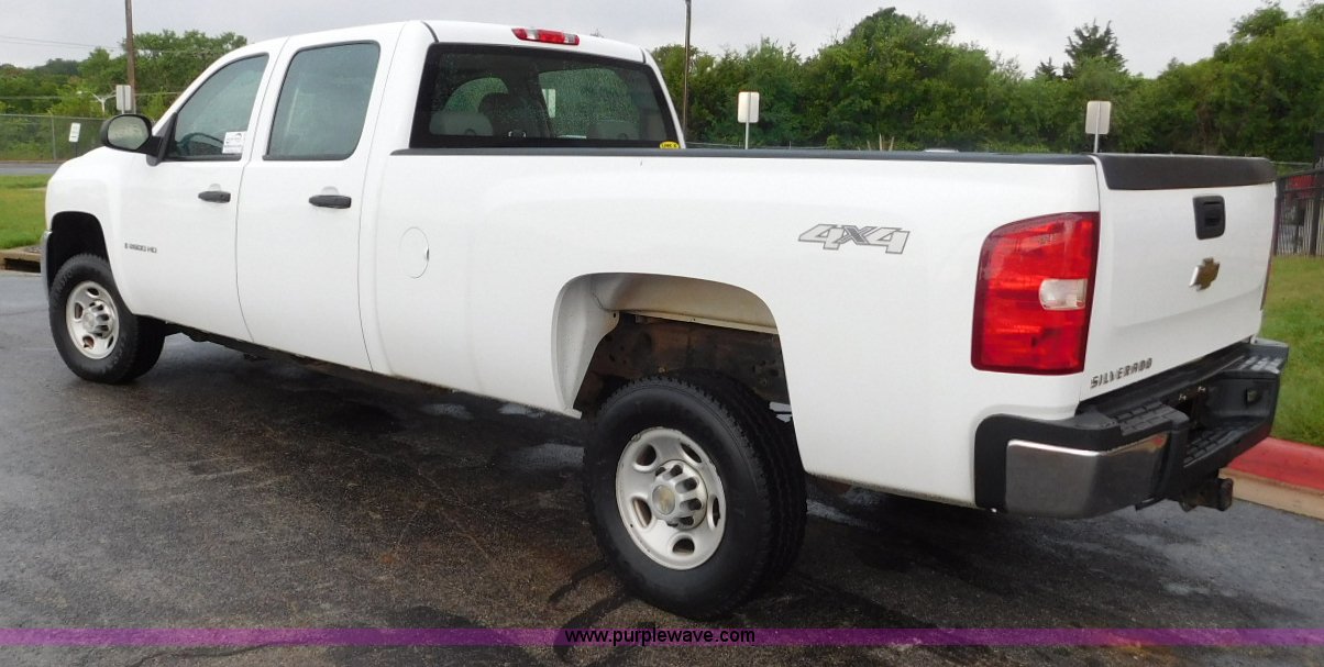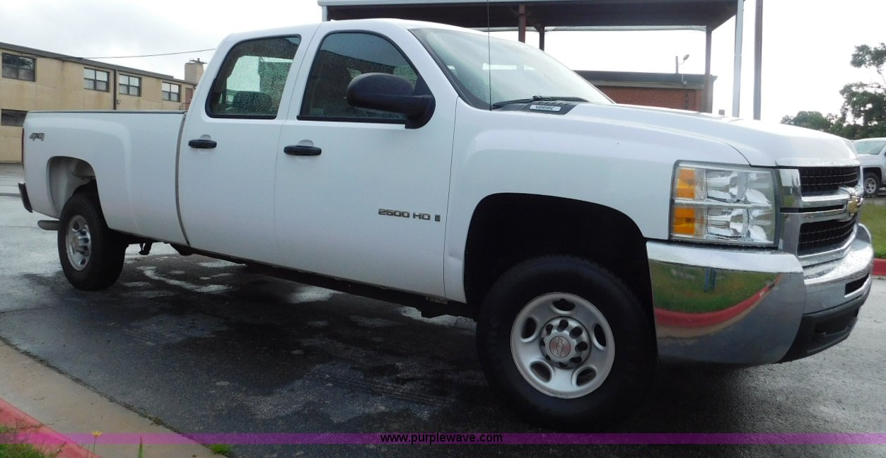 Purple Wave is selling a used 3/4 or 1 Ton Pickup or Van in Oklahoma. This item is a 2008 Chevrolet Silverado 2500HD Crew Cab pickup truck with the following: 101,829 miles on odometer, 6.0L V8 OHV 16V gas engine, Automatic transmission, Four wheel drive, AC and heat, Tilt, Cruise, AM/FM, Power windows, locks, and mirrors, Vinyl interior, Receiver hitch, 245/75R16 tires