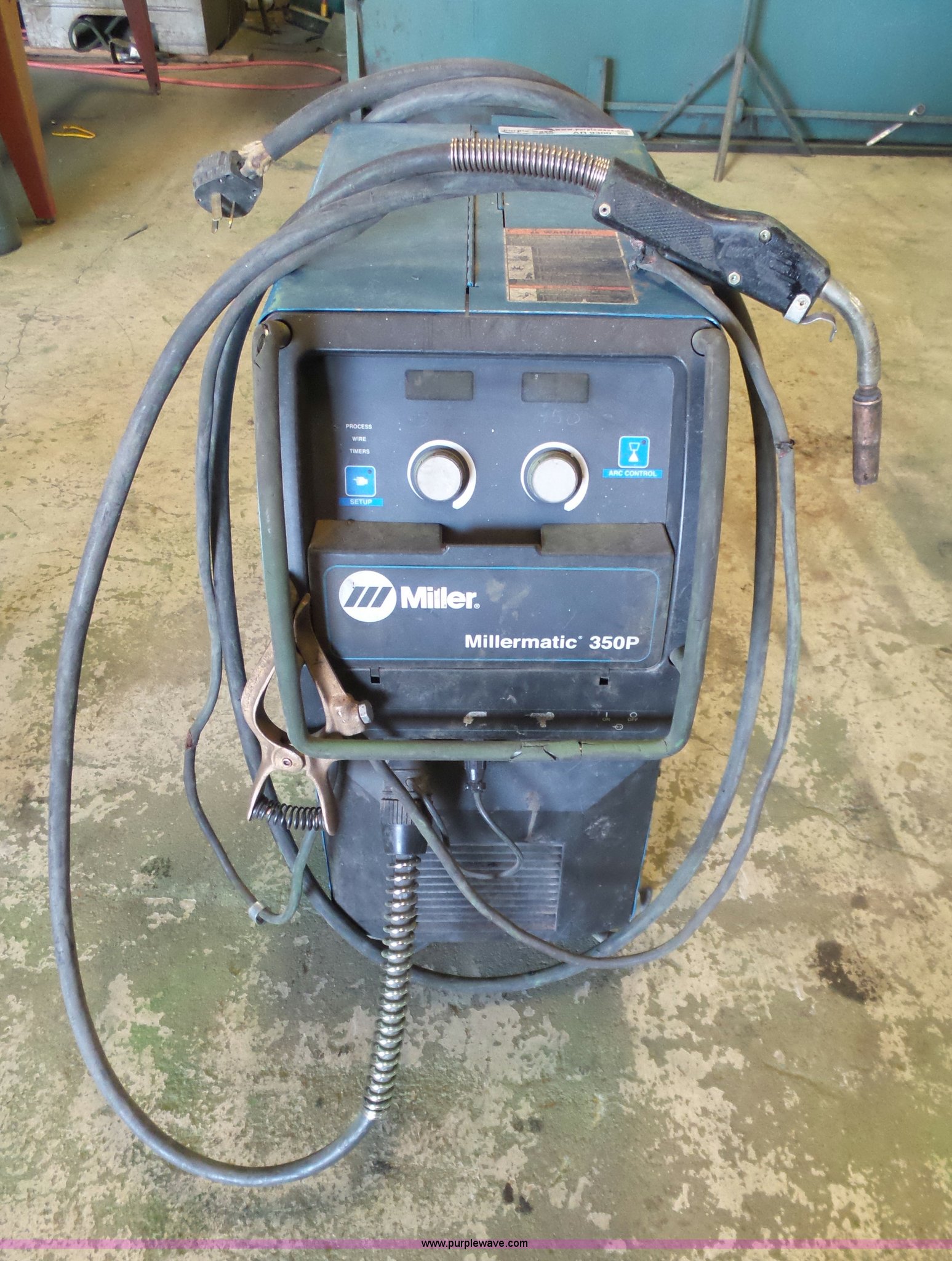 Purple Wave is selling a used Welder (Manual) in Kansas. This item is a Miller Millermatic 350P wire feed welder with the following: 230V, Leads, Gas regulator, No tank, Serial LF401185B