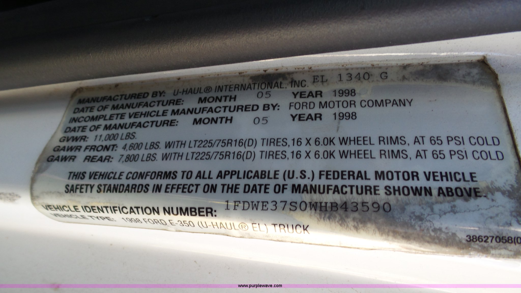 1998 Ford Econoline E350 box truck has sold in Topeka, Kansas for $1155. Item BW9770 sold on July 6th, 2016.