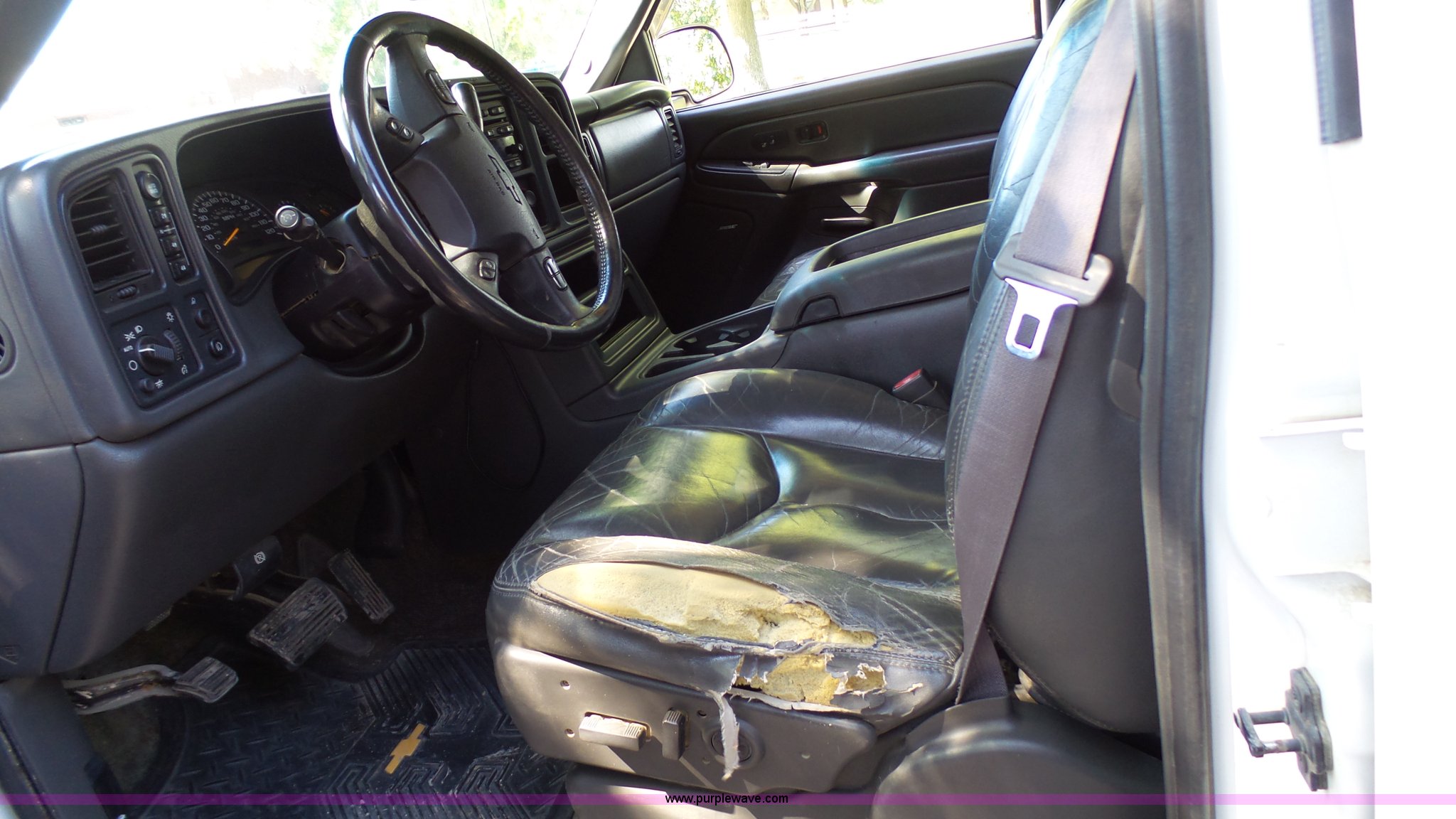 Purple Wave is selling a used 1/2 Ton Pickup or Van in Kansas. This item is a 2003 Chevrolet Avalanche 1500 pickup truck with the following: 291,426 miles on odometer, 5.3L V8 OHV 16V gas engine, Automatic transmission, Four wheel drive, AC and heat, Tilt, Cruise, AM/FM/CD, Power windows, locks, mirrors, and seat, Heated seats, Leather interior, Sunroof, Receiver hitch, 265/70R17 tires, Shifting issues, Dents, Scratches, Rust