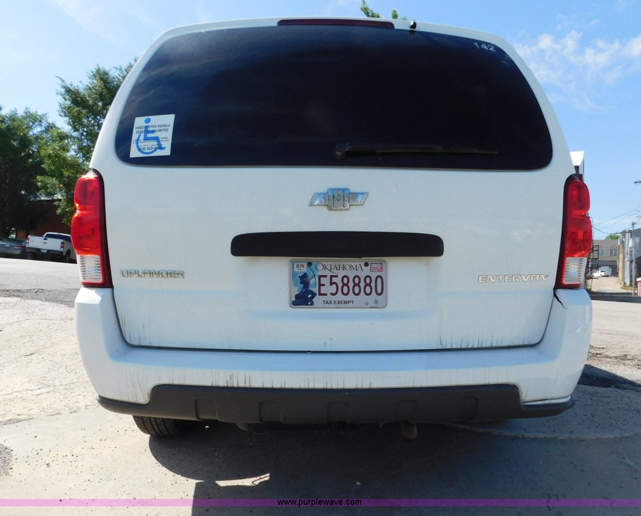 Purple Wave is selling a used Passenger Vehicle in Oklahoma. This item is a 2007 Chevrolet Uplander van with the following: 236,643 miles on odometer, 3.9L V6 DOHC 24V gas engine, Automatic transmission, AC and heat, Cruise, AM/FM/CD, Power windows, locks, and mirrors, Cloth interior, 225/60R17 tires, Unit# 142
