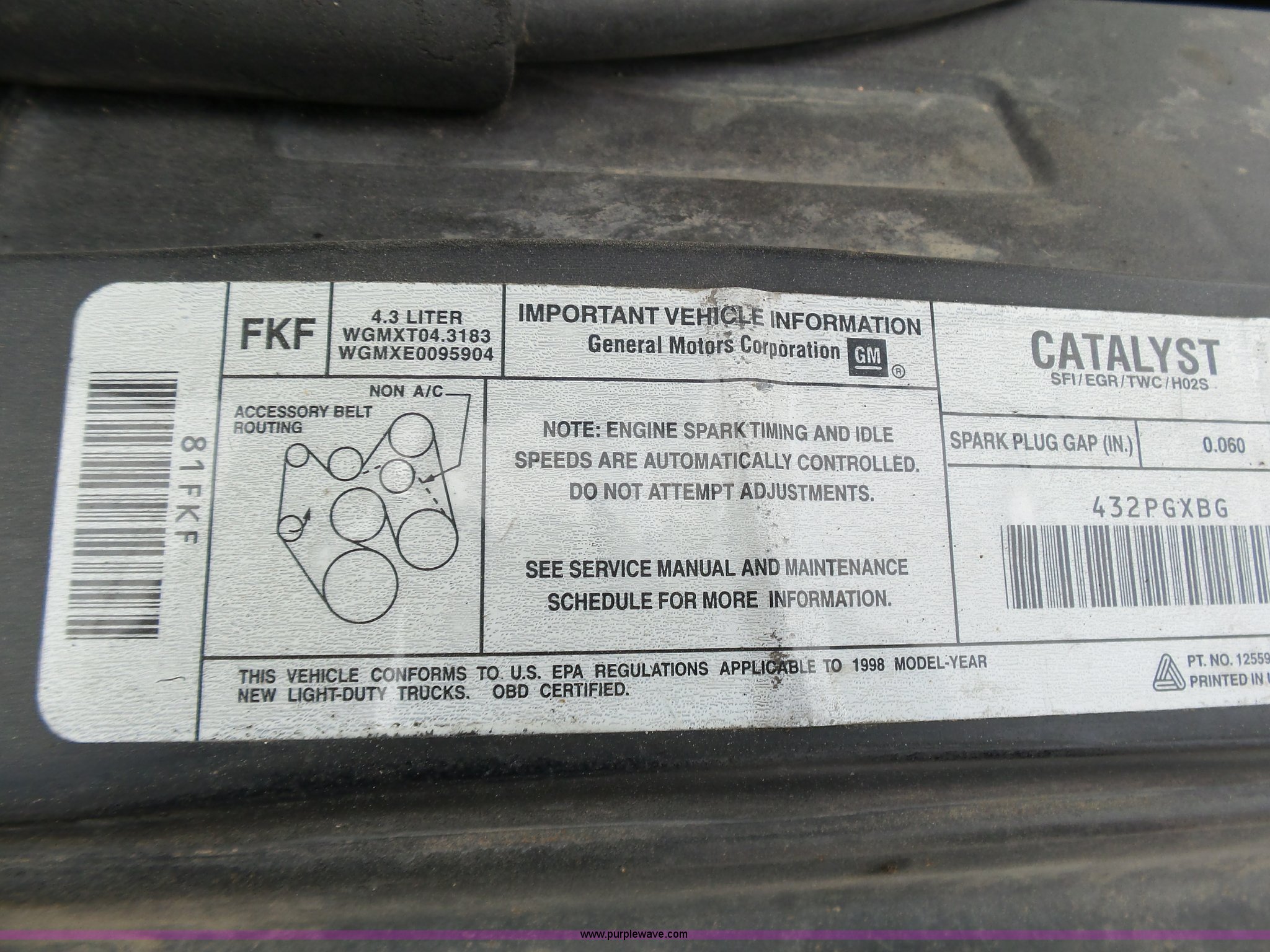 Purple Wave is selling a used Passenger Vehicle in Kansas. This item is a 1998 GMC Jimmy SLS SUV with the following: 171,871 miles on odometer, 4.3L V6 OHV 12V gas engine, Automatic transmission, Four wheel drive, AC and heat, Tilt, Cruise, AM/FM/cassette, Power windows, locks, mirrors, and seat, Cloth interior, Running boards, Front tow hooks, P225/75R15 tires, Interior/exterior cosmetic damage, Cracked windshield, Rear tires flat