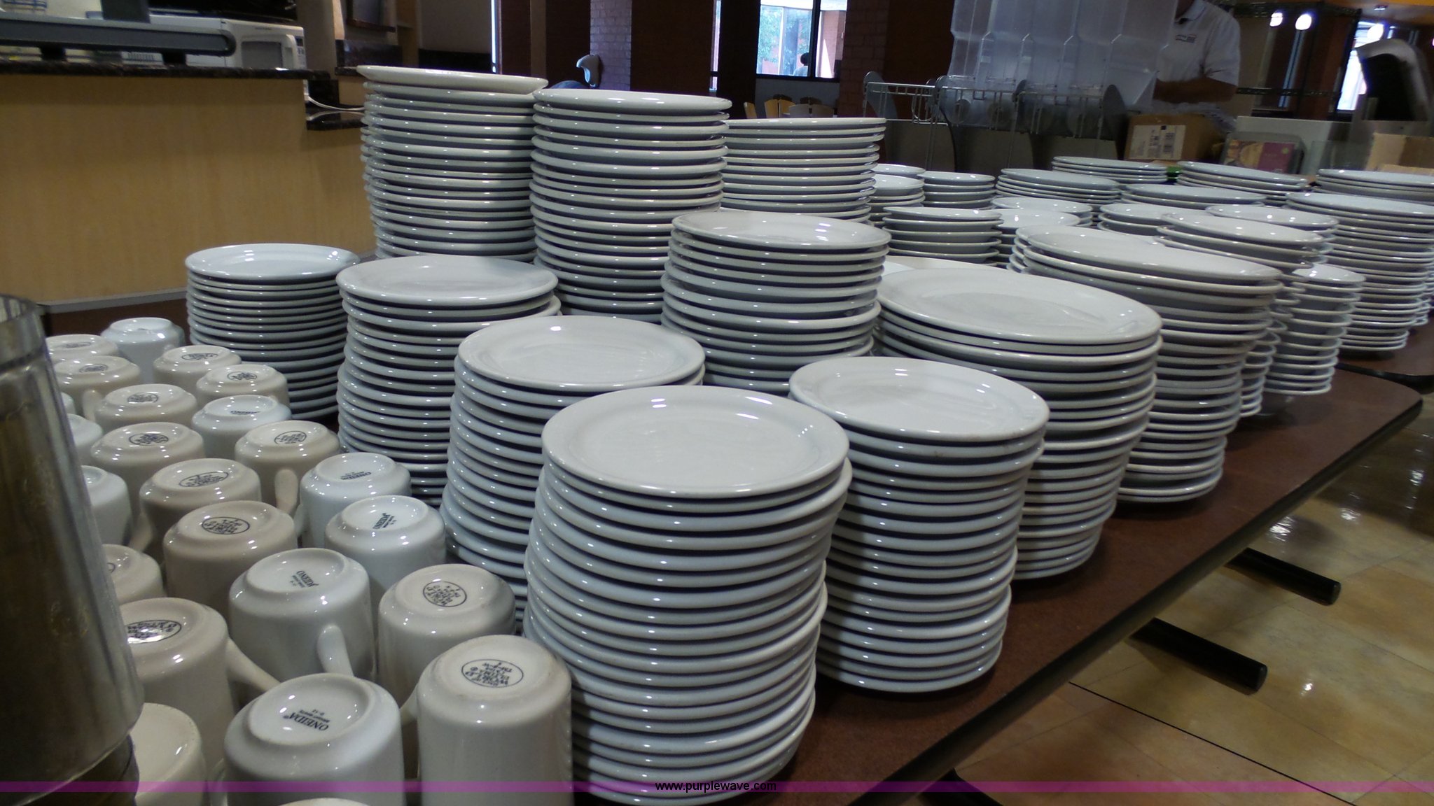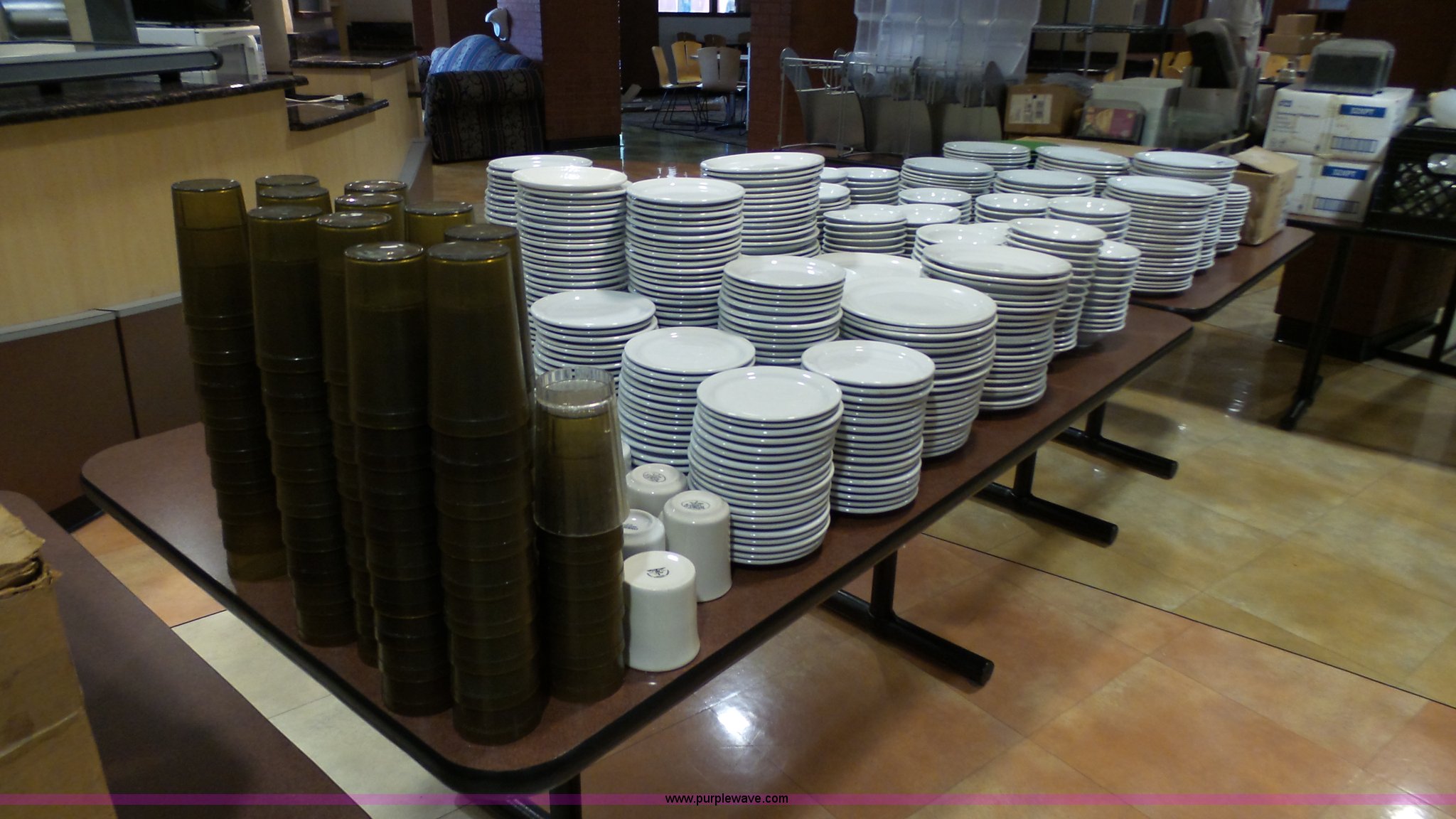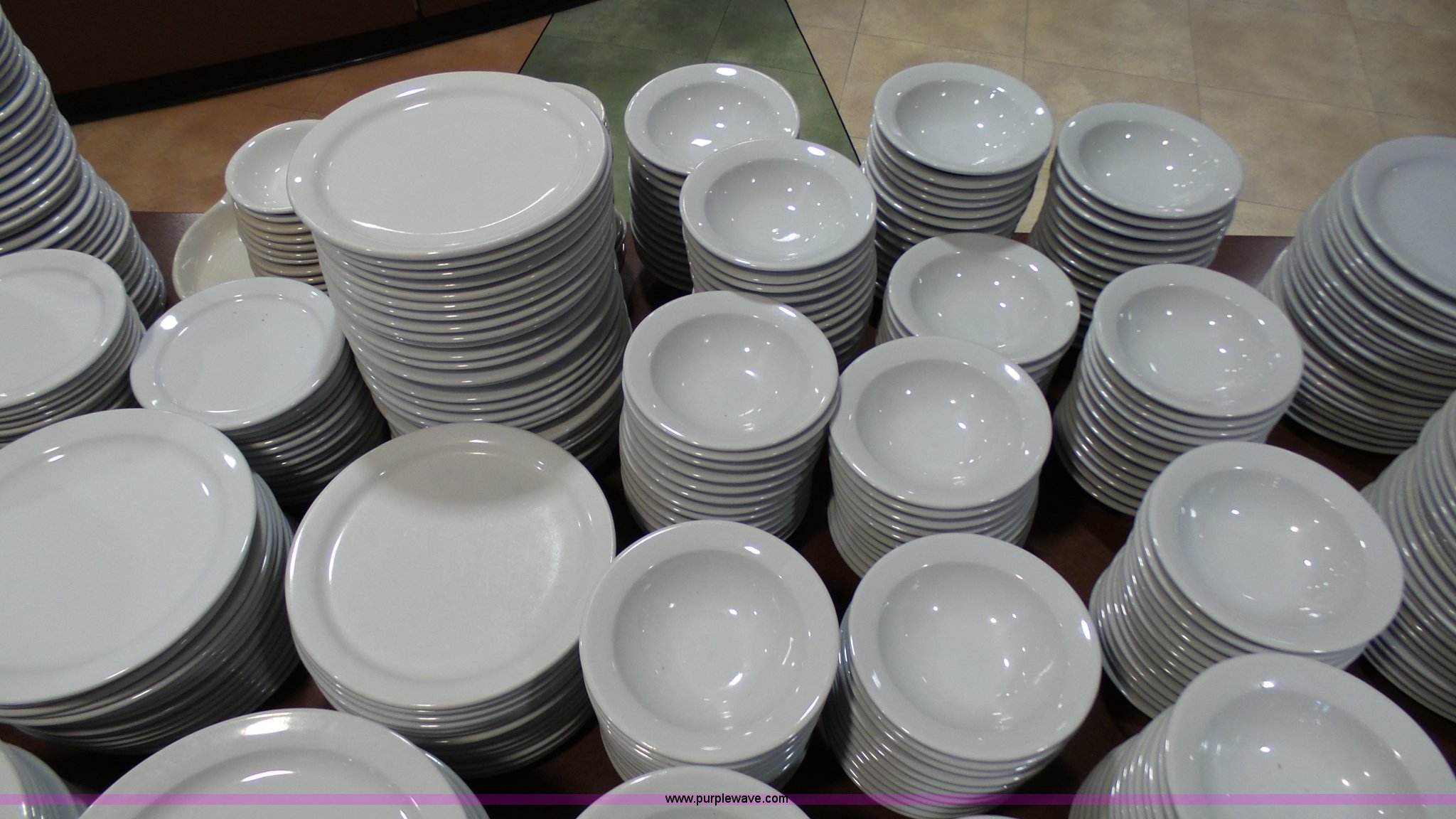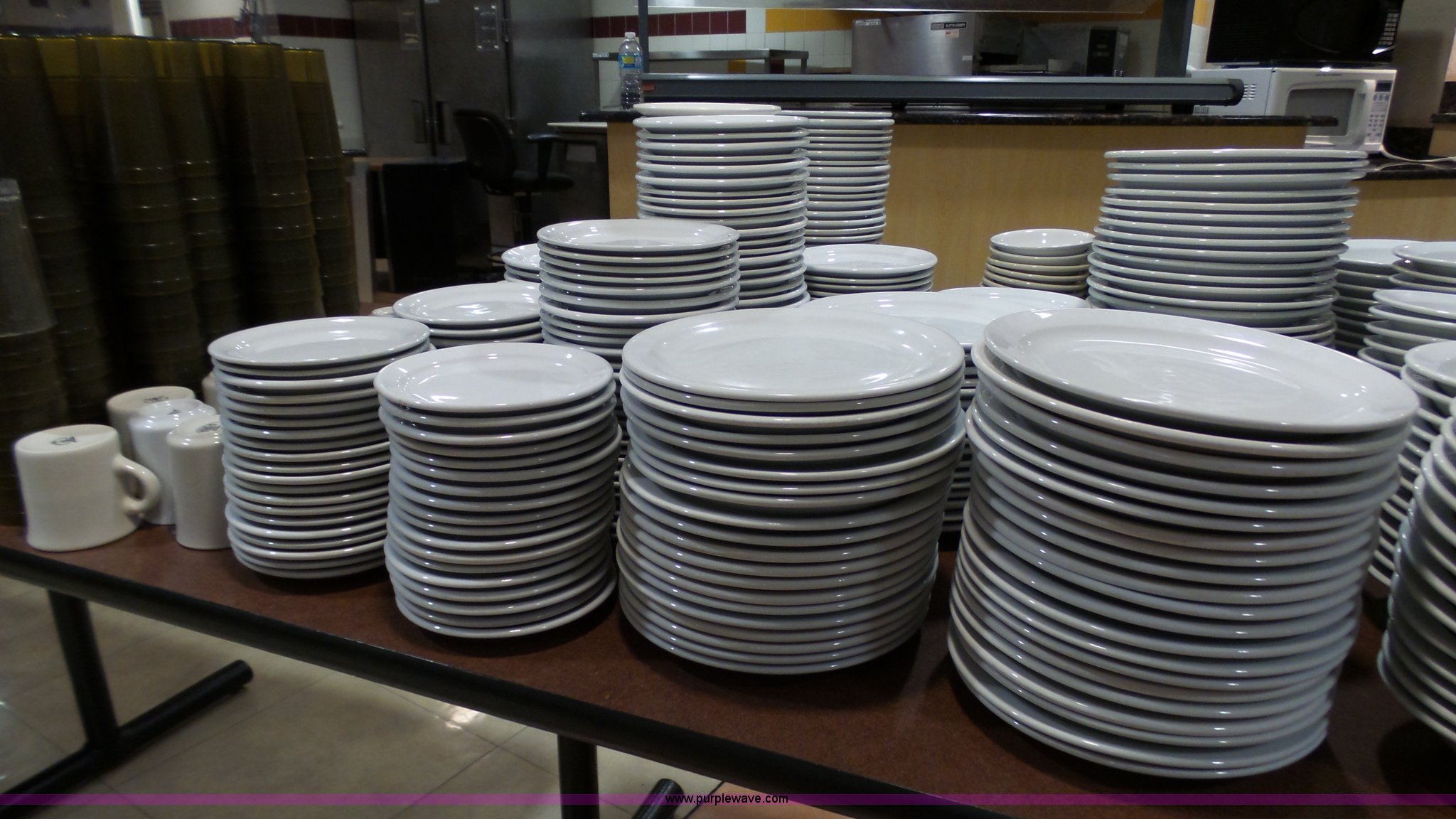 Purple Wave is selling a used Restaurant Equip. in Kansas. This item is a Restaurant equipment with the following: Approx. 700 plates, bowls, and saucers, Mugs, Gravy boats and saucers, New in box, Assorted plates, Approx. 100 plastic glasses, Glass sugar bowls, Punch cups, Sherbet cups, (32) sundae glasses with dish tray