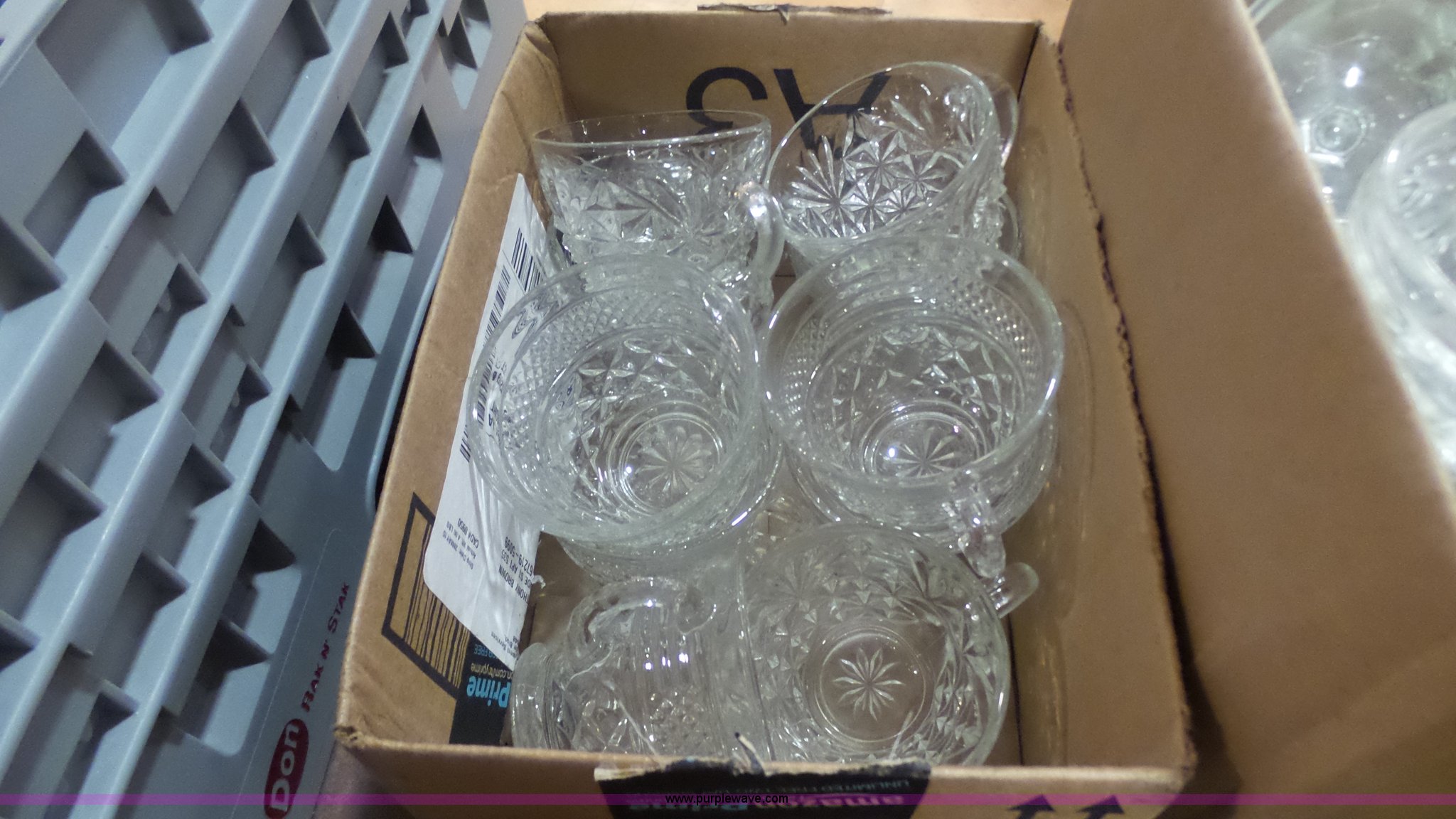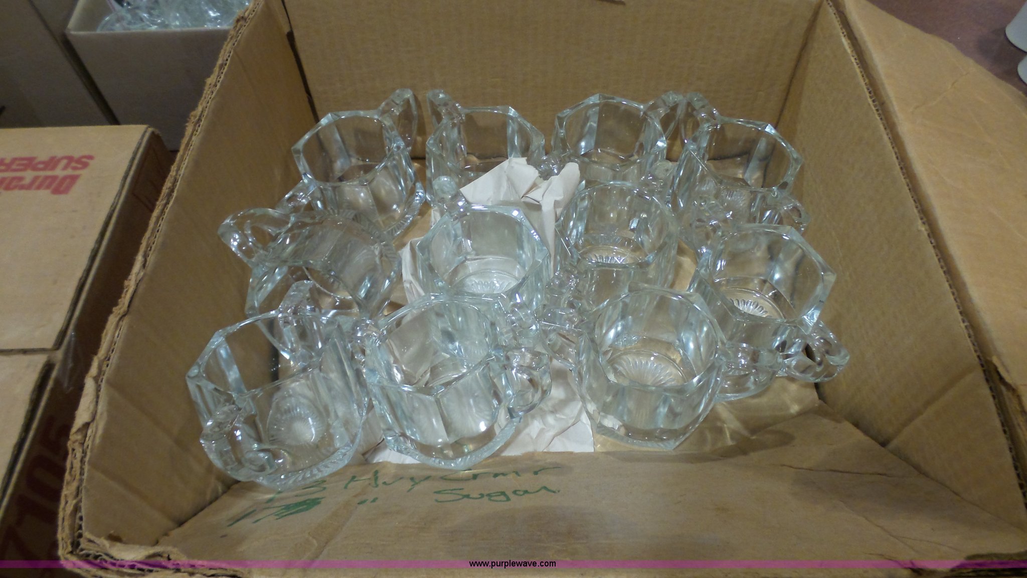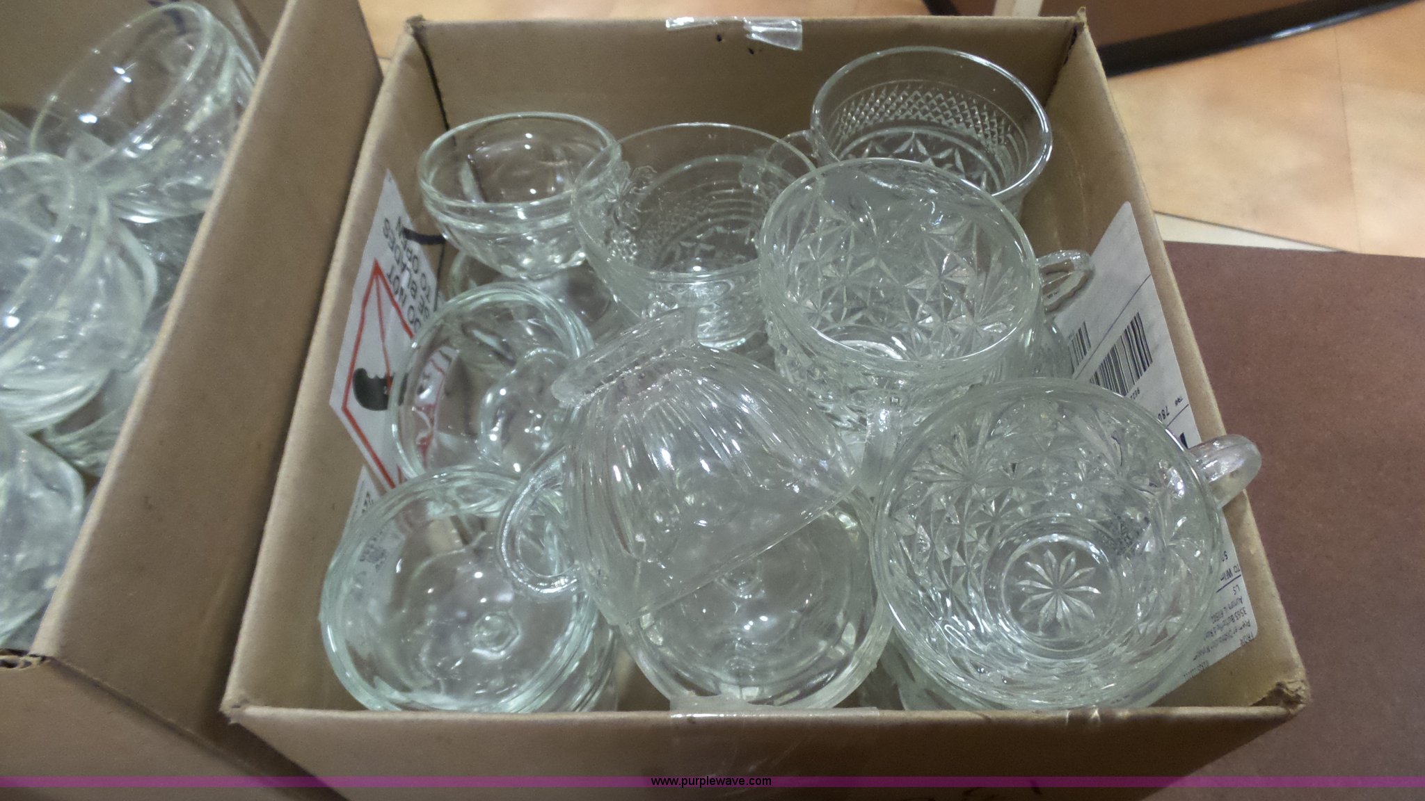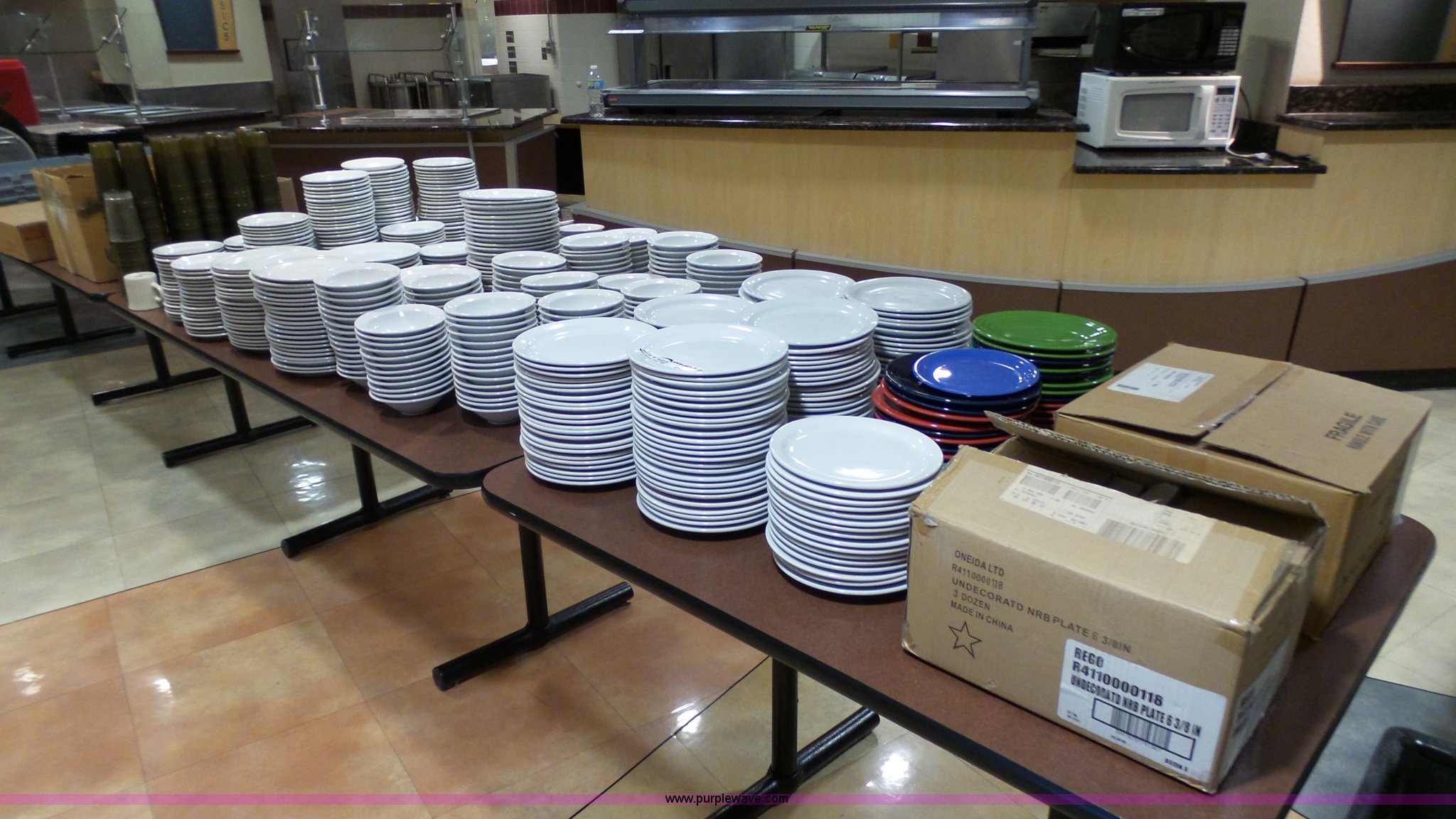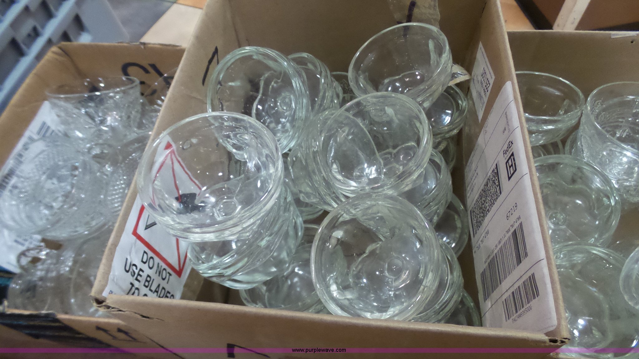 Purple Wave is selling a used Restaurant Equip. in Kansas. This item is a Restaurant equipment with the following: Approx. 700 plates, bowls, and saucers, Mugs, Gravy boats and saucers, New in box, Assorted plates, Approx. 100 plastic glasses, Glass sugar bowls, Punch cups, Sherbet cups, (32) sundae glasses with dish tray