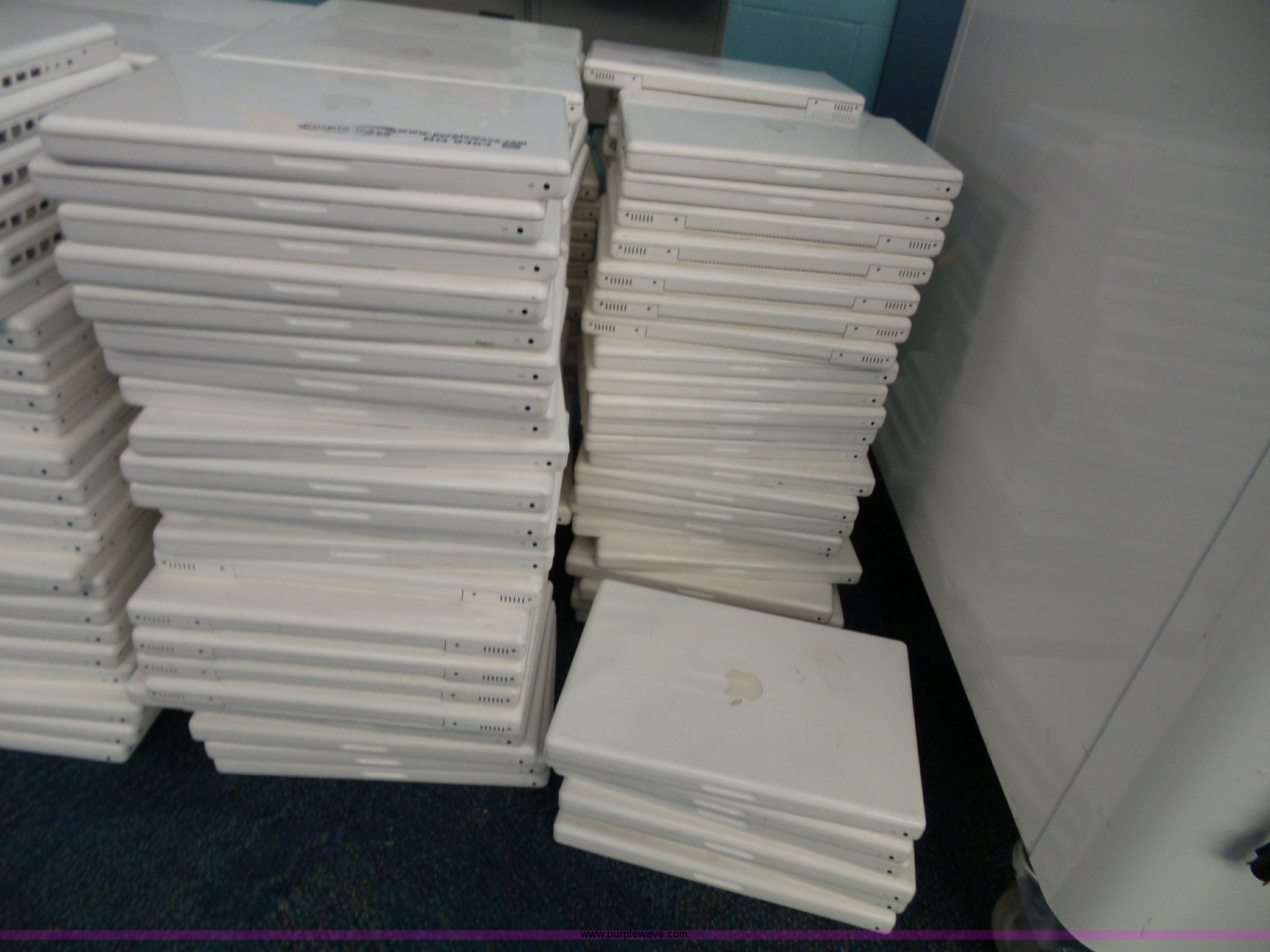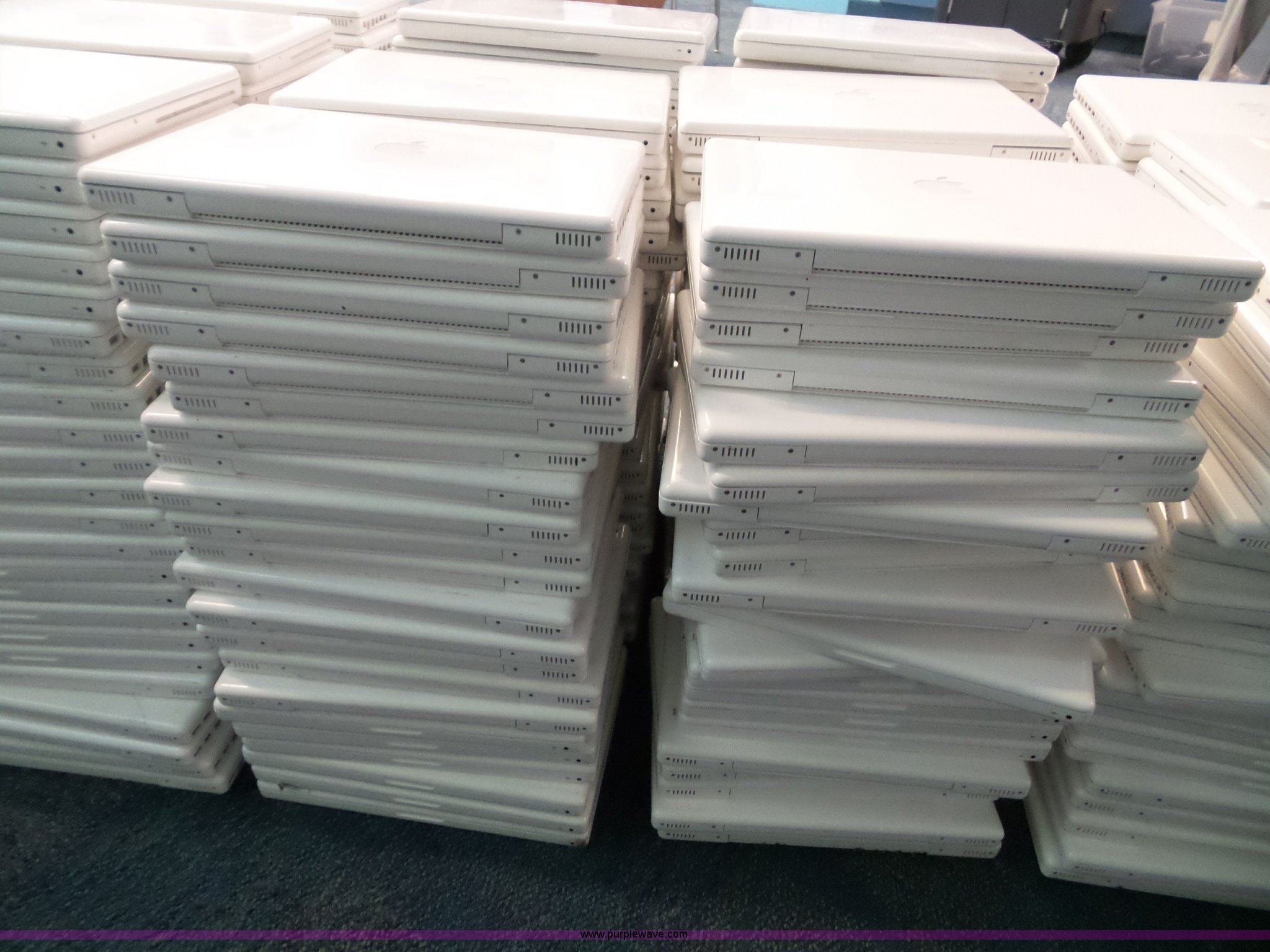 Purple Wave is selling a used Computers in Kansas. This item is a Approximately 380 Apple laptops with the following: Batteries, No power cords, Hard drives have been wiped