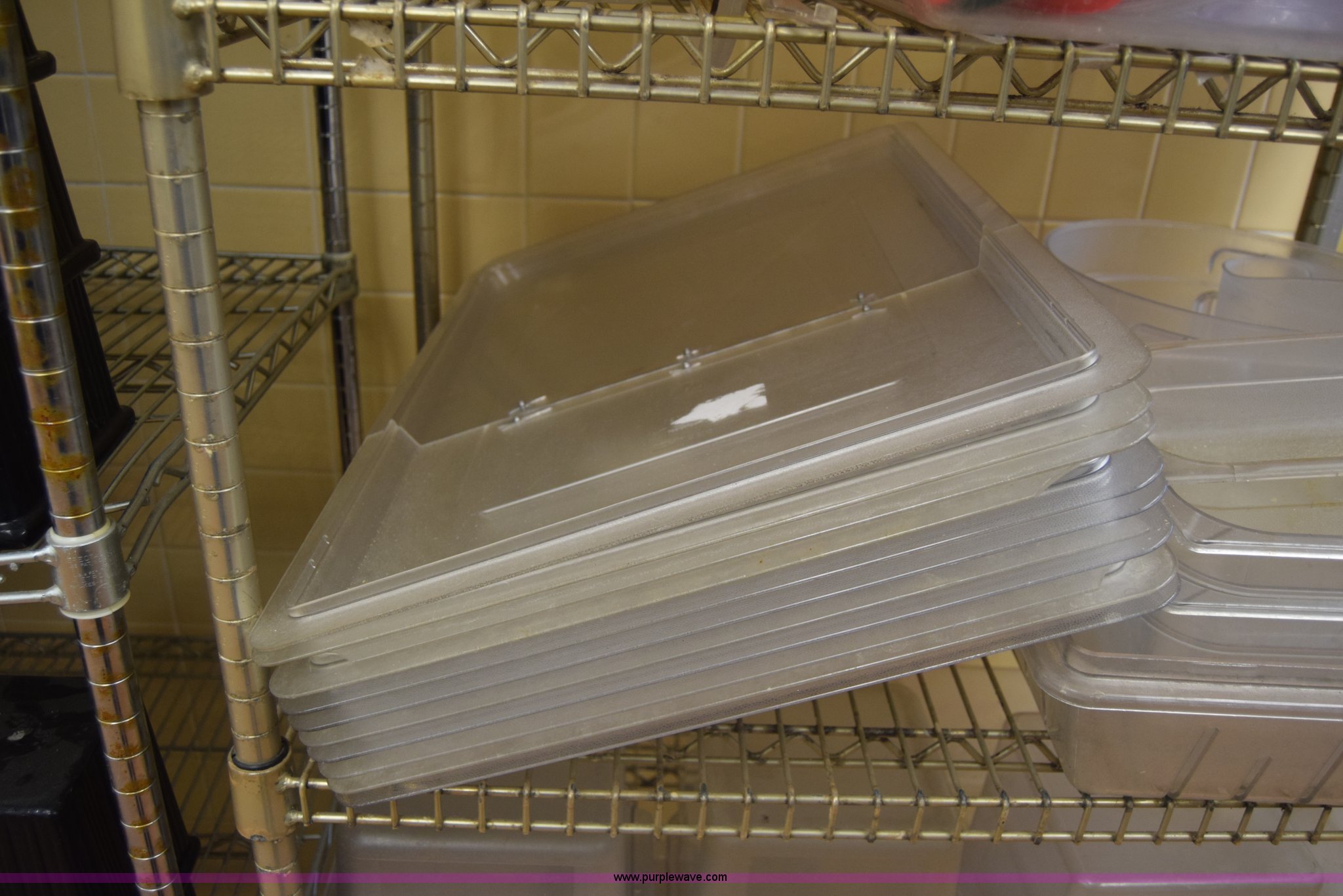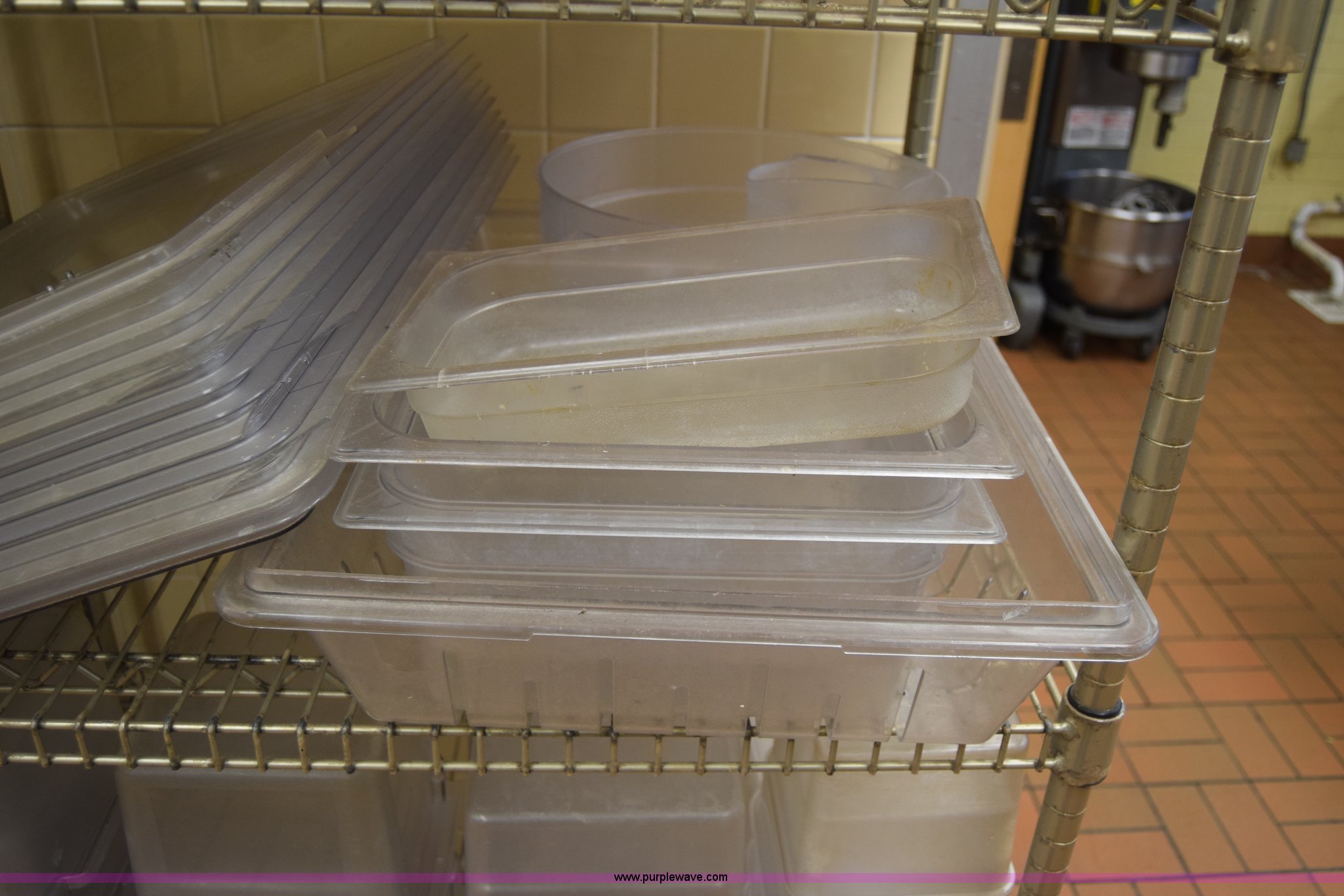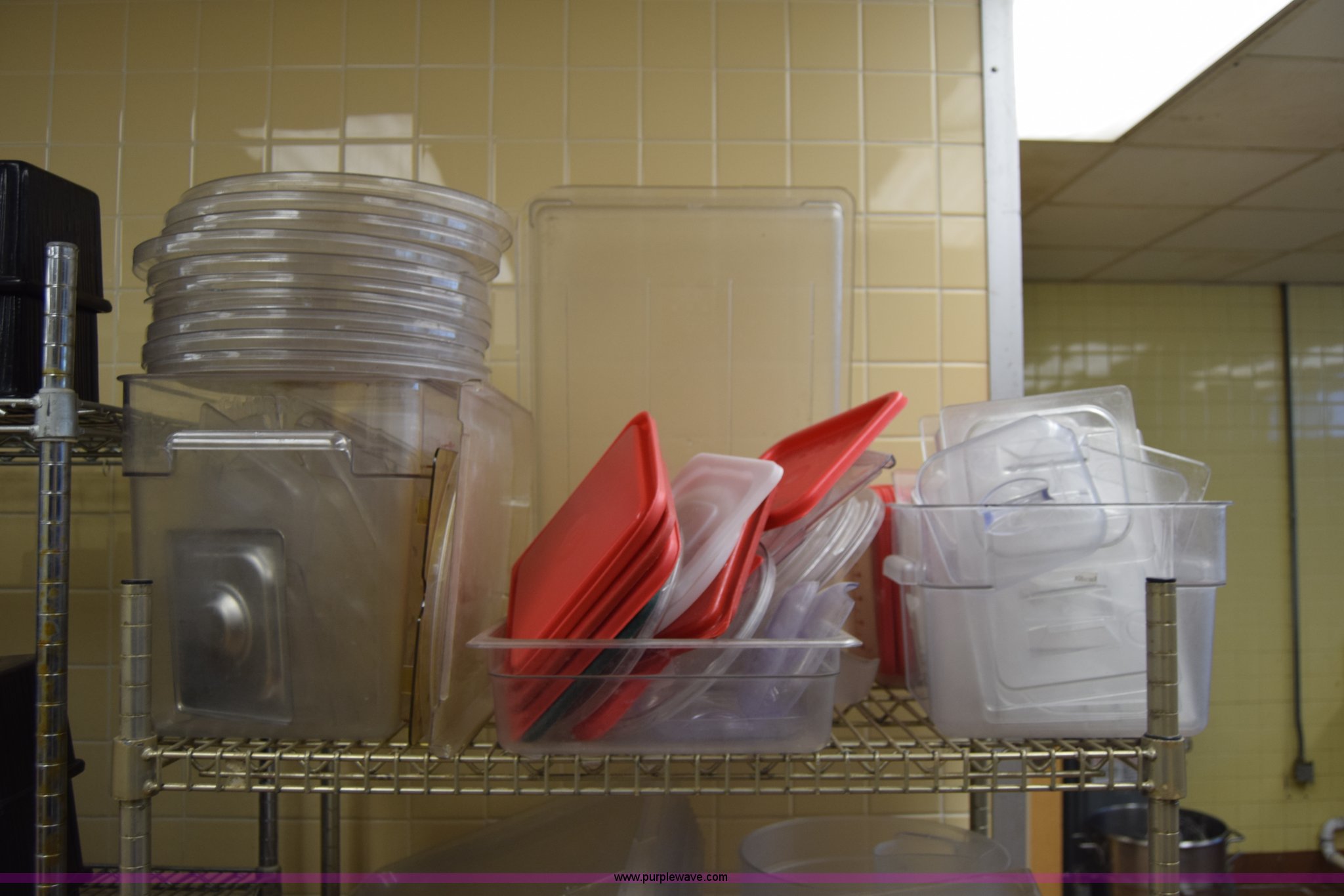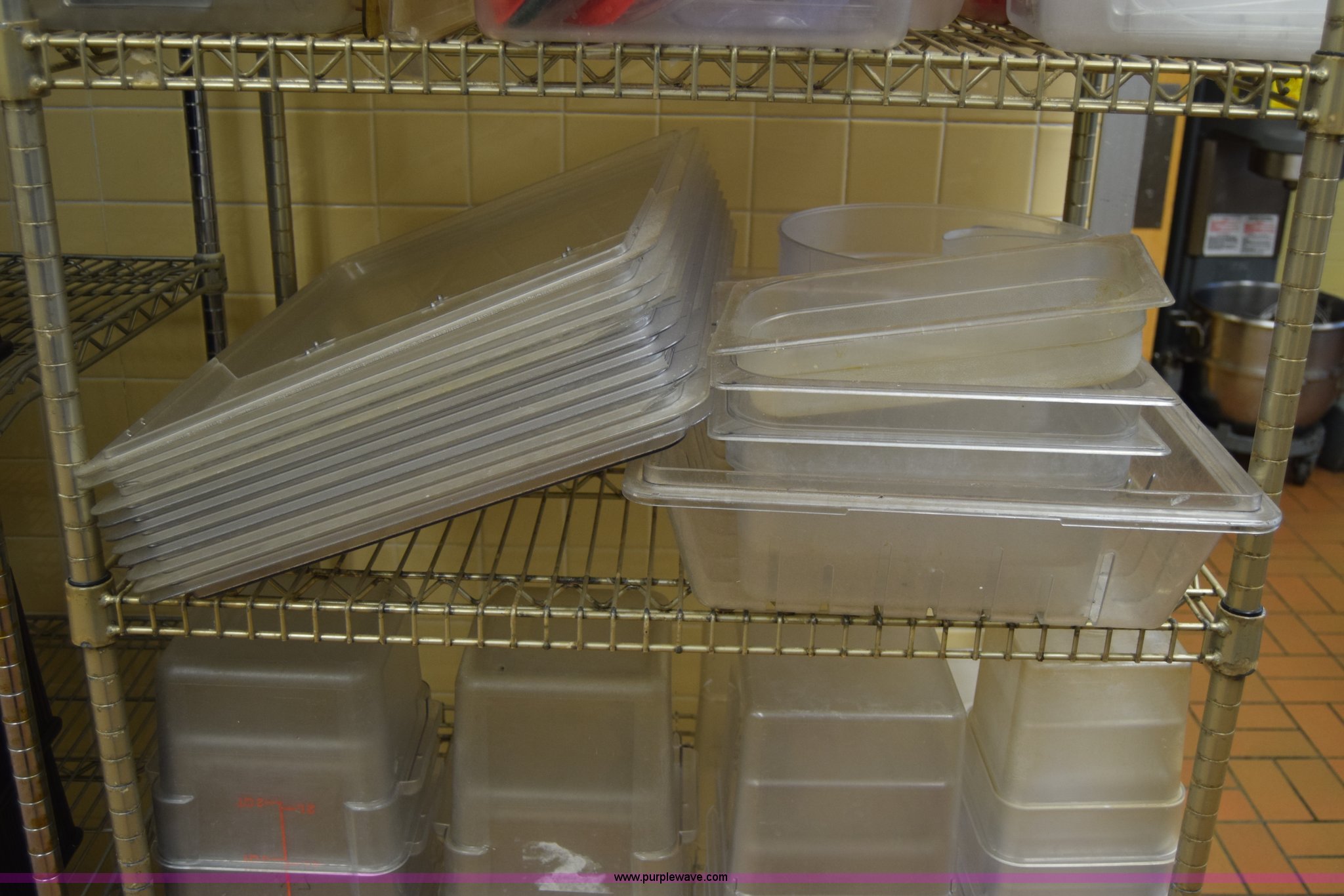 Purple Wave is selling a used Restaurant Equip. in Kansas. This item is a Restaurant equipment with the following: Approx. 50 hot dishes, Serving pans, Plastic storage containers, Lids, Rack not included