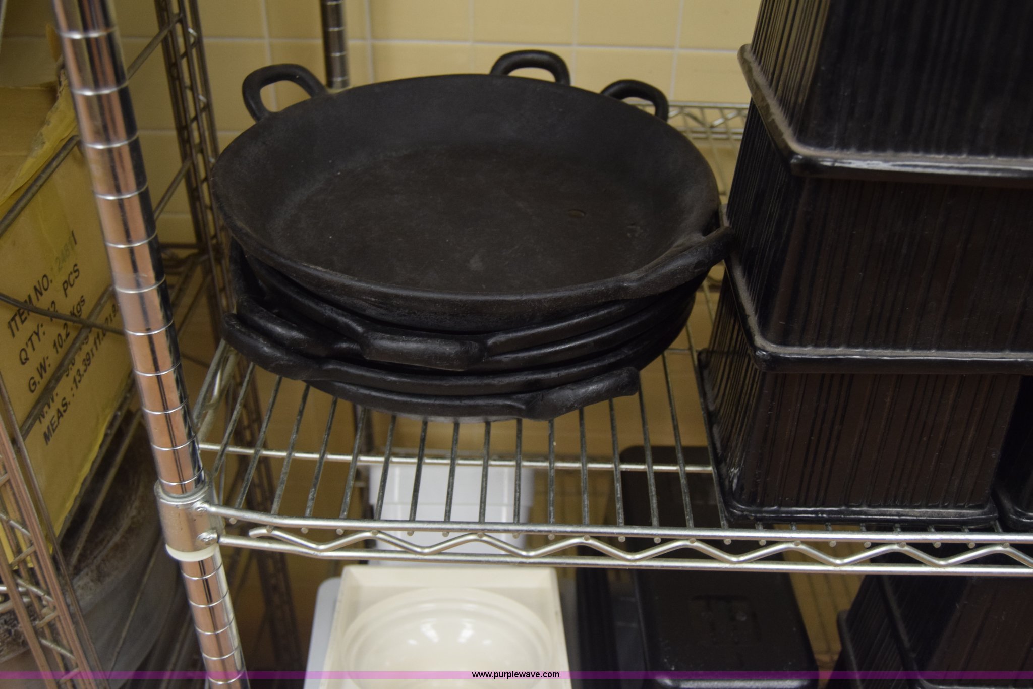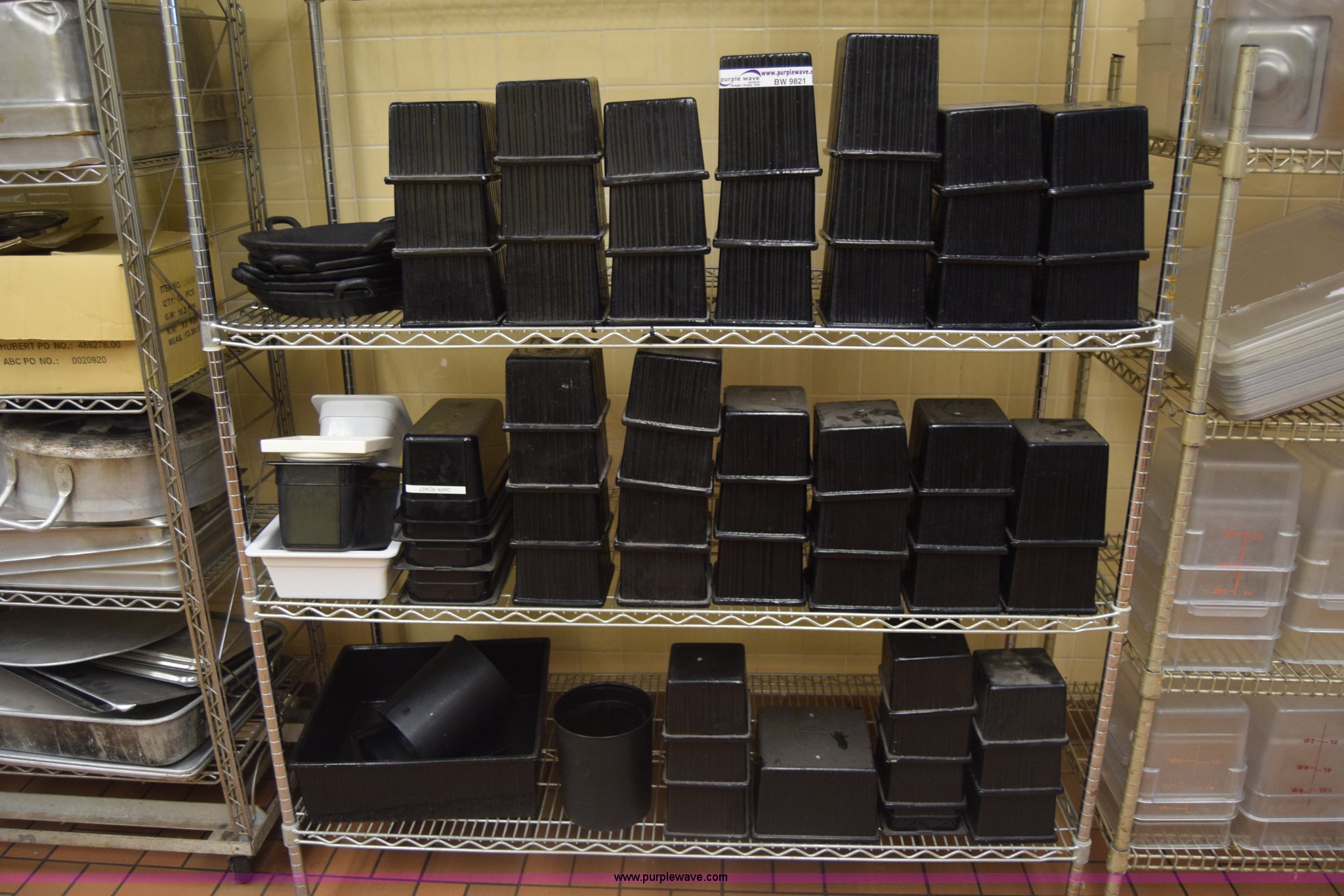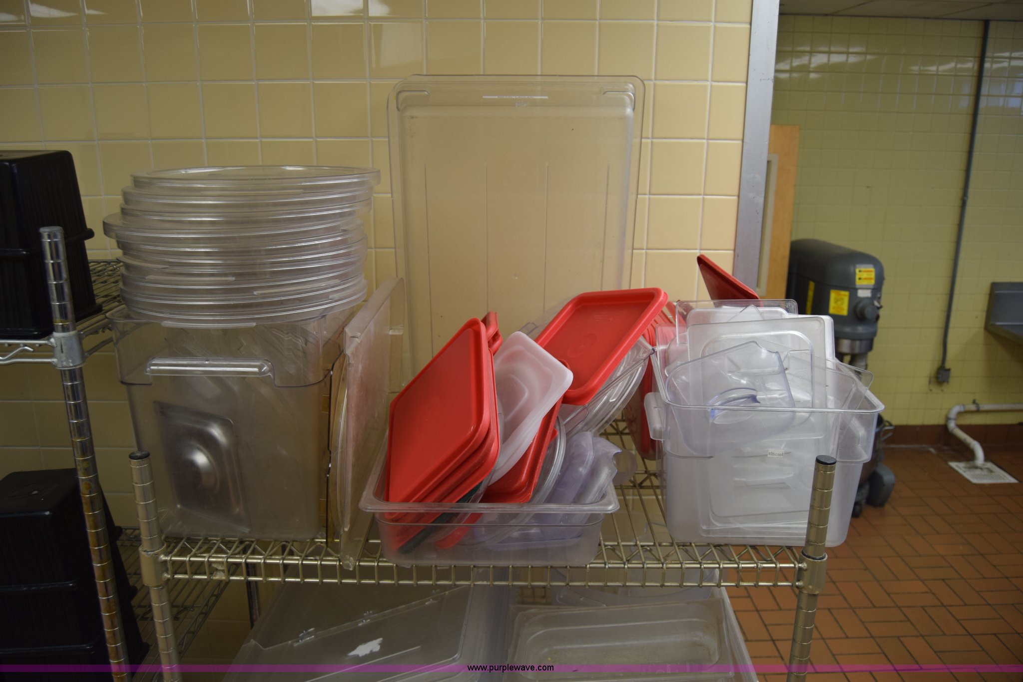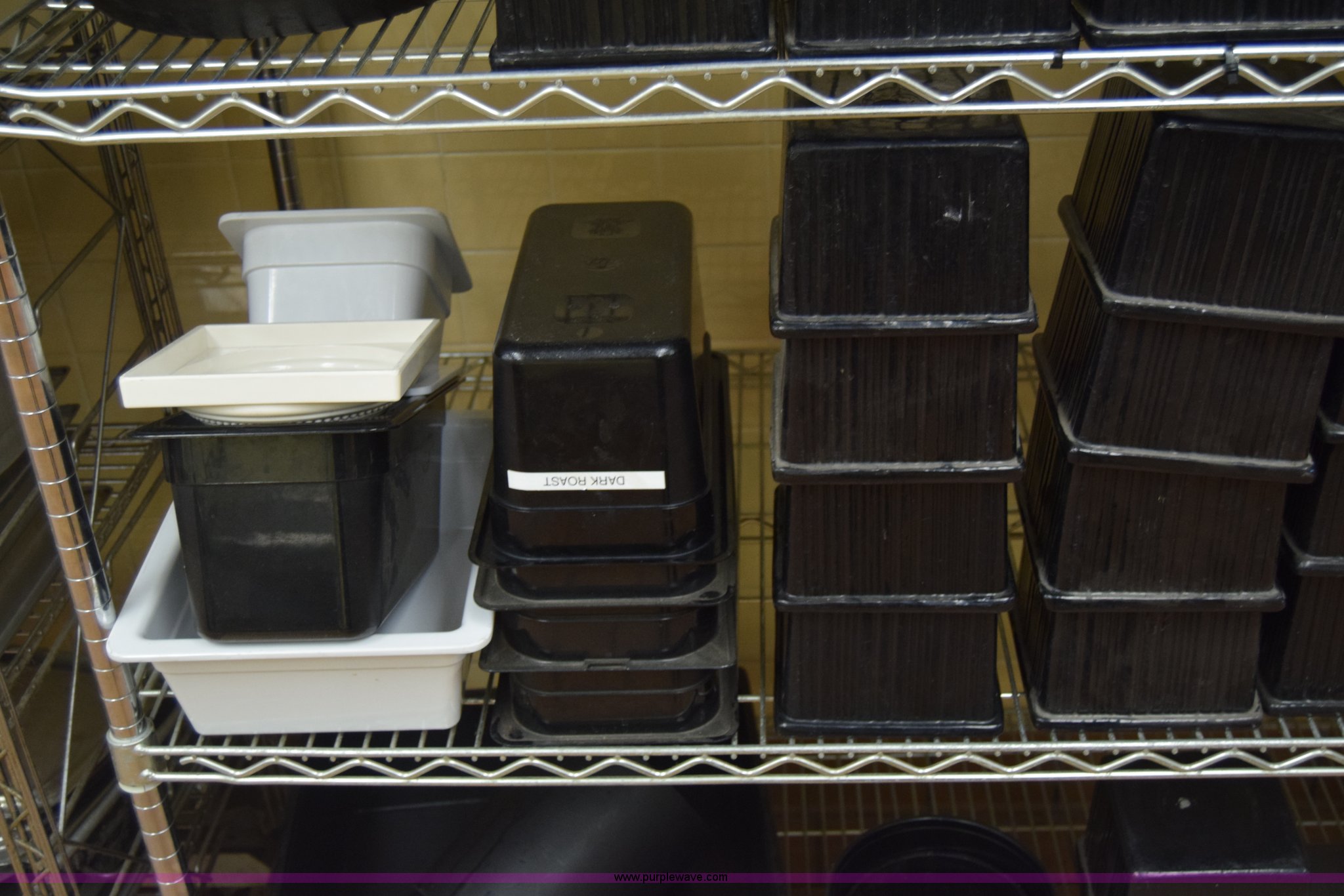 Purple Wave is selling a used Restaurant Equip. in Kansas. This item is a Restaurant equipment with the following: Approx. 50 hot dishes, Serving pans, Plastic storage containers, Lids, Rack not included