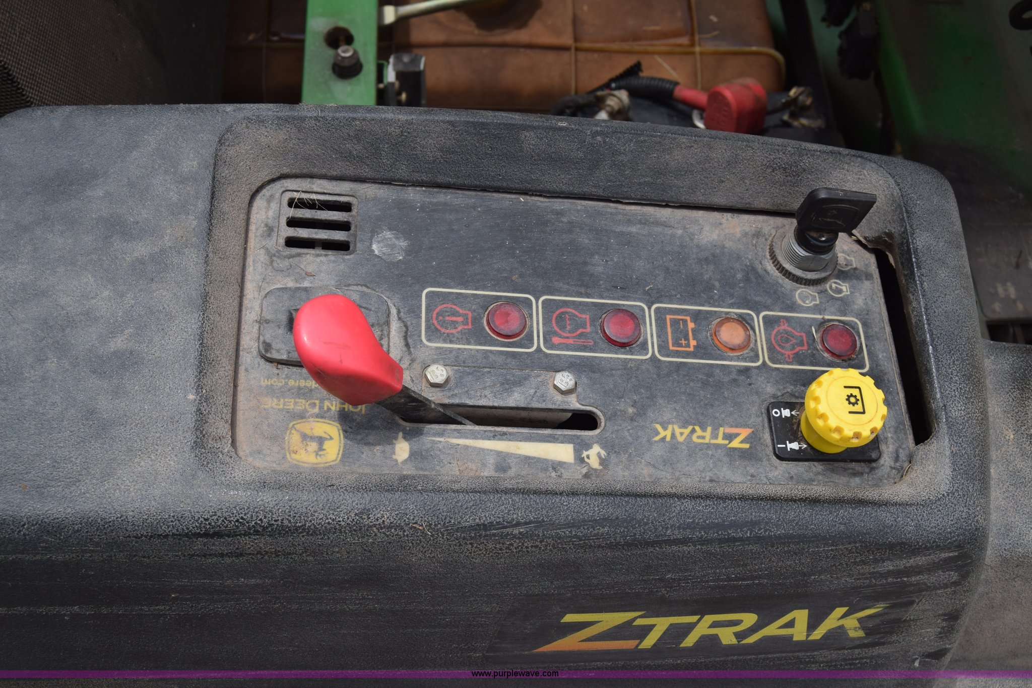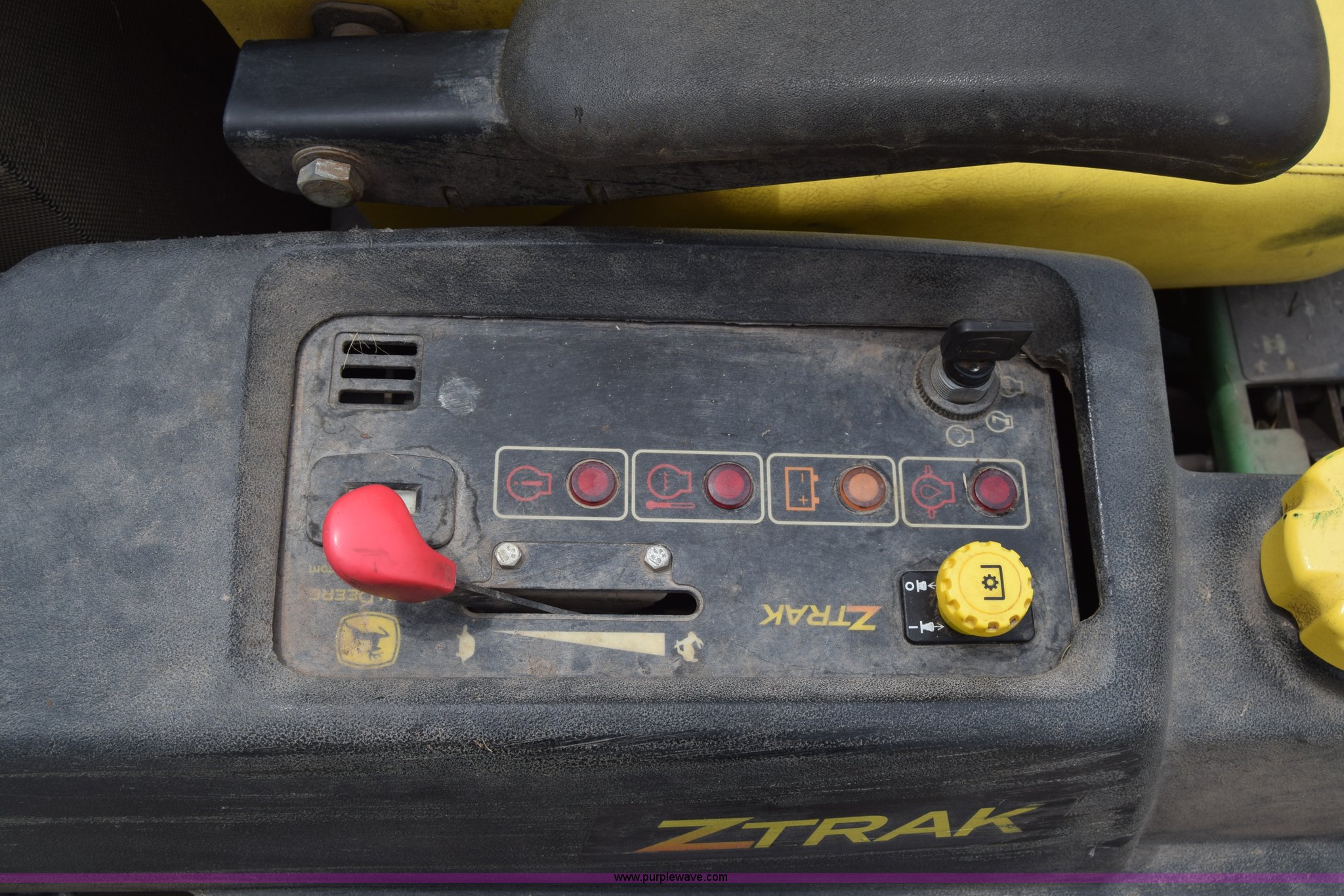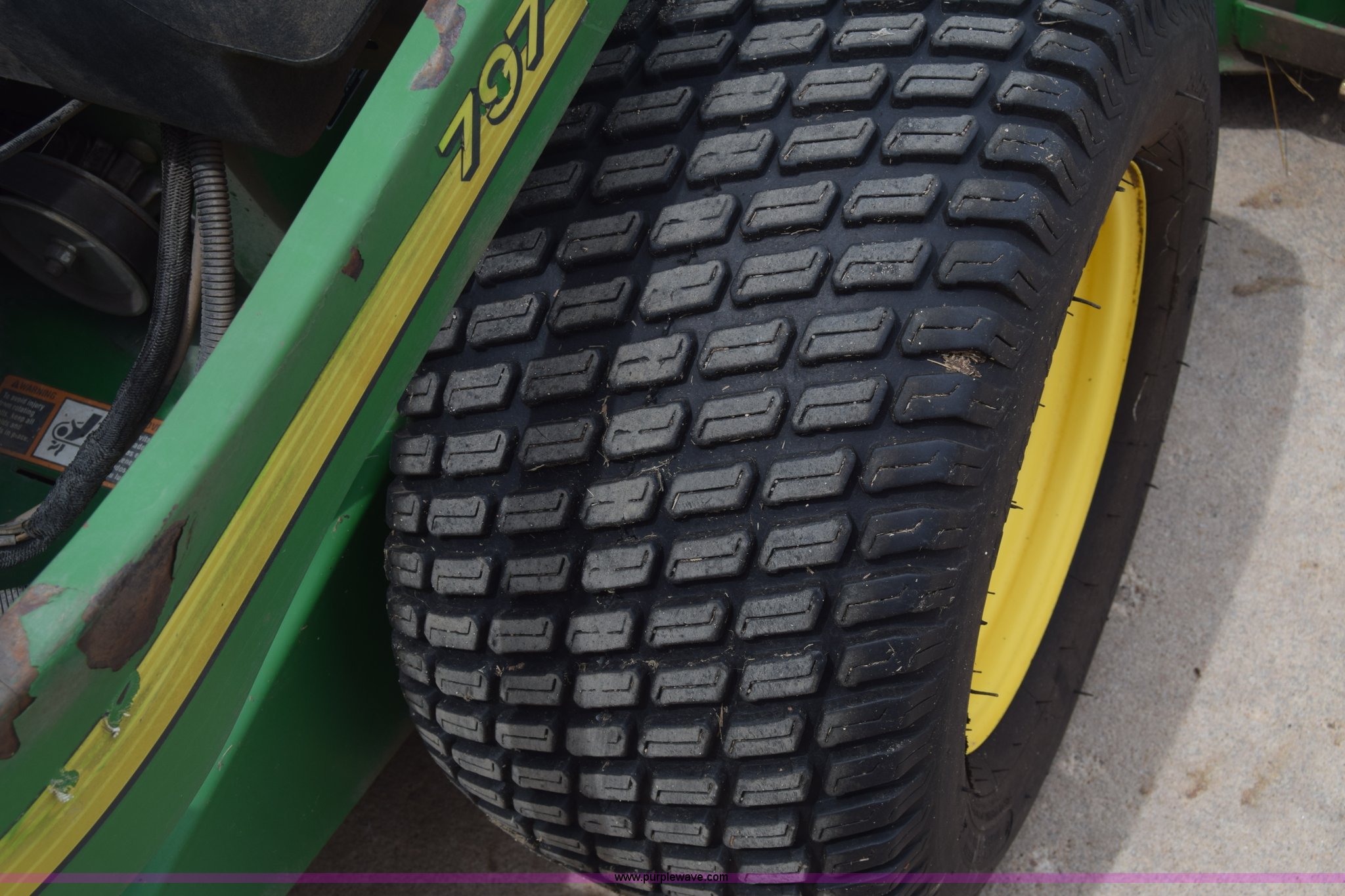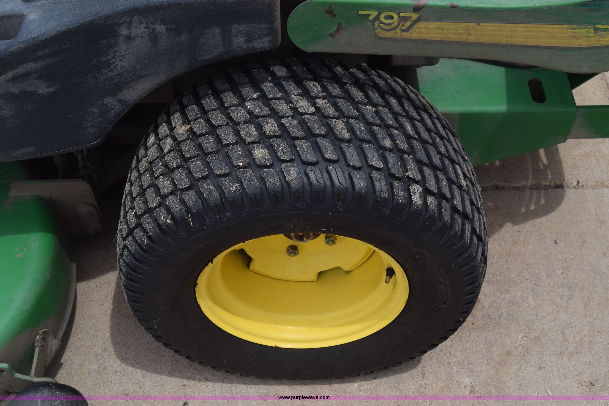 Purple Wave is selling a used Commercial Turf Mower in Kansas. This item is a John Deere 797 ZTR lawn mower with the following: 2,554 hours on meter, 72" cut, Kawasaki 745cc gas engine, 29 HP, Hydrostatic transmission, 13x6.50-6 front tires, 24x12.00-12 rear tires, Serial TC0797C021096