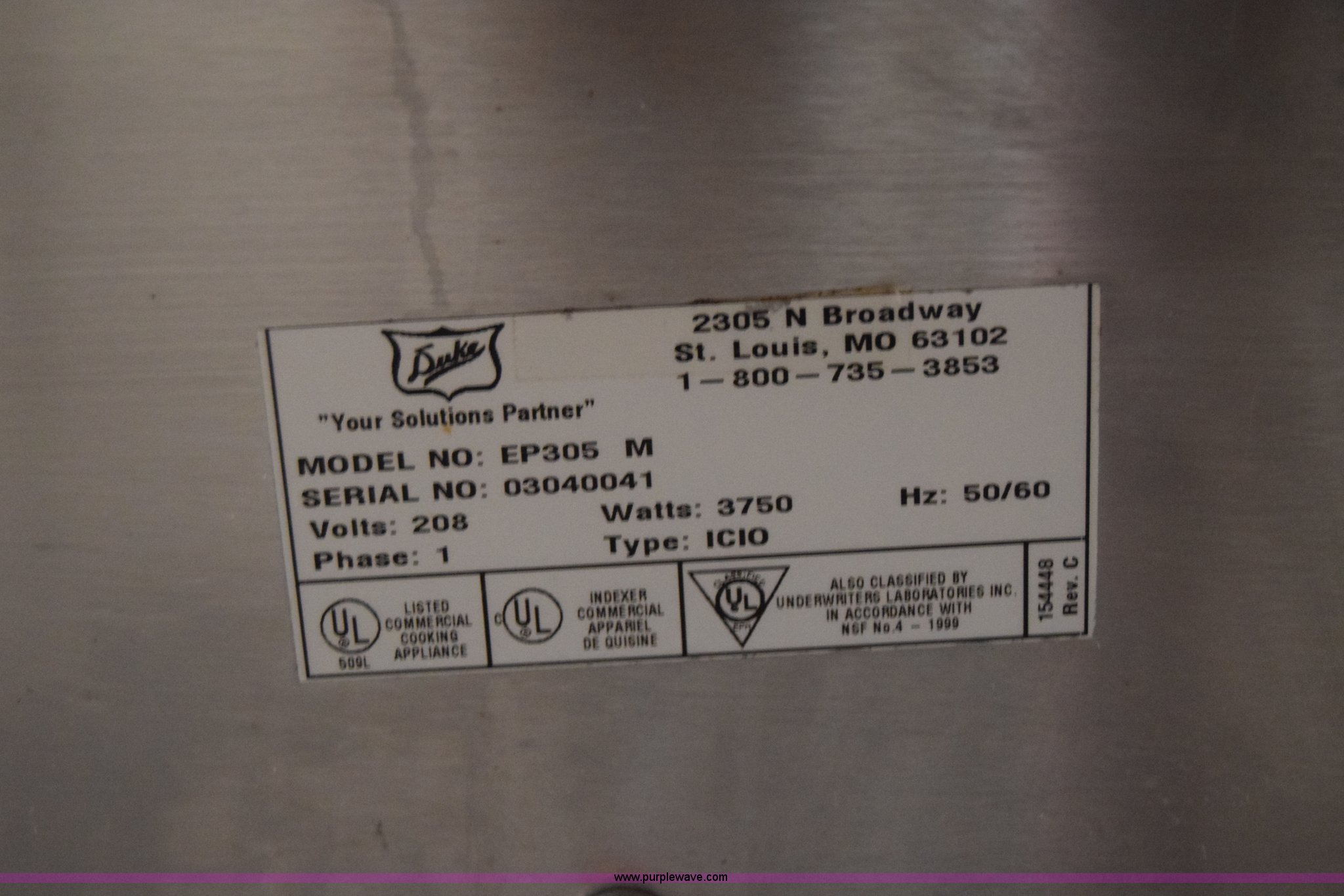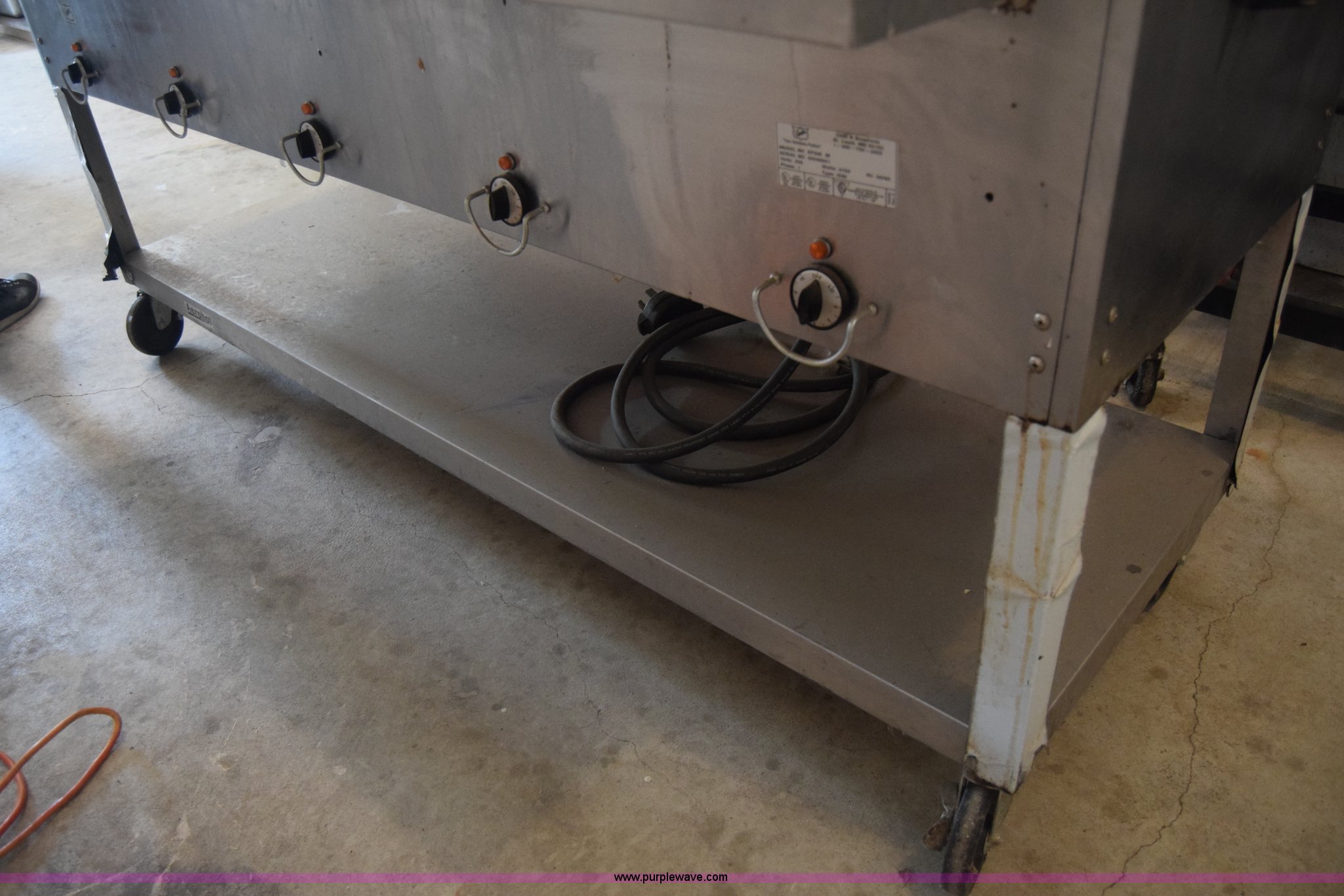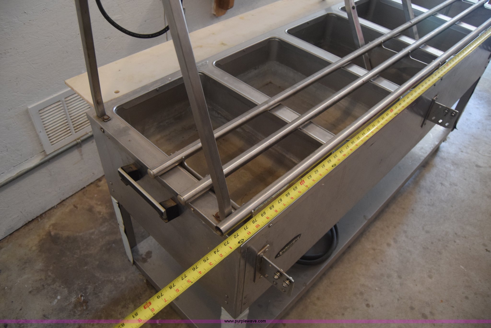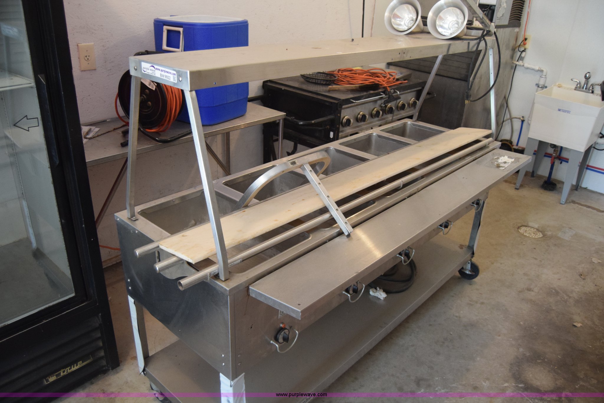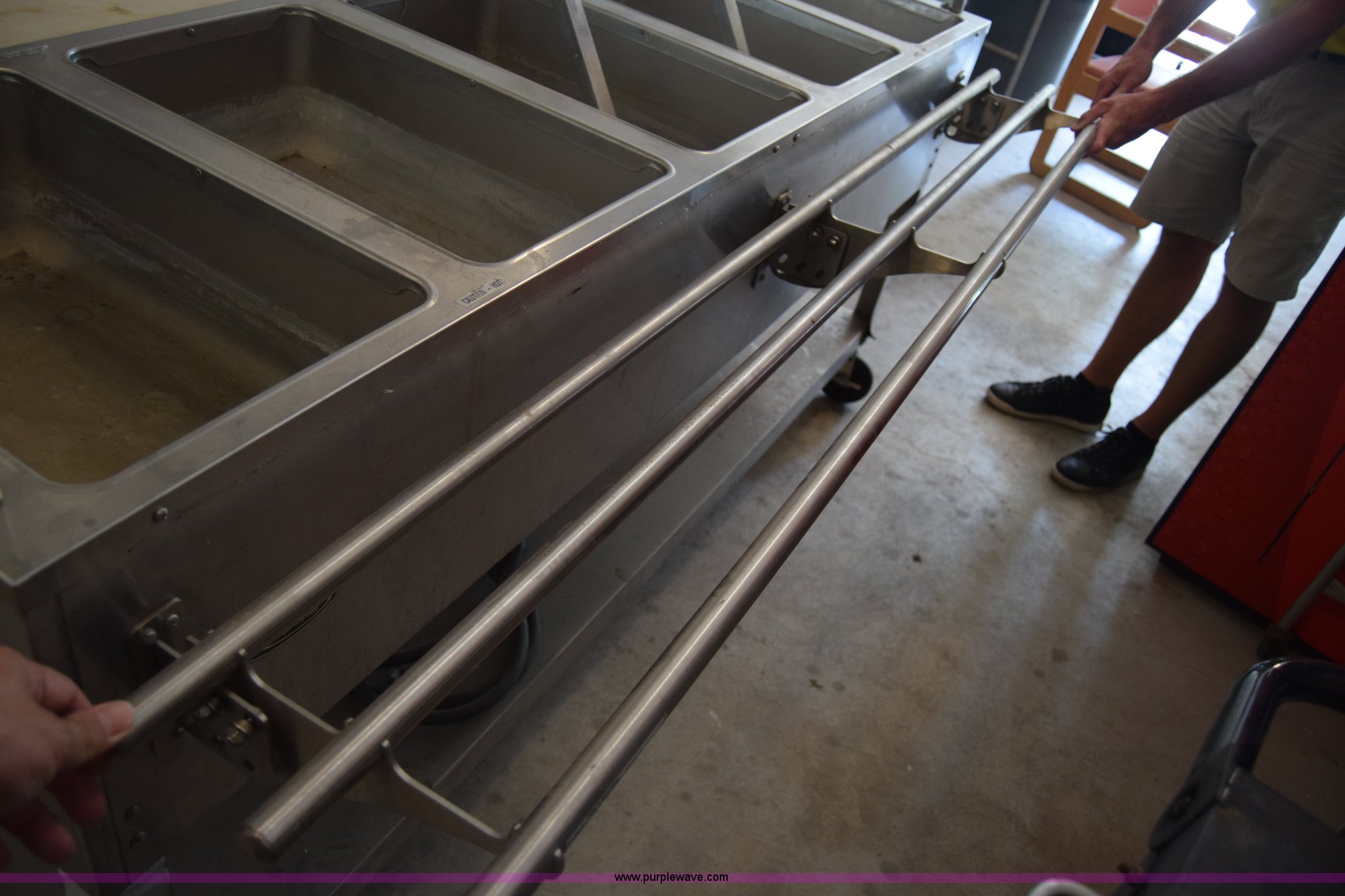 Purple Wave is selling a used Restaurant Equip. in Kansas. This item is a Duke steam table with the following: Model EP305M, 72" x 36" x 53", 208V, Single phase, (5) wheels, Heat lamps, Wheels, Stainless steel construction
