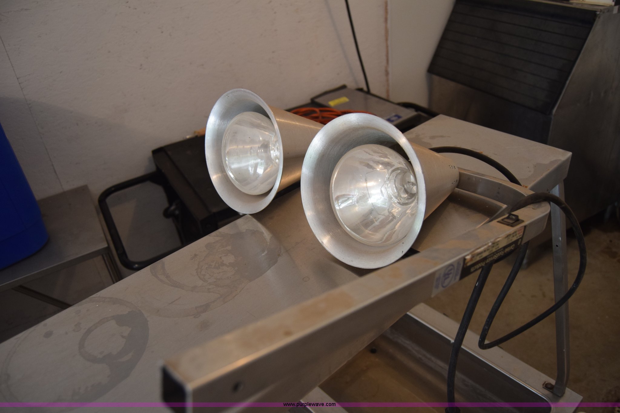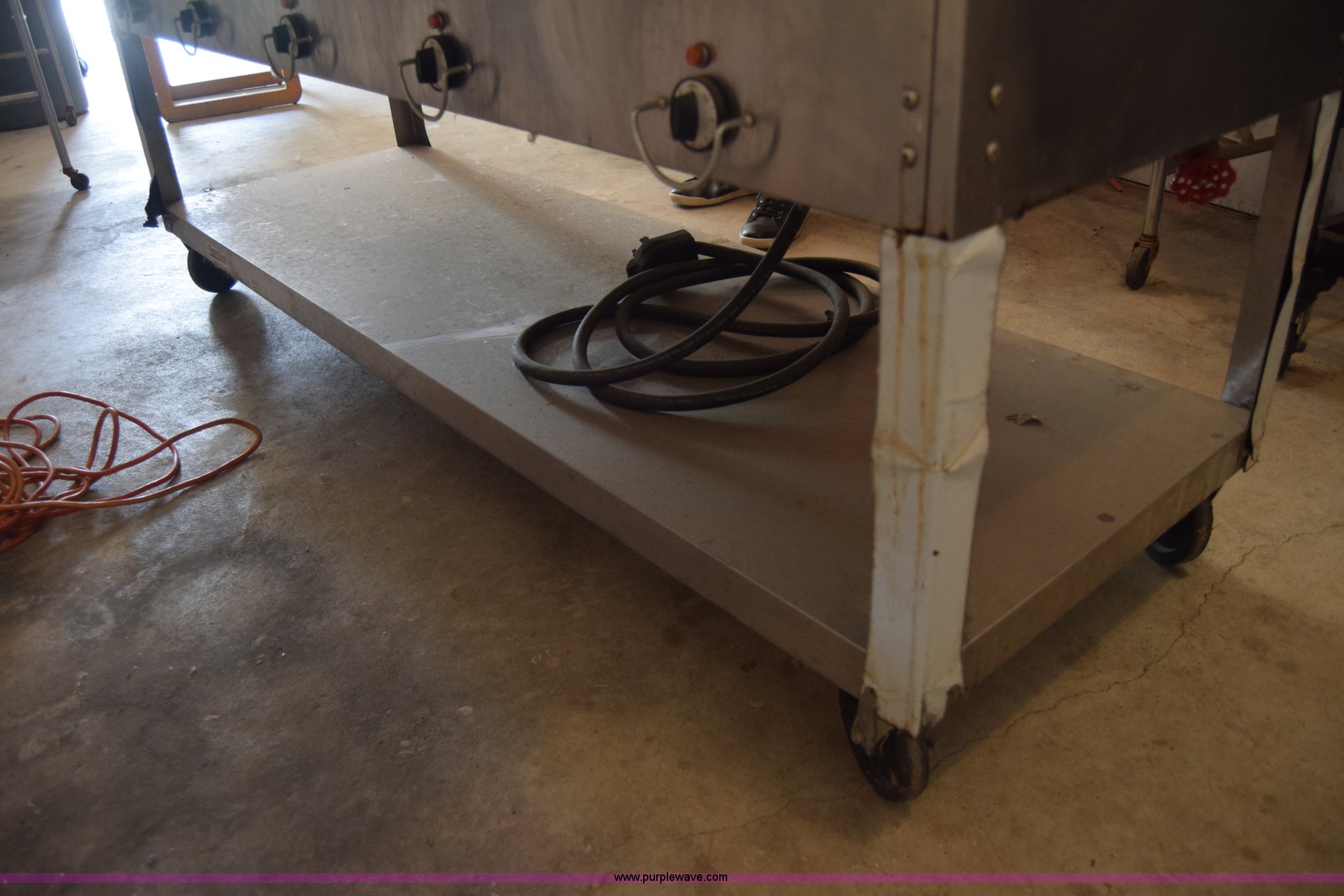Duke steam table. Model EP305M, 72" x 36" x 53", 208V, Single phase, (5) wheels, Heat lamps, Wheels, Stainless steel construction. City of Cheney. 1119 N Main. Cheney, KS 67025