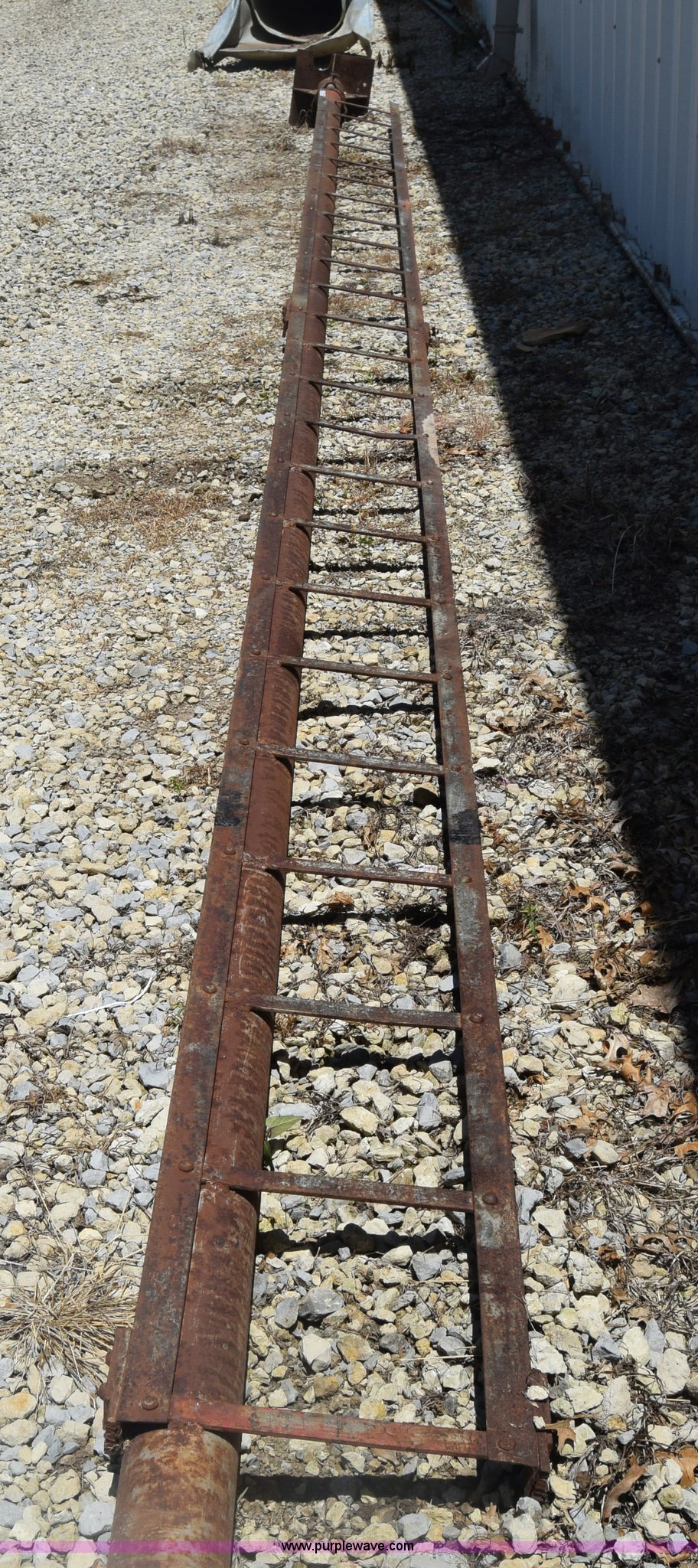 Purple Wave is selling a used Building Materials in Kansas. This item is a Steel tower ladder with the following: Approx. 28'L x 16"W