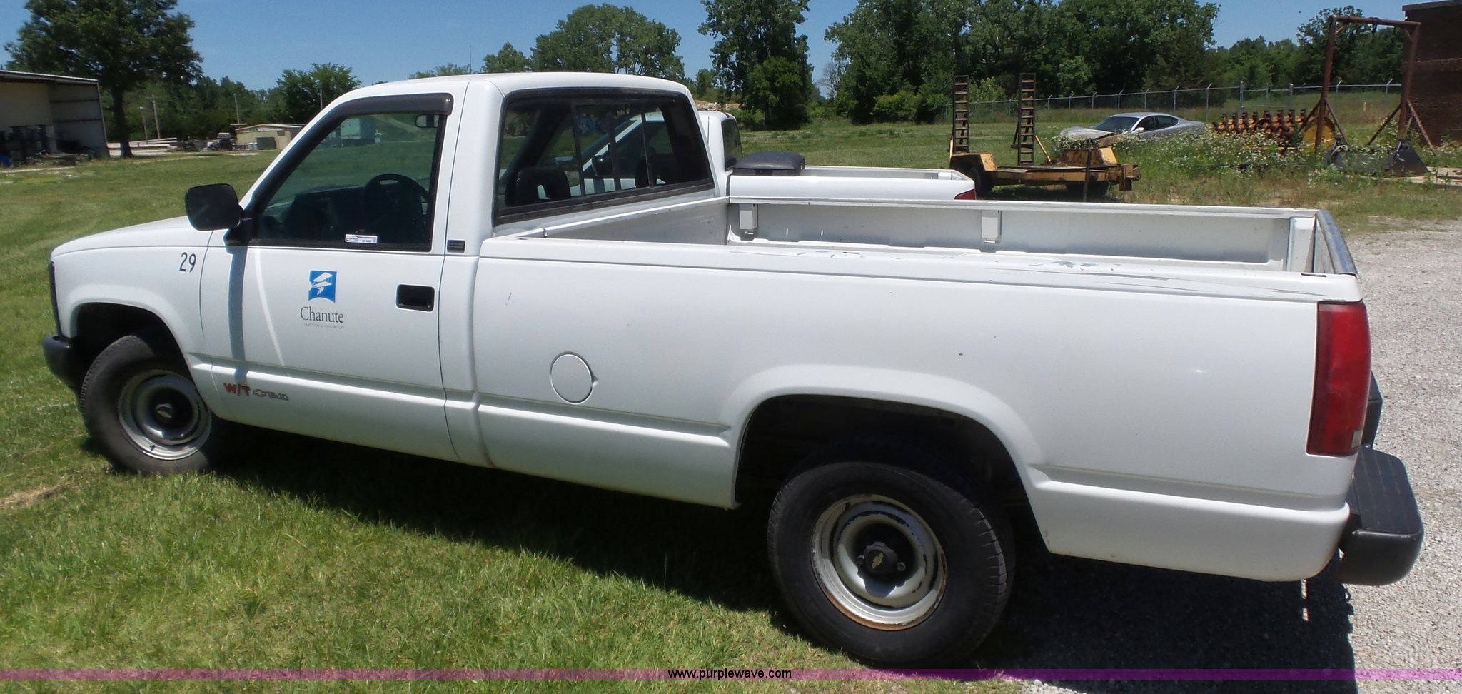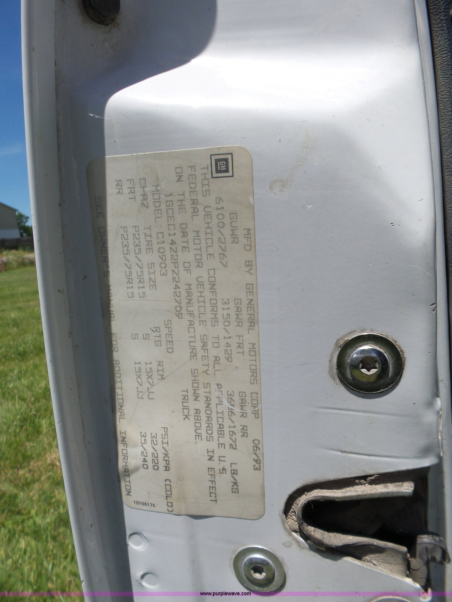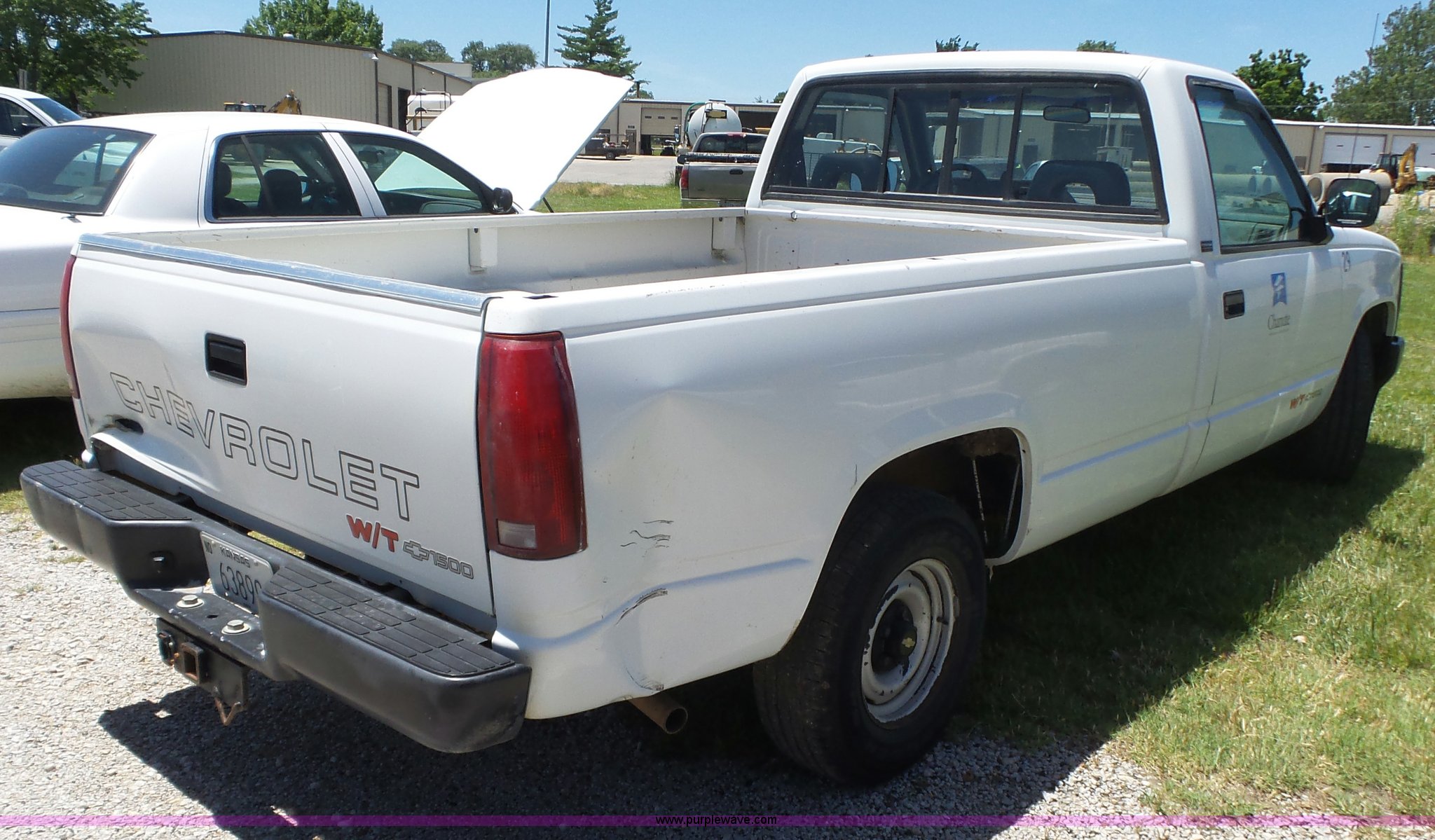 Purple Wave is selling a used 1/2 Ton Pickup or Van in Kansas. This item is a 1993 Chevrolet 1500 pickup truck with the following: 73,049 miles on odometer, 4.3L V6 OHV 12V gas engine, Automatic transmission, Heat, AM/FM, Manual windows and locks, Cloth interior, Long bed, Receiver hitch, Trailer wiring, P235/75R15 tires, Interior/exterior cosmetic damage, Idles rough