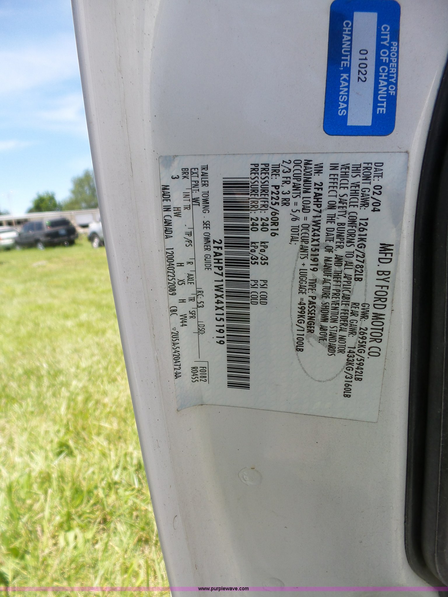 Purple Wave is selling a used Passenger Vehicle in Kansas. This item is a 2004 Ford Crown Victoria Police Interceptor with the following: 178,364 miles on odometer, 4.6L V8 SOHC 16V gas engine, Automatic transmission, AC and heat, Tilt, Cruise, AM/FM/cassette, Power windows, locks, and mirrors, Cloth interior, 225/60R16 tires, Unit# 210