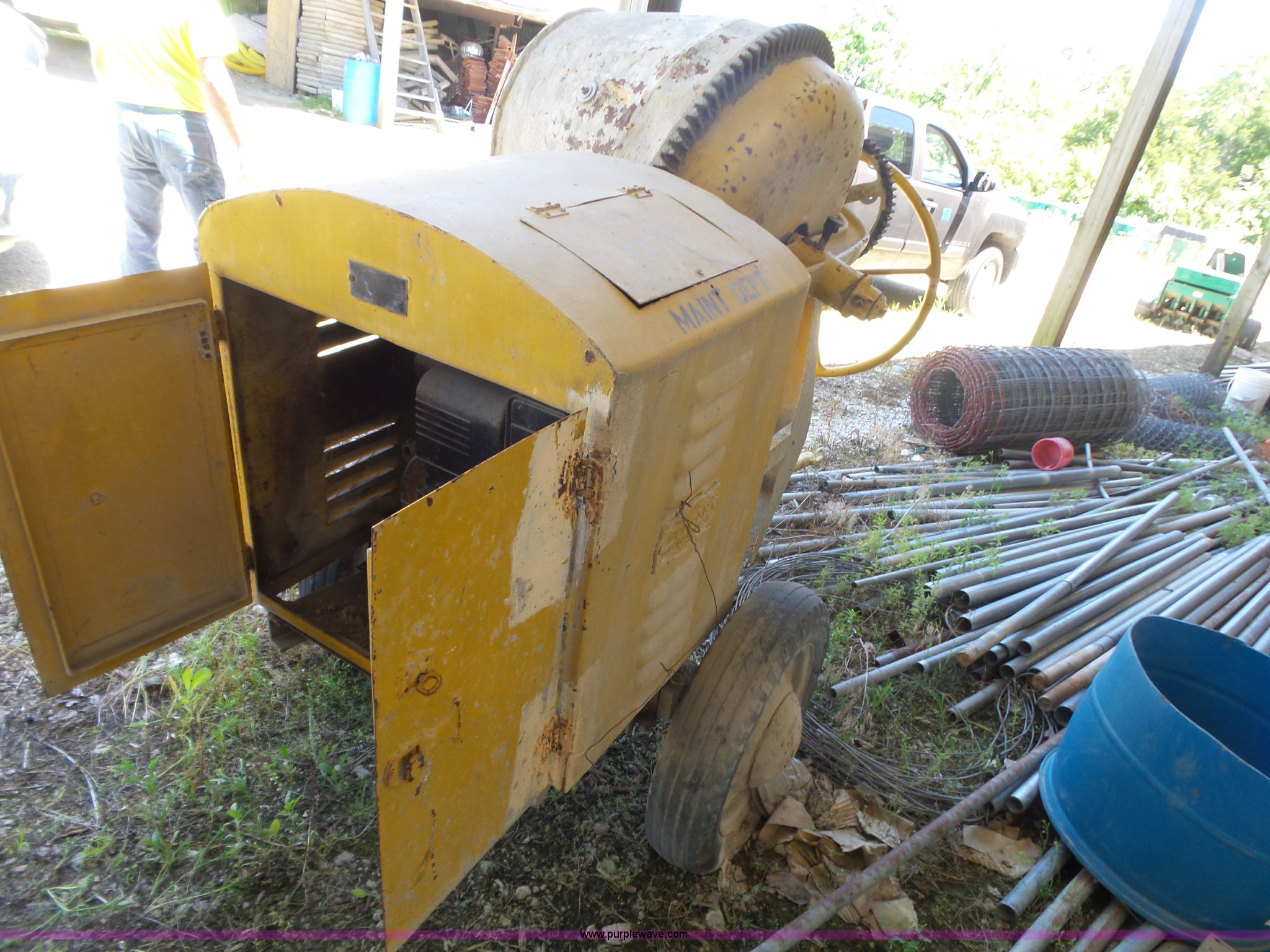 Purple Wave is selling a used Concrete Dispenser in Kansas. This item is a Eclipse 5-100 cement mixer with the following: Single cylinder gas engine, 3.5 sack capacity, Pin hitch, Non-operational engine