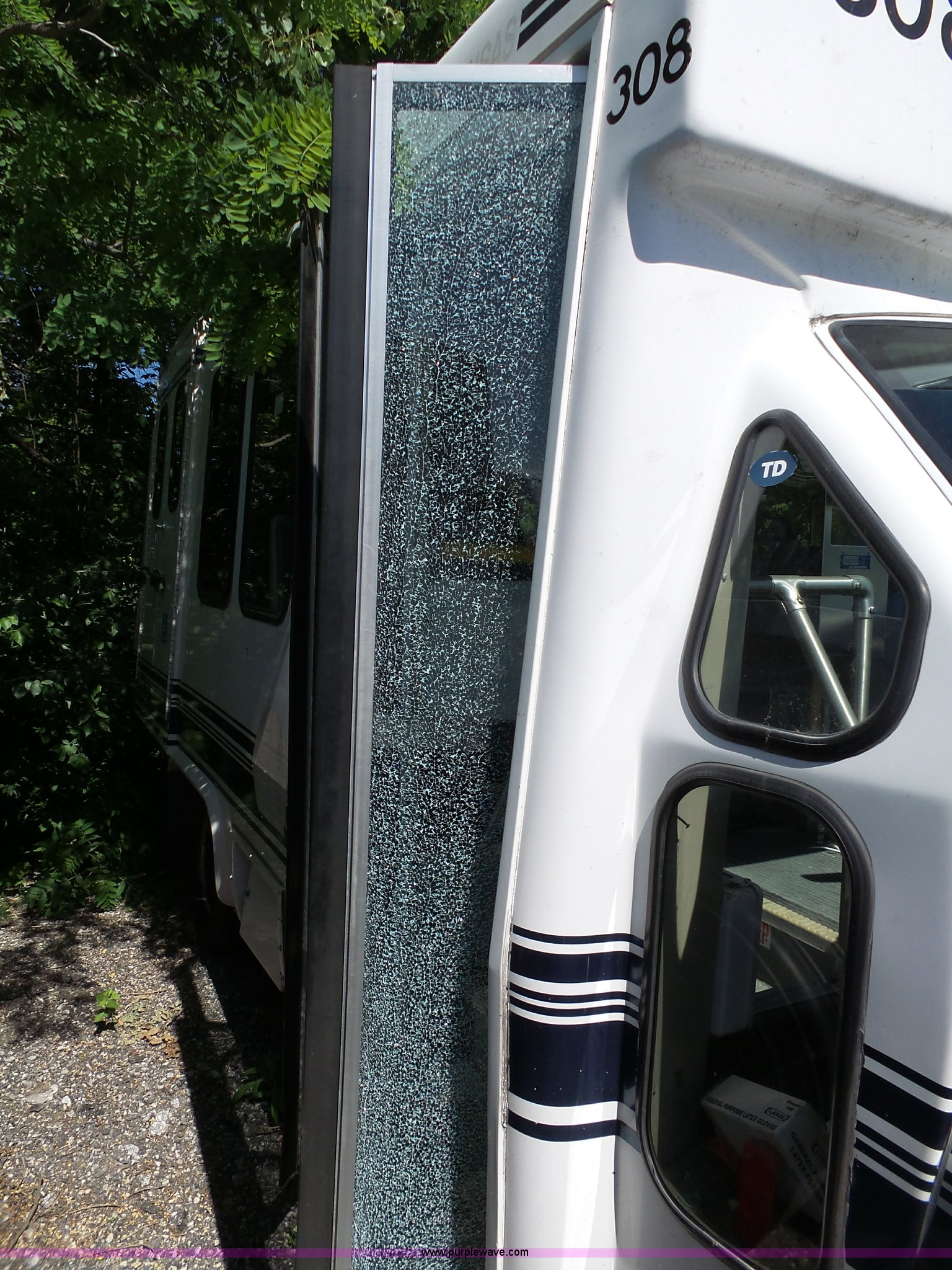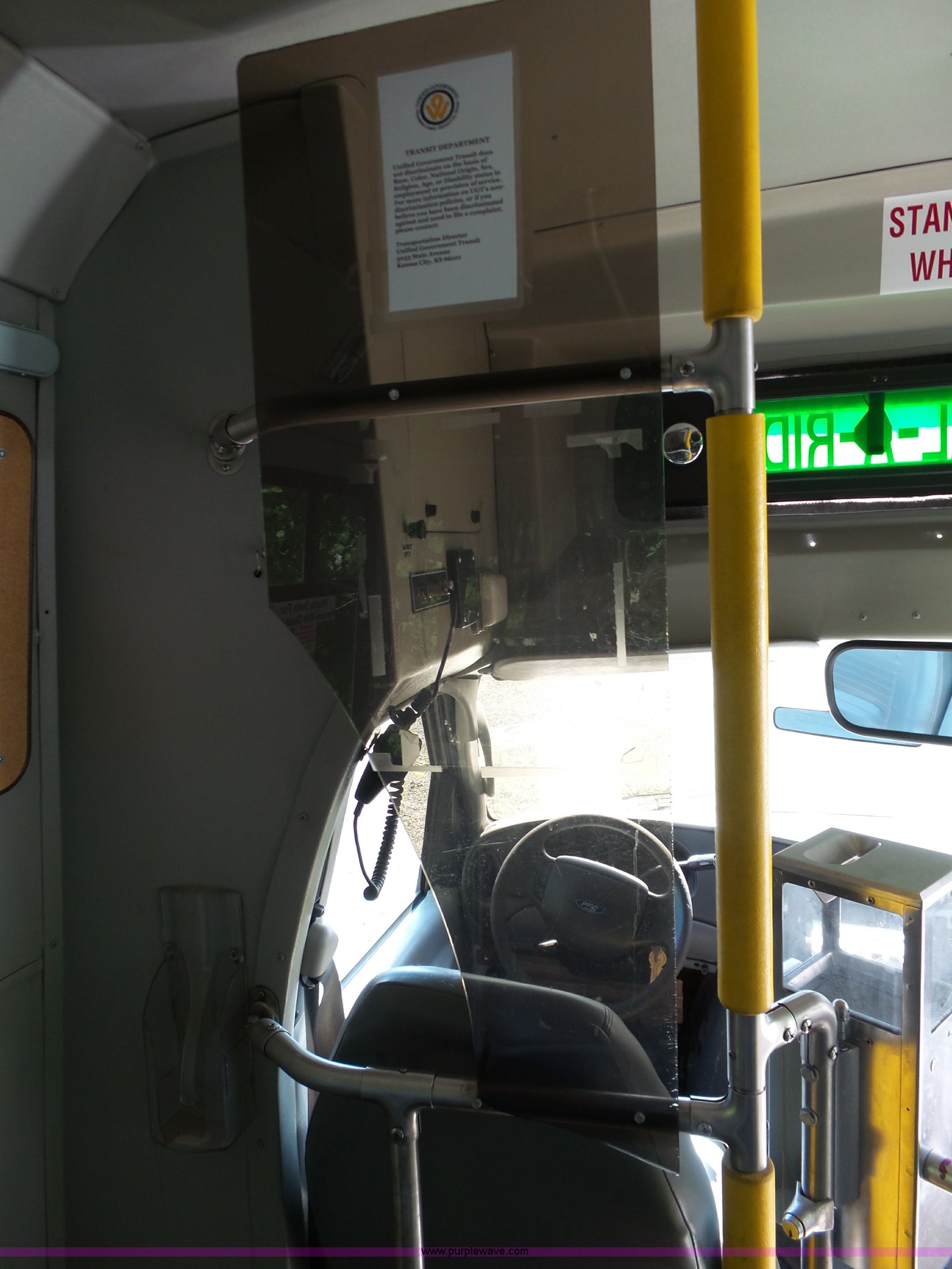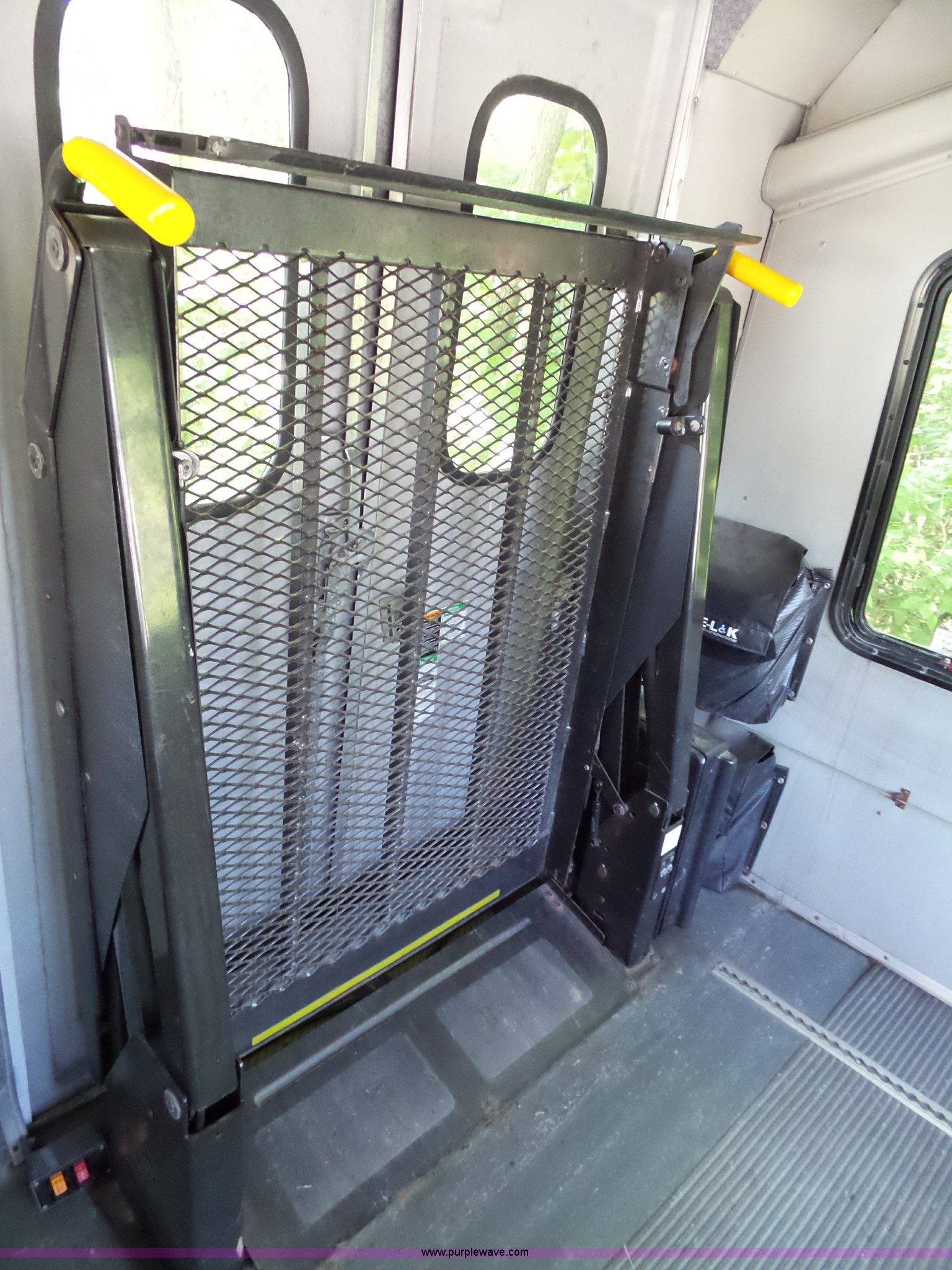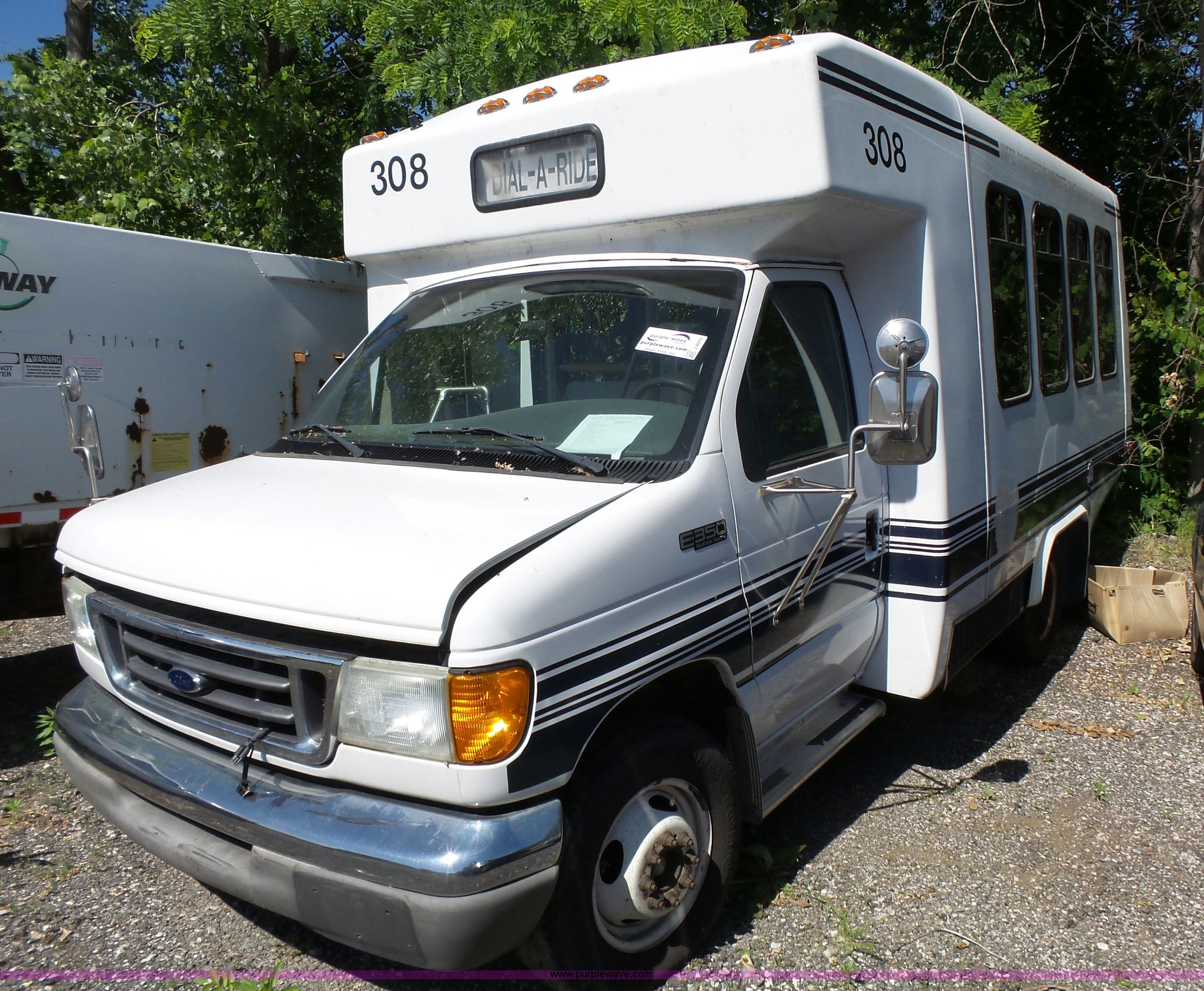 Purple Wave is selling a used Bus in Kansas. This item is a 2003 Ford E350 Super Duty shuttle bus with the following: 149,903 miles on odometer, 7.3L V8 OHV 16V diesel engine, Automatic transmission, Single axle, AC and heat, Suspension seat, Ceiling handrail, 10 passenger capacity, Braun L9191B wheelchair lift, Serial 07-01420, Ceiling, rear, and side emergency egress, L225/75R16 tires, Broken glass on door, Non-operational unit, Unit# AA1-308