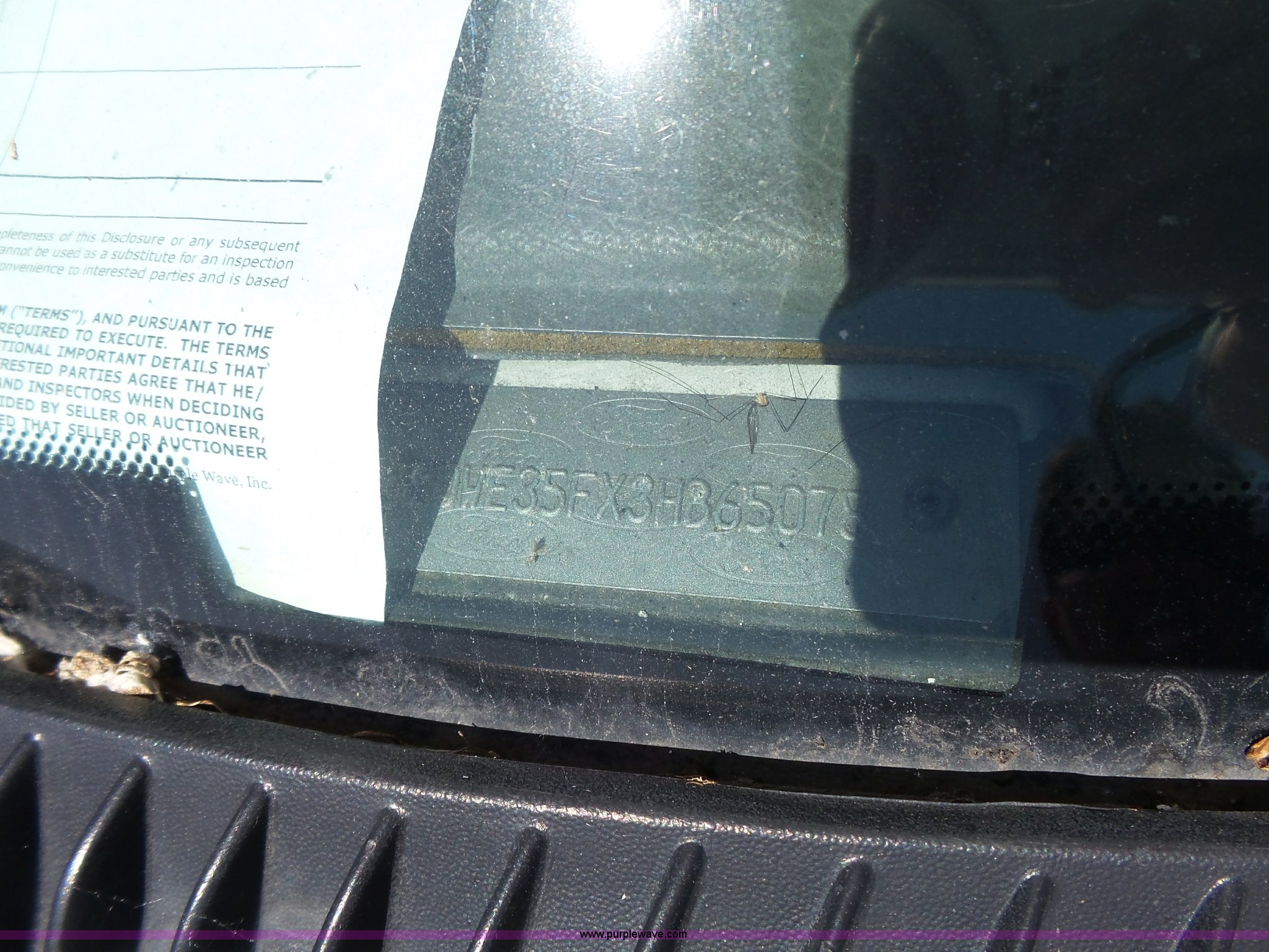 2003 Ford E350 Super Duty shuttle bus. 149,903 miles on odometer, 7.3L V8 OHV 16V diesel engine, Automatic transmission, Single axle, AC and heat, Suspension seat, Ceiling handrail, 10 passenger capacity, Braun L9191B wheelchair lift Serial 07-01420, Ceiling, rear, and side emergency egress, L225/75R16 tires, Broken glass on door, Non-operational unit, Unit# AA1-308. Kansas title.. Title distribution may be delayed up to 14 days from verification of funds. 1FDWE35FX3HB65078. Unified Government of Wyandotte County. 5033 State Avenue. Kansas City, KS 66102