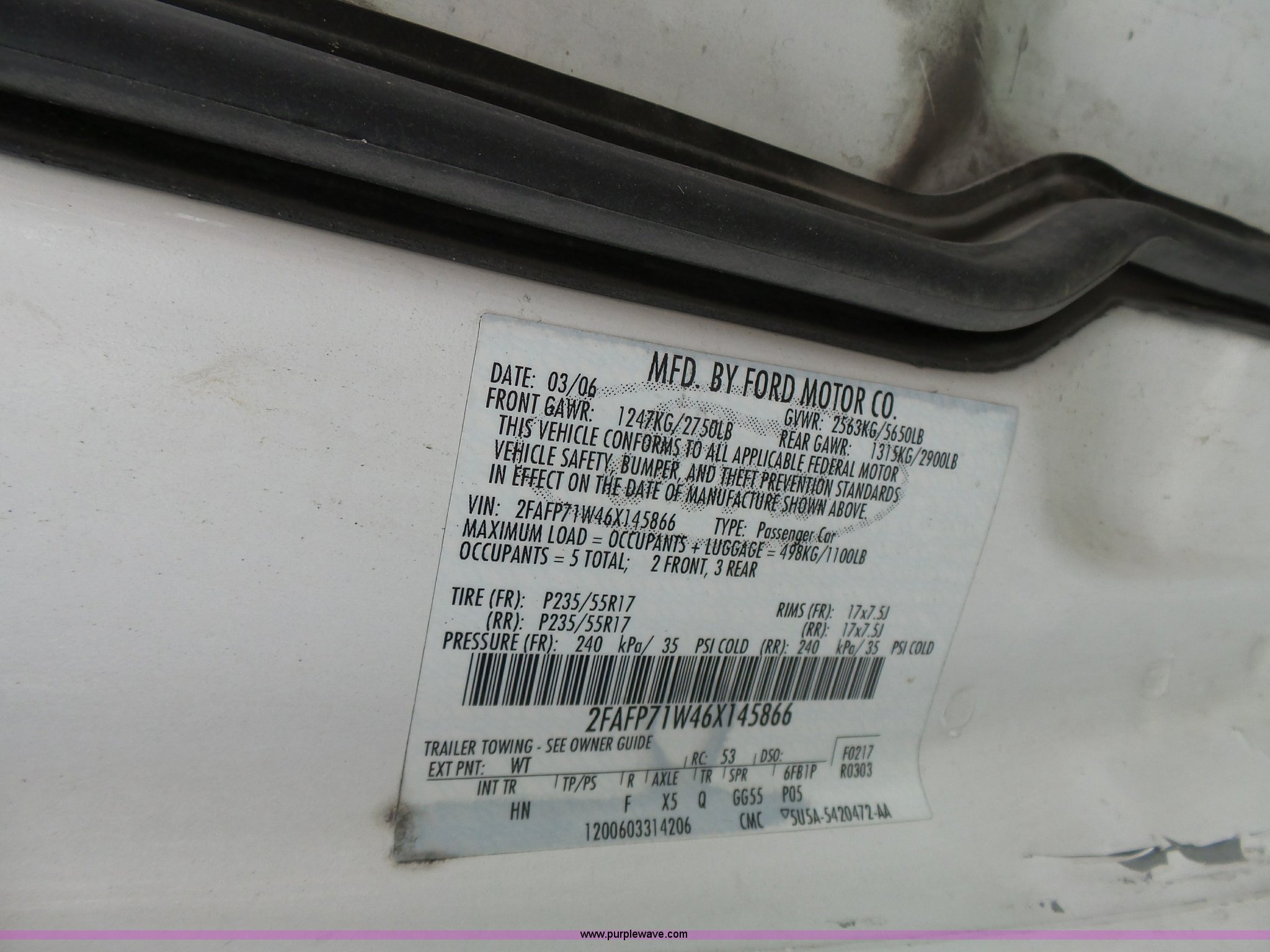 Purple Wave is selling a used Passenger Vehicle in Kansas. This item is a 2006 Ford Crown Victoria with the following: 174,358 miles on odometer, 4.6L V8 SOHC 16V gas engine, Automatic transmission, AC and heat, Tilt, Cruise, AM/FM, Power windows, locks, mirrors, and seats, Cloth interior, 235/55R17 tires, Battery dead, No exhaust, Right front damage
