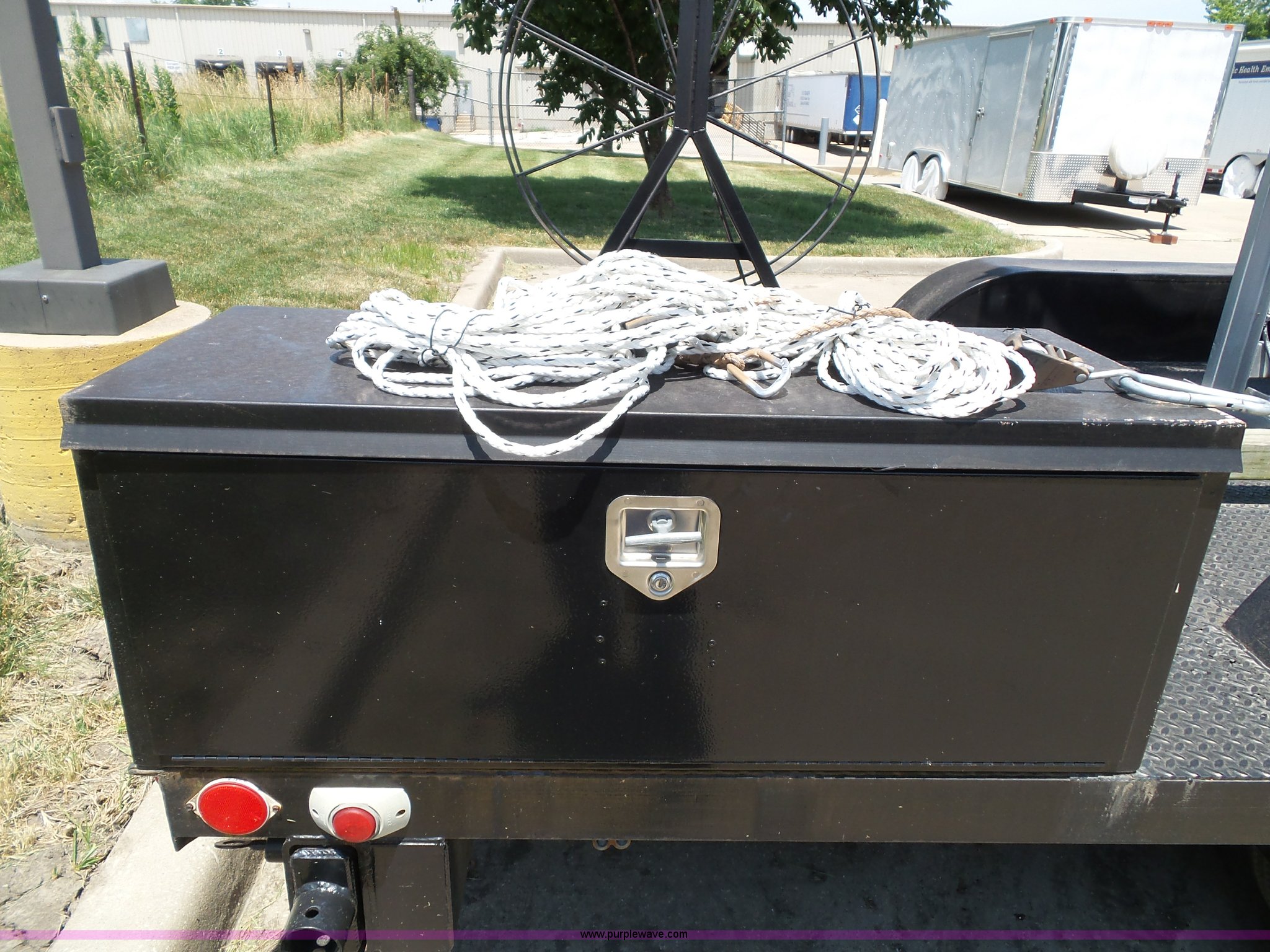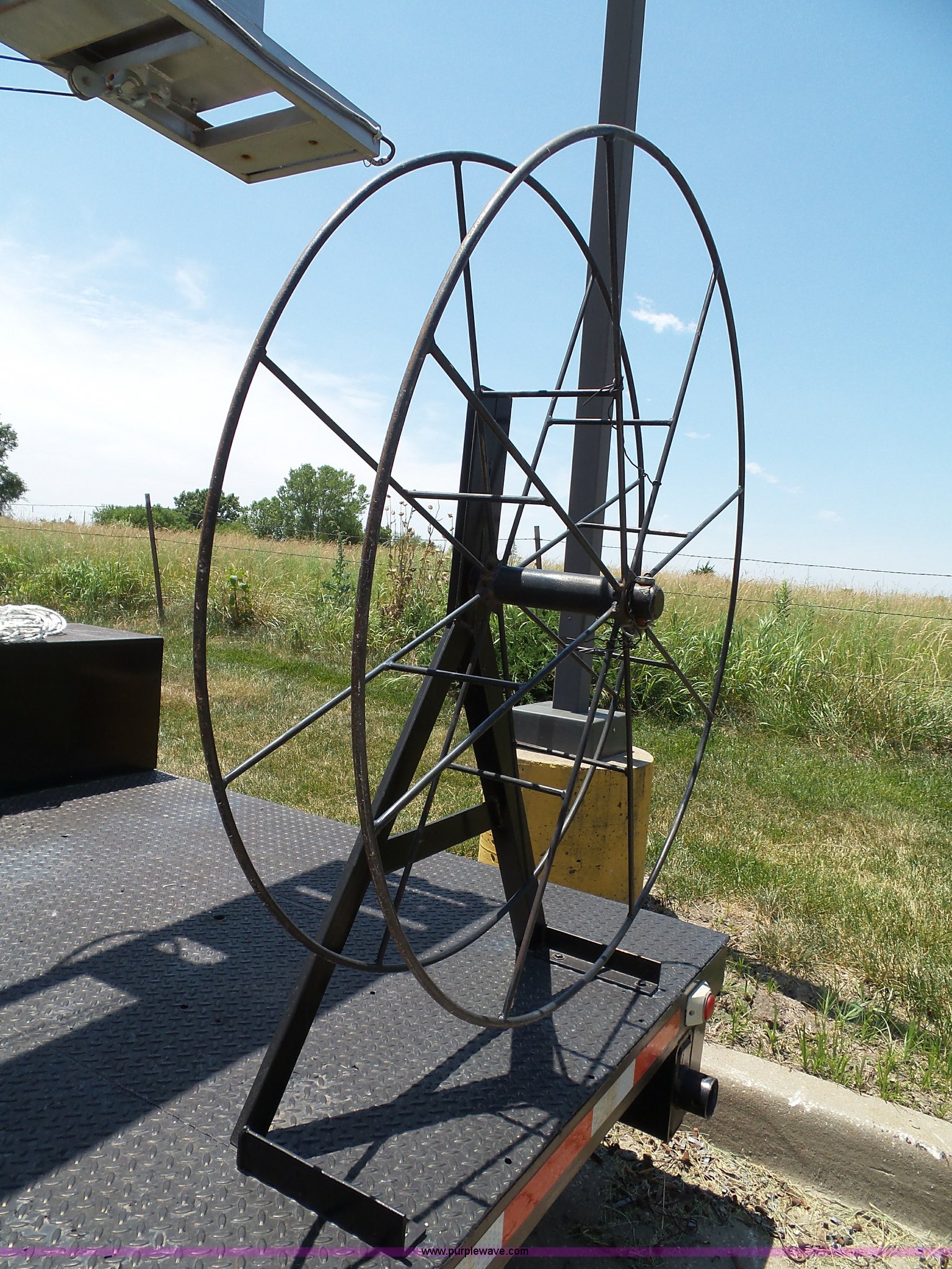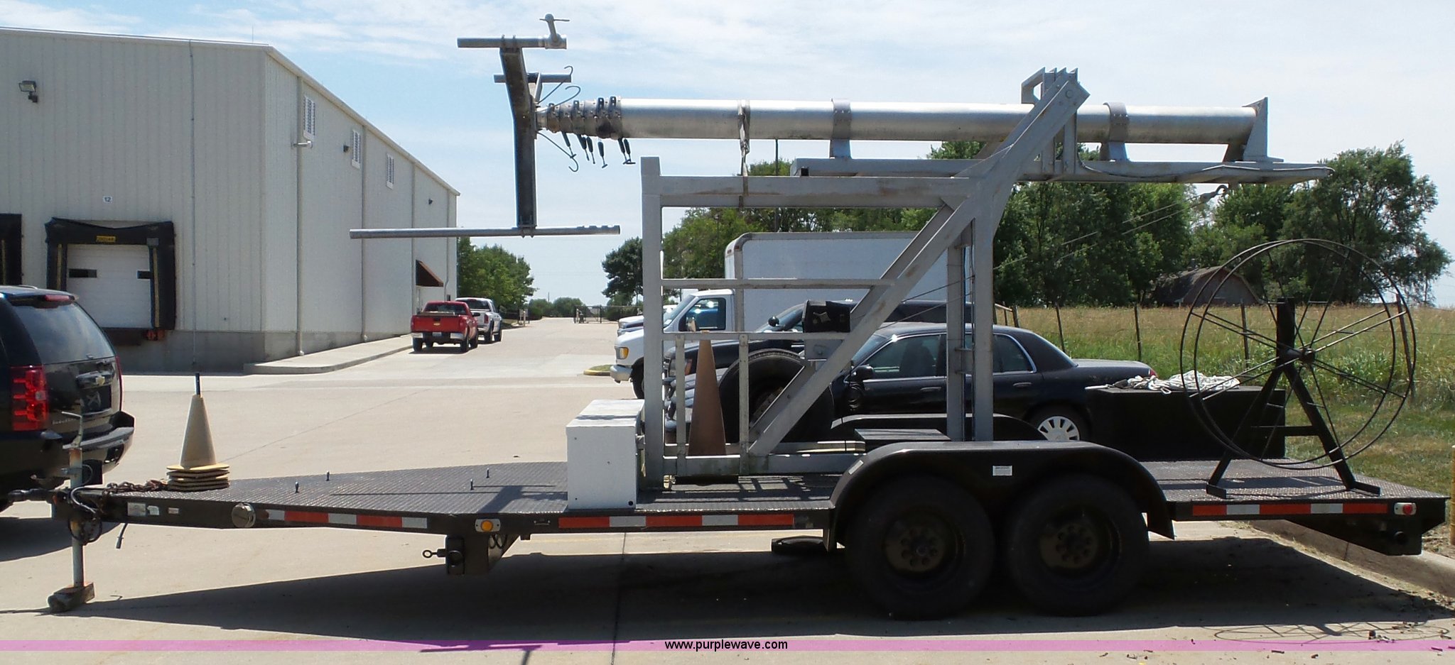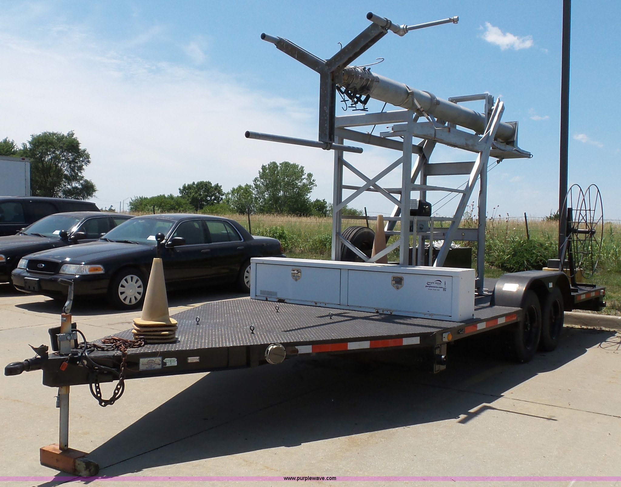 Purple Wave is selling a used Trailer Other in Kansas. This item is a 1997 Mobile power line telescopic tower and trailer with the following: 25'L x 8'W, Antenna/feed line information, 80'H tower, Dayton 4Z3273 electric winch, Front storage boxes, Reel, Storage box with feed lines, Front and rear outriggers, 2 5/16" ball hitch, Safety chains, Lights, Tandem axle, 215/75R17.5 tires, Setup and operator's manuals, Unit# EMC180